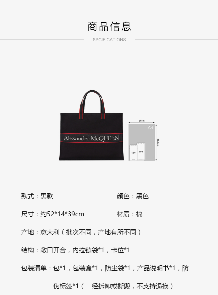 ALEXANDER MCQUEEN 亚历山大·麦昆 男士字母标识挎包手提包 6628651AAAE