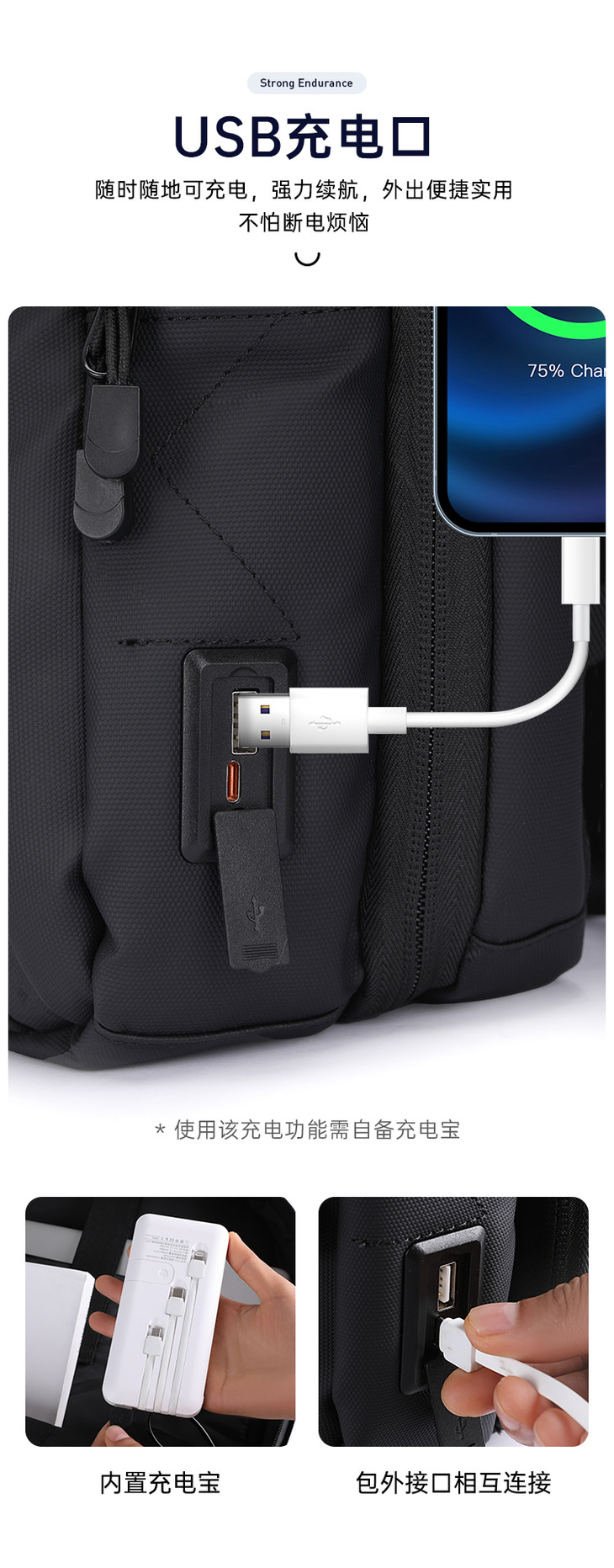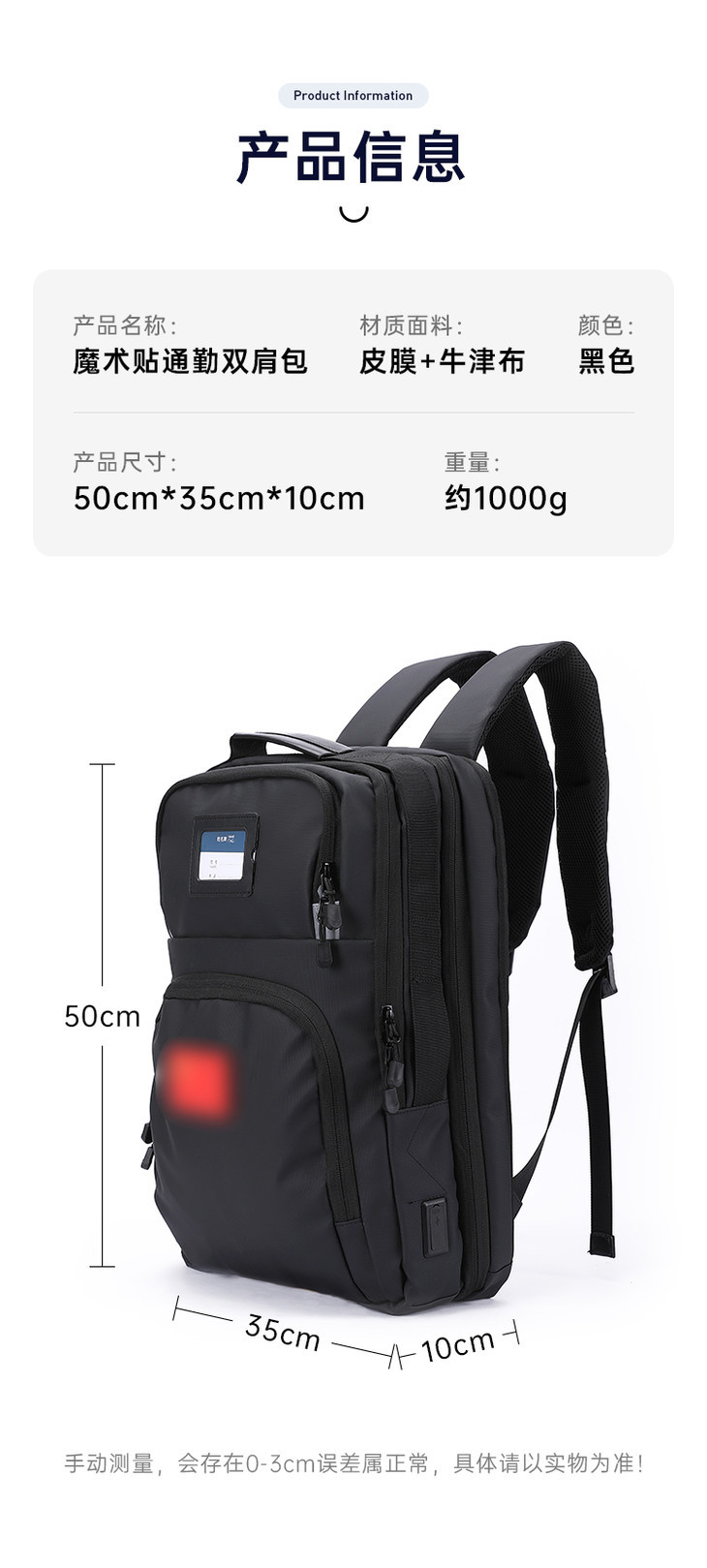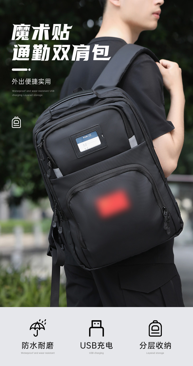 【USB魔术贴通勤双肩包】大容量通勤勤务收纳包 防泼水多功能手提牛津布背包
