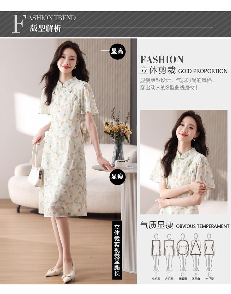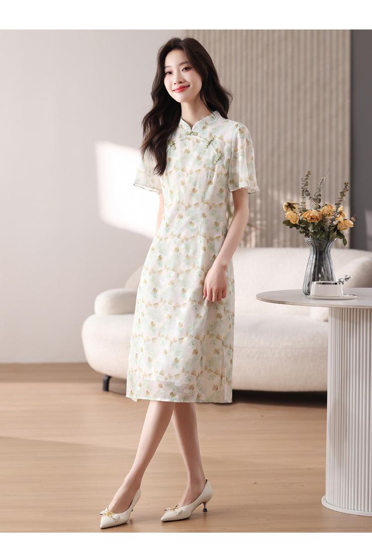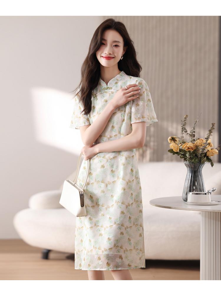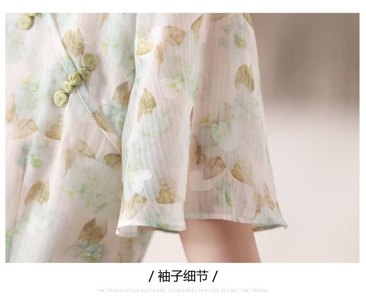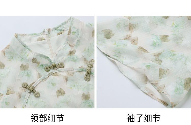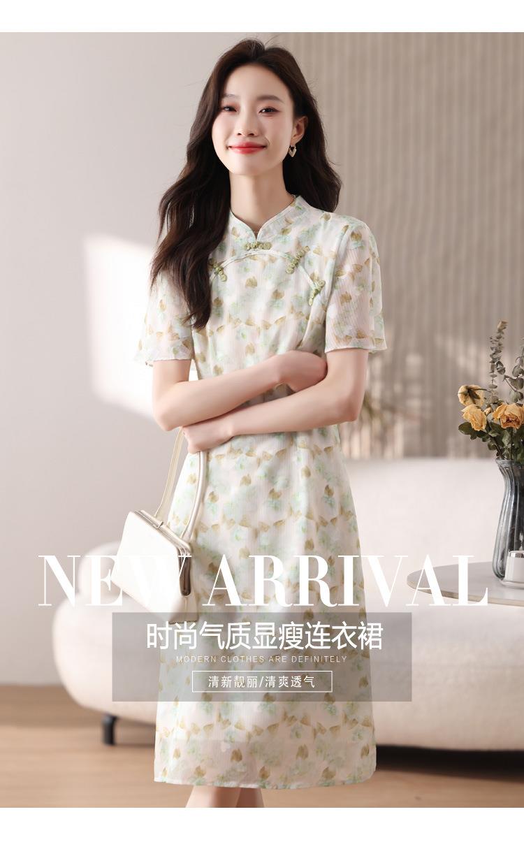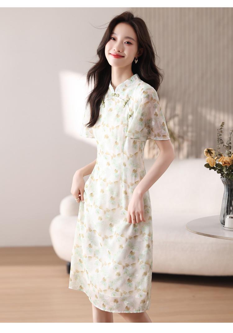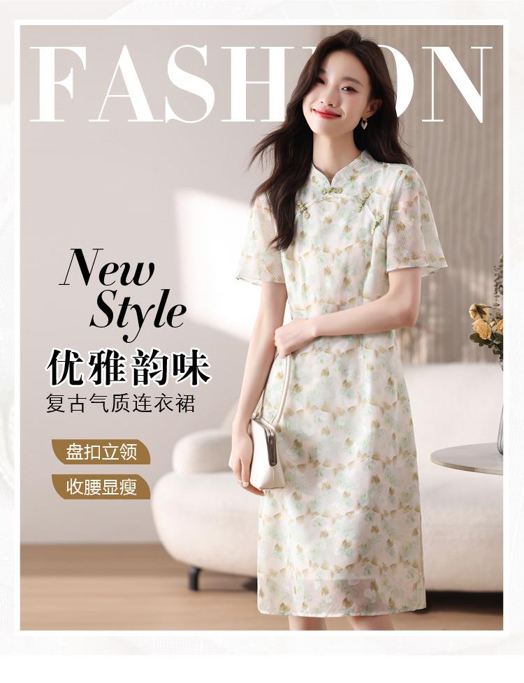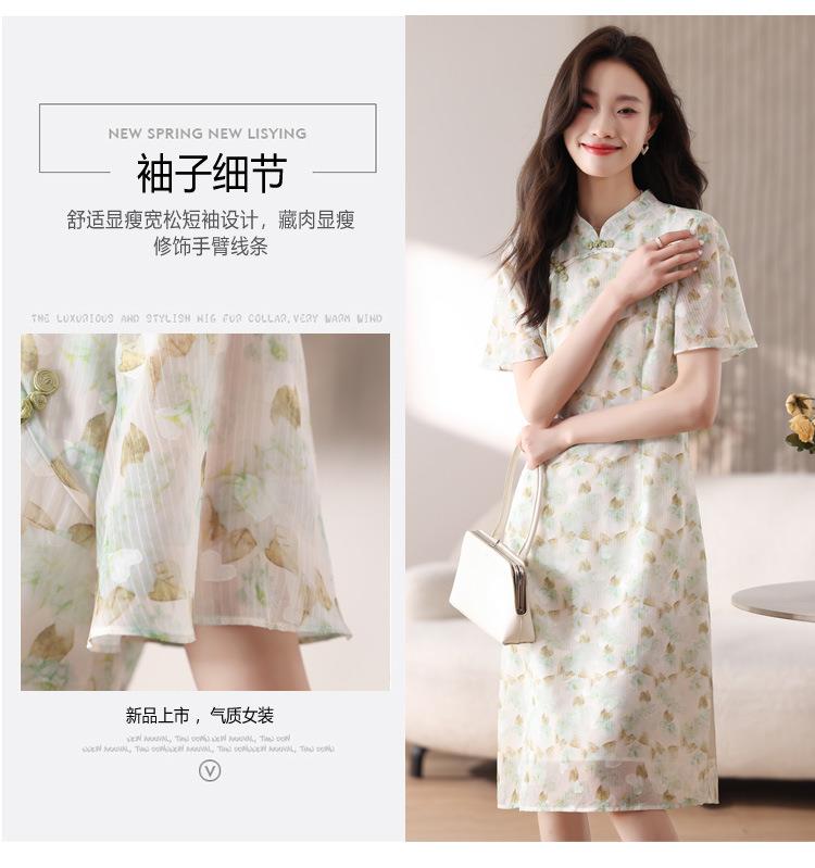 新中式国风雪纺连衣裙女短袖2024夏新款复古修身显瘦中长款碎花裙