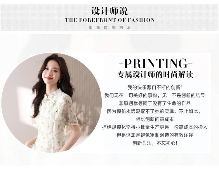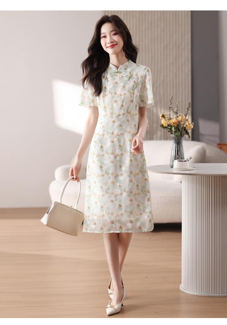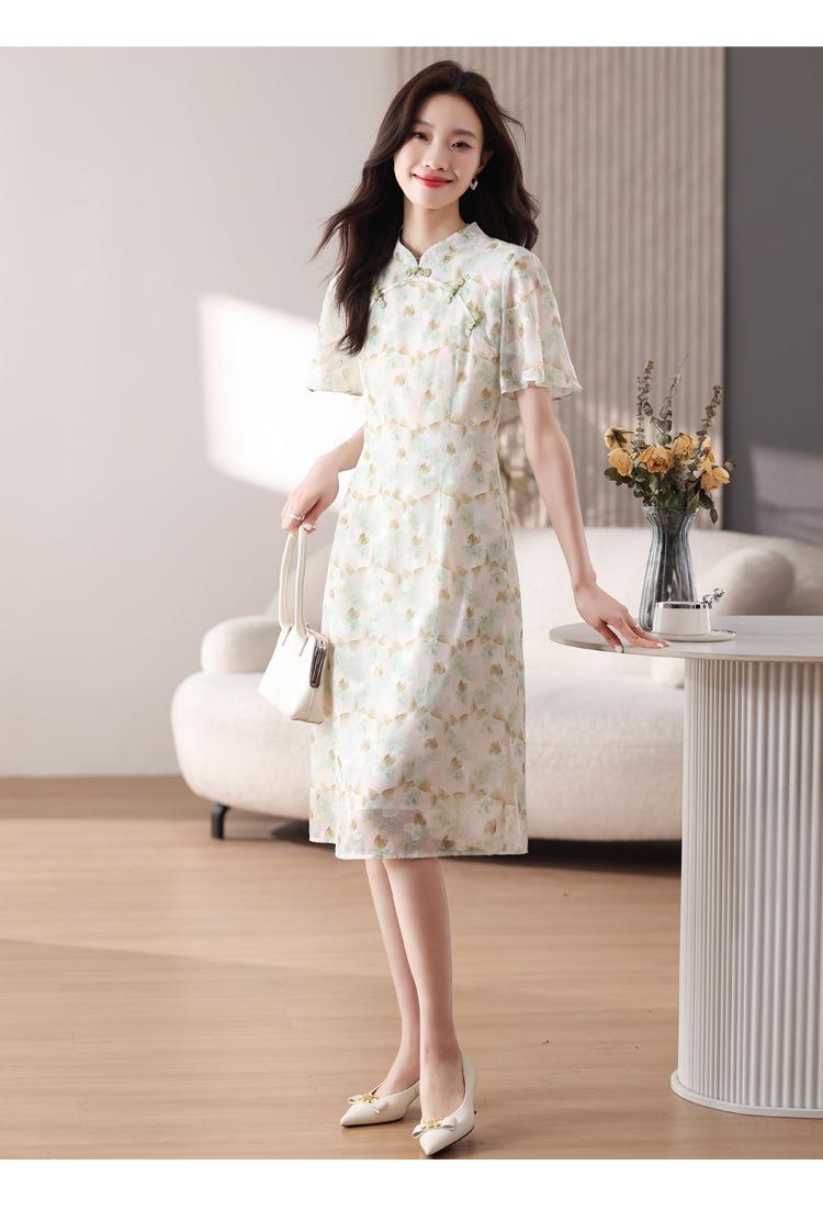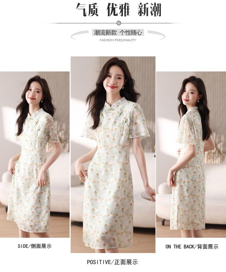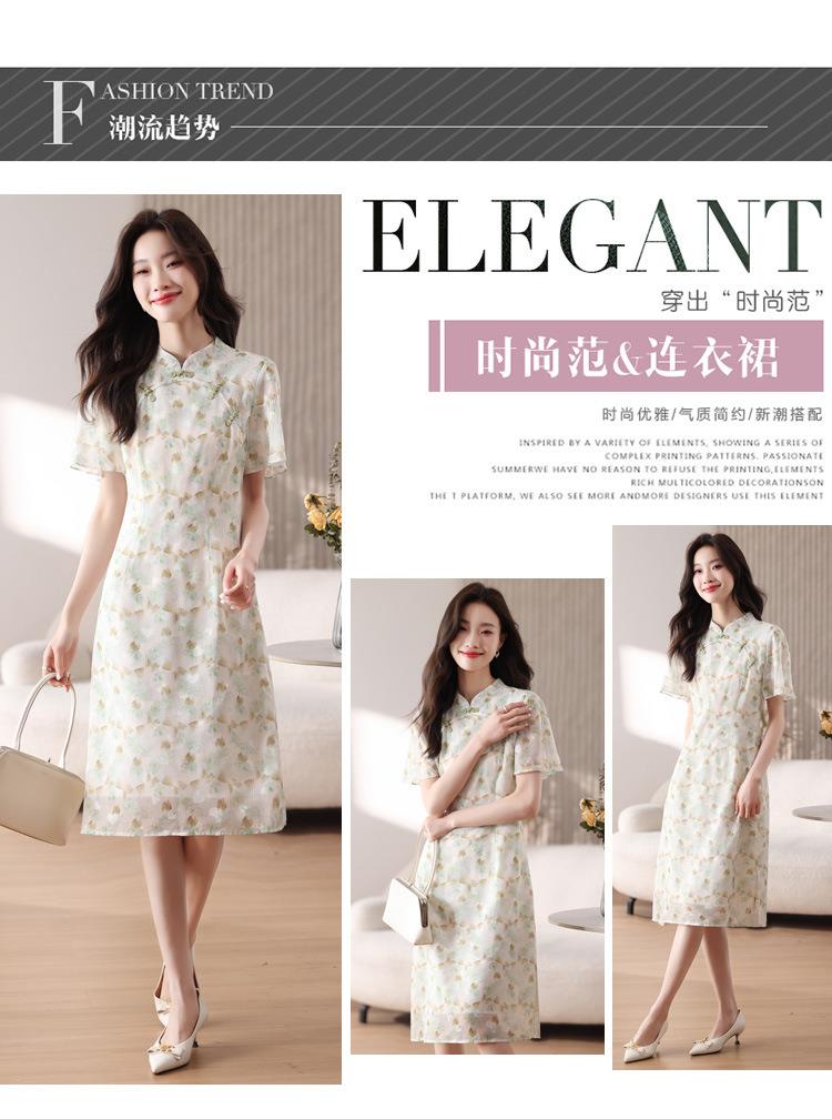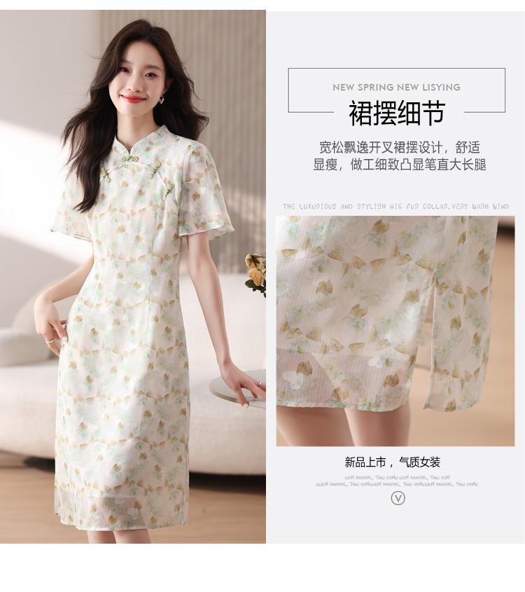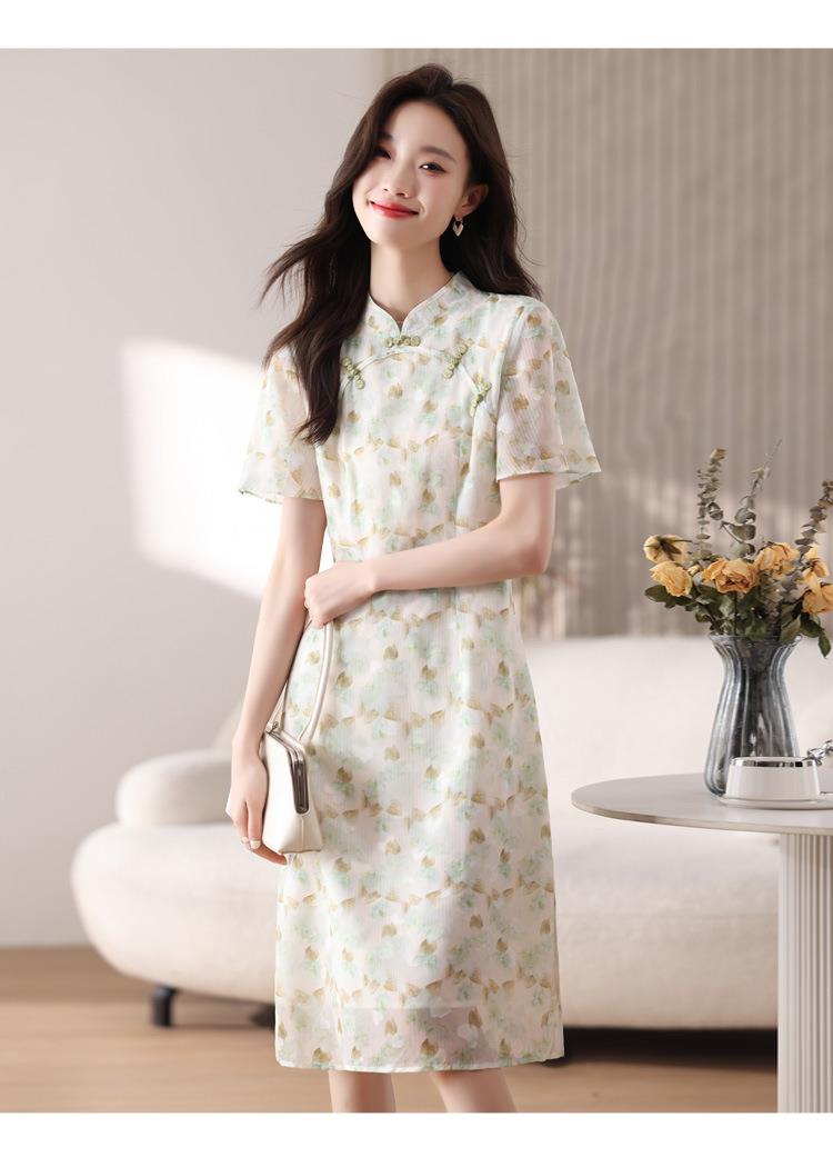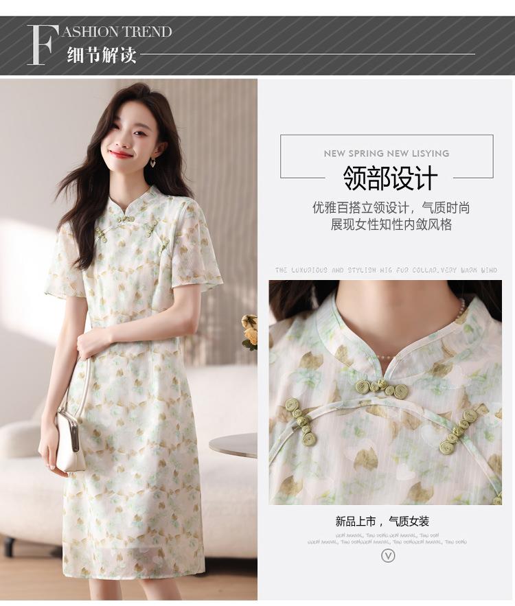 新中式国风雪纺连衣裙女短袖2024夏新款复古修身显瘦中长款碎花裙