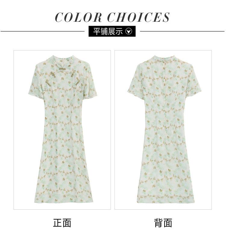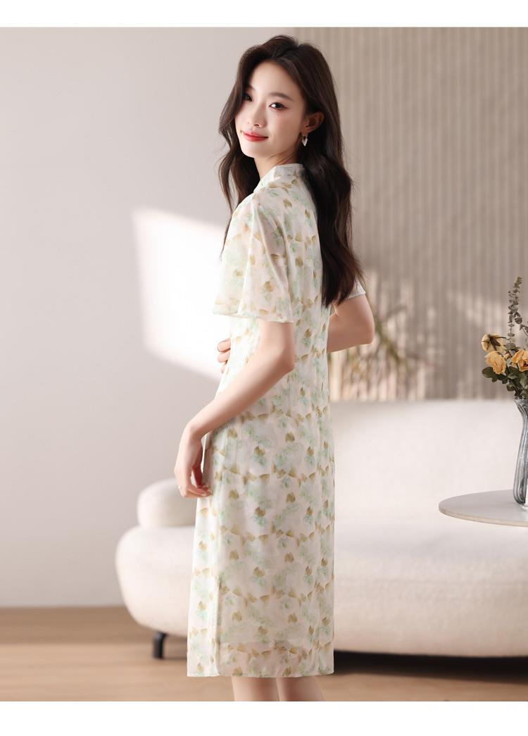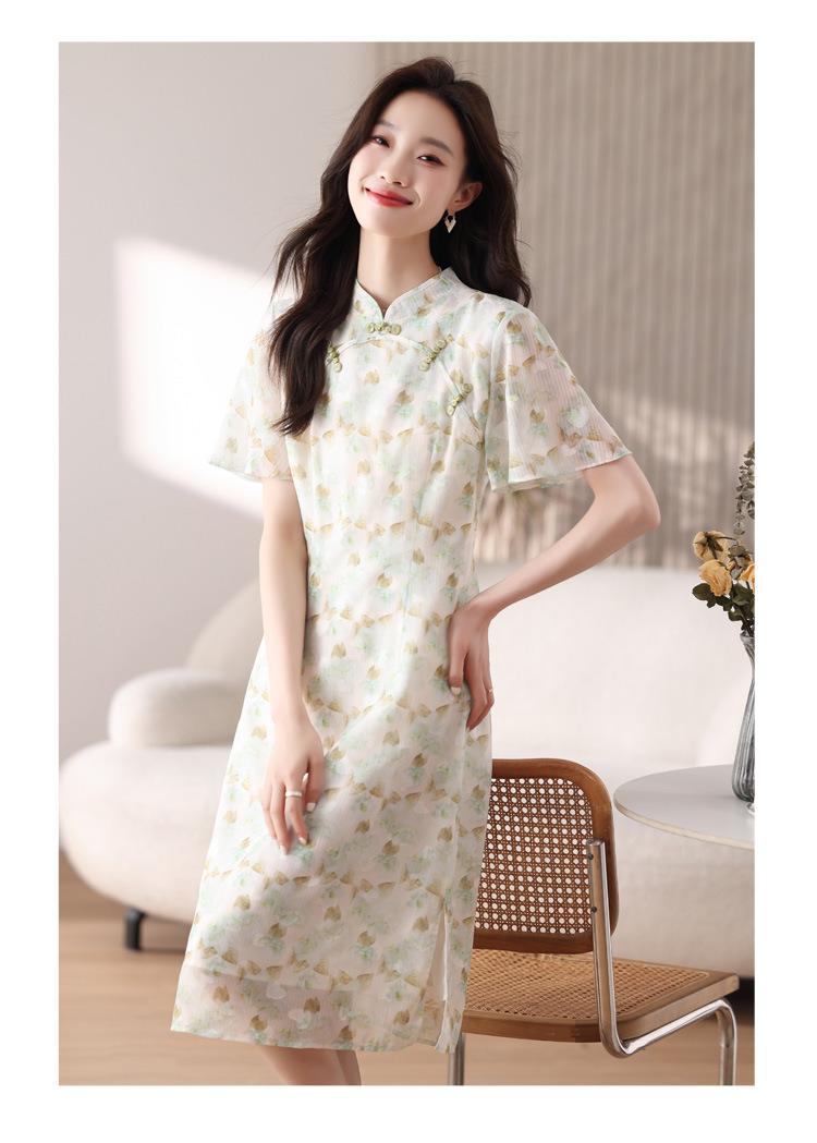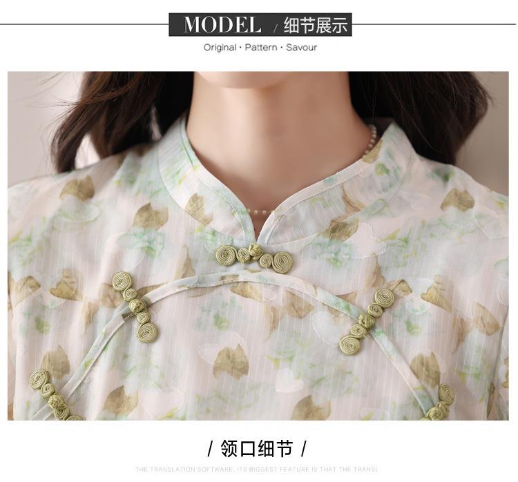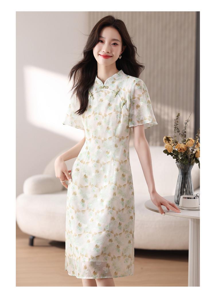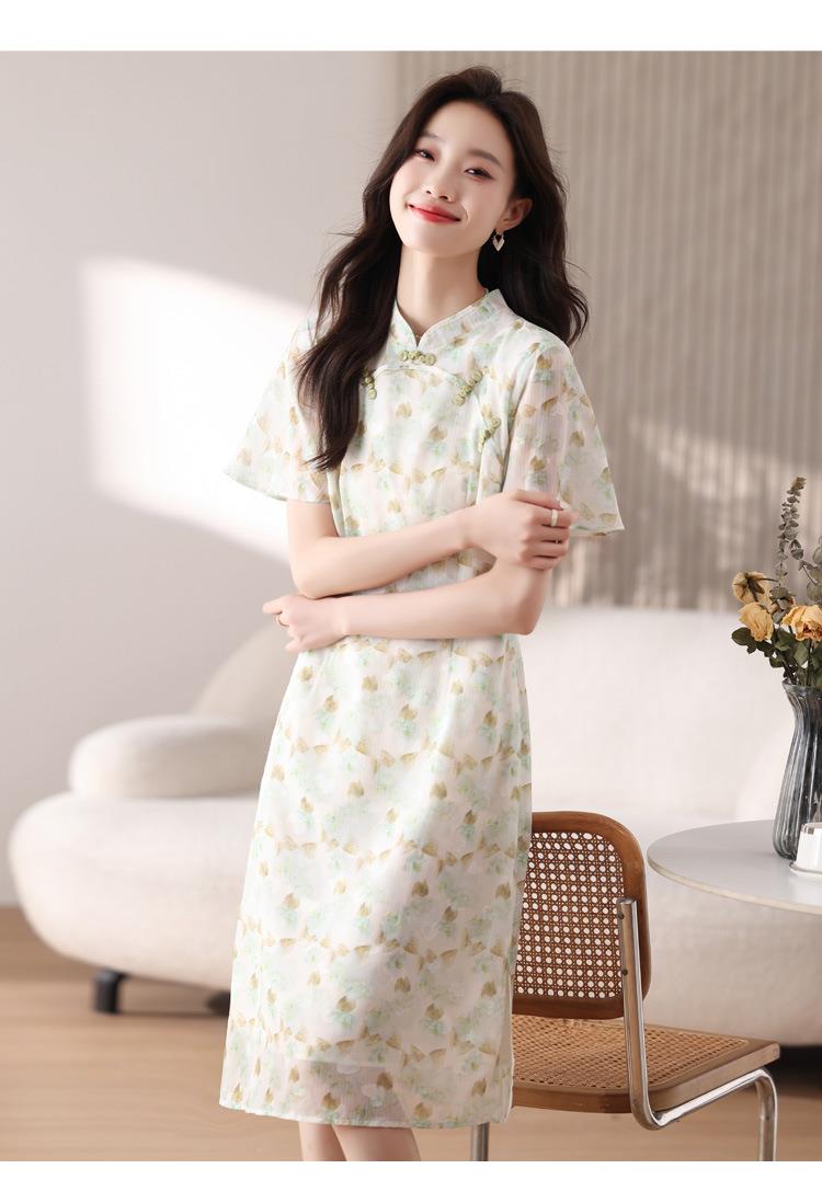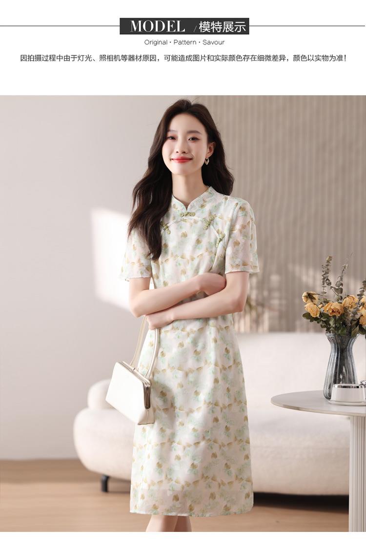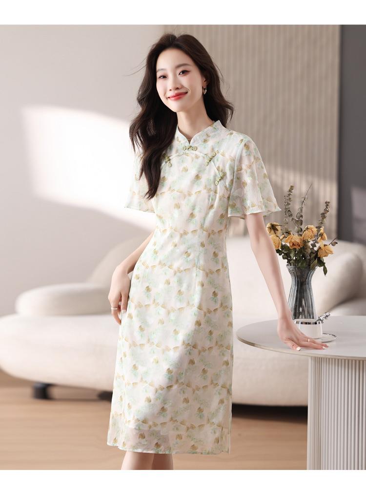 新中式国风雪纺连衣裙女短袖2024夏新款复古修身显瘦中长款碎花裙
