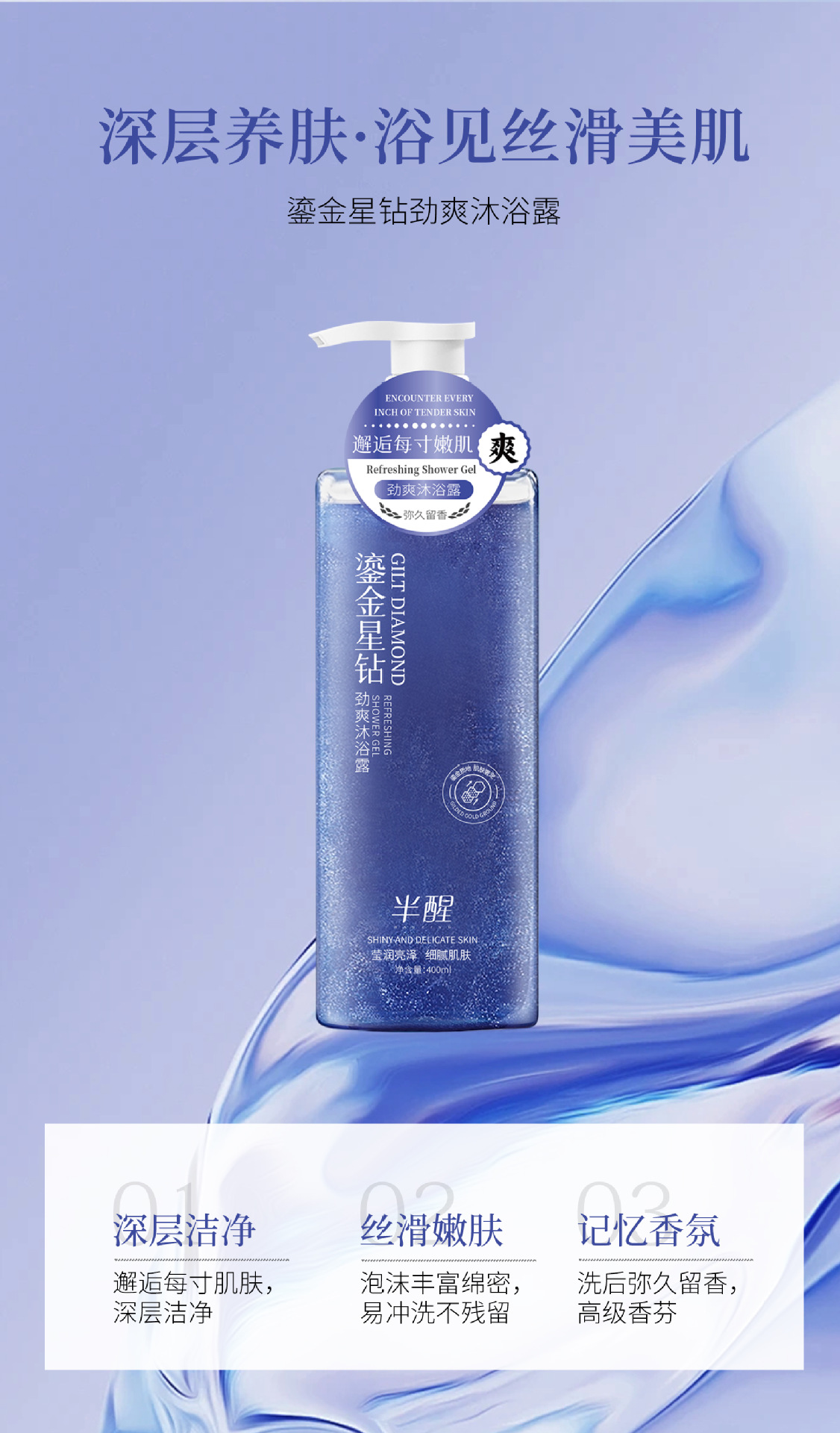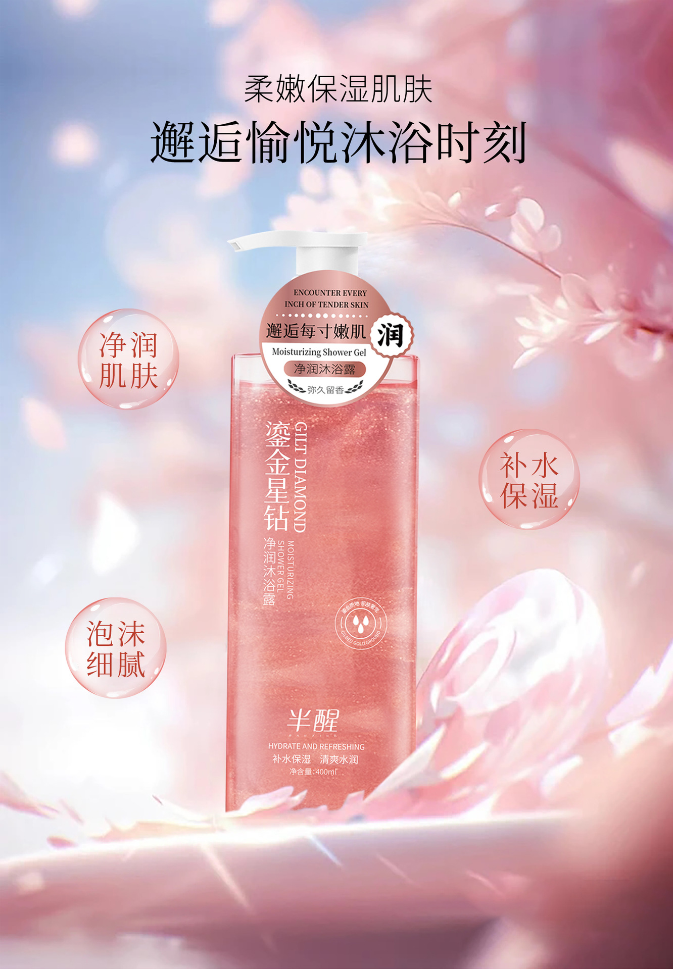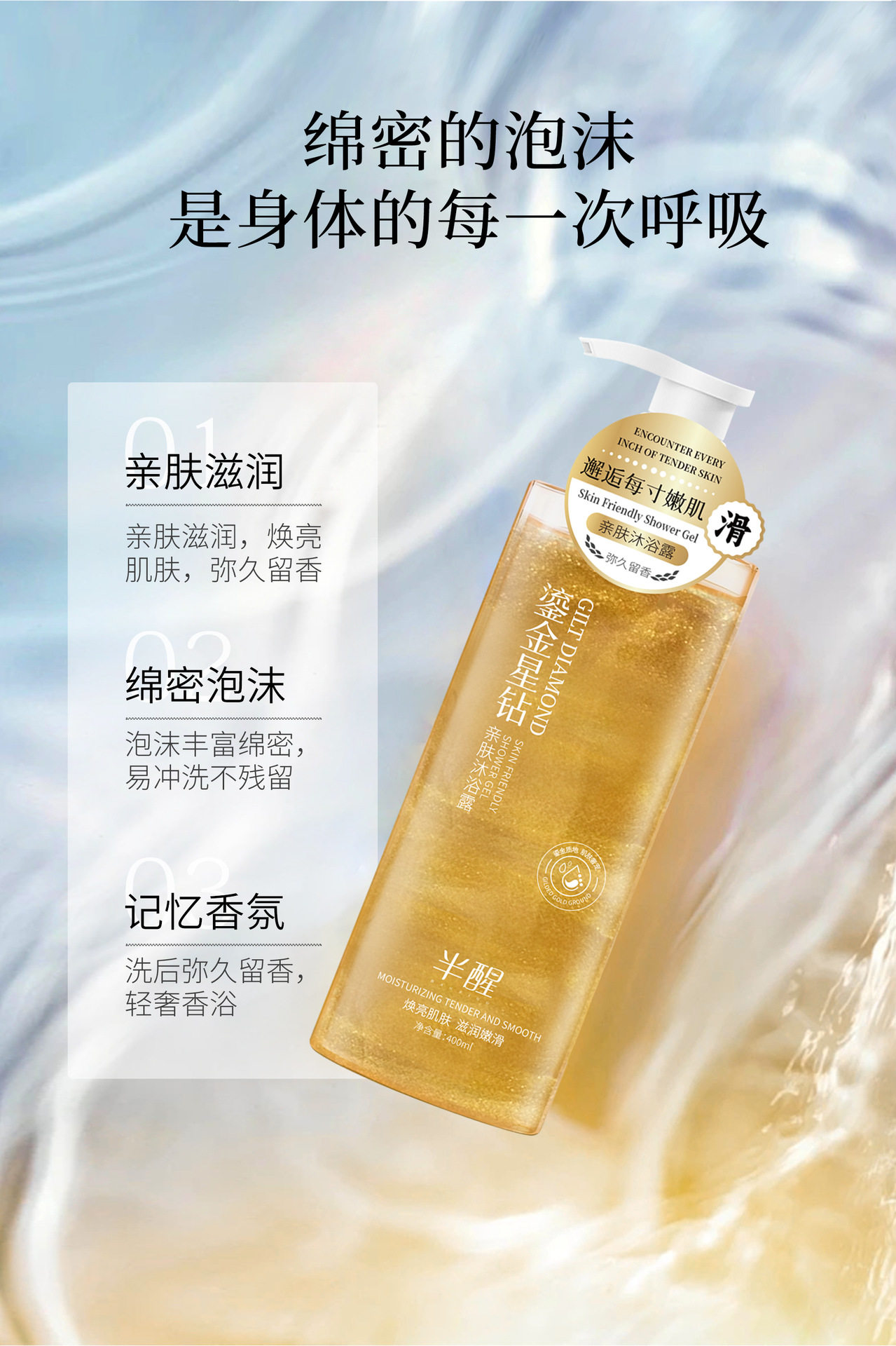 【半醒鎏金星钻沐浴露系列】新品半醒沐浴露持久保湿紧致舒缓肌肤滋润净肤劲爽沐浴露,持久保湿紧致舒缓,滋润净肤劲爽。ry