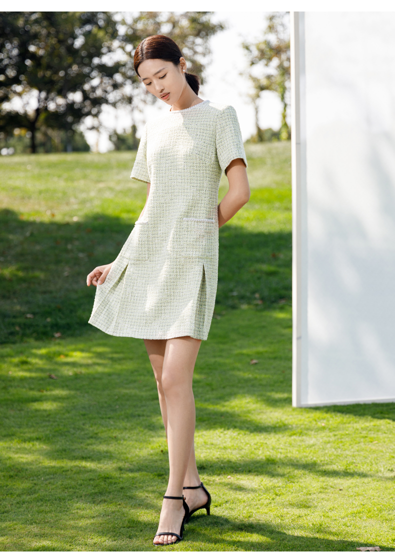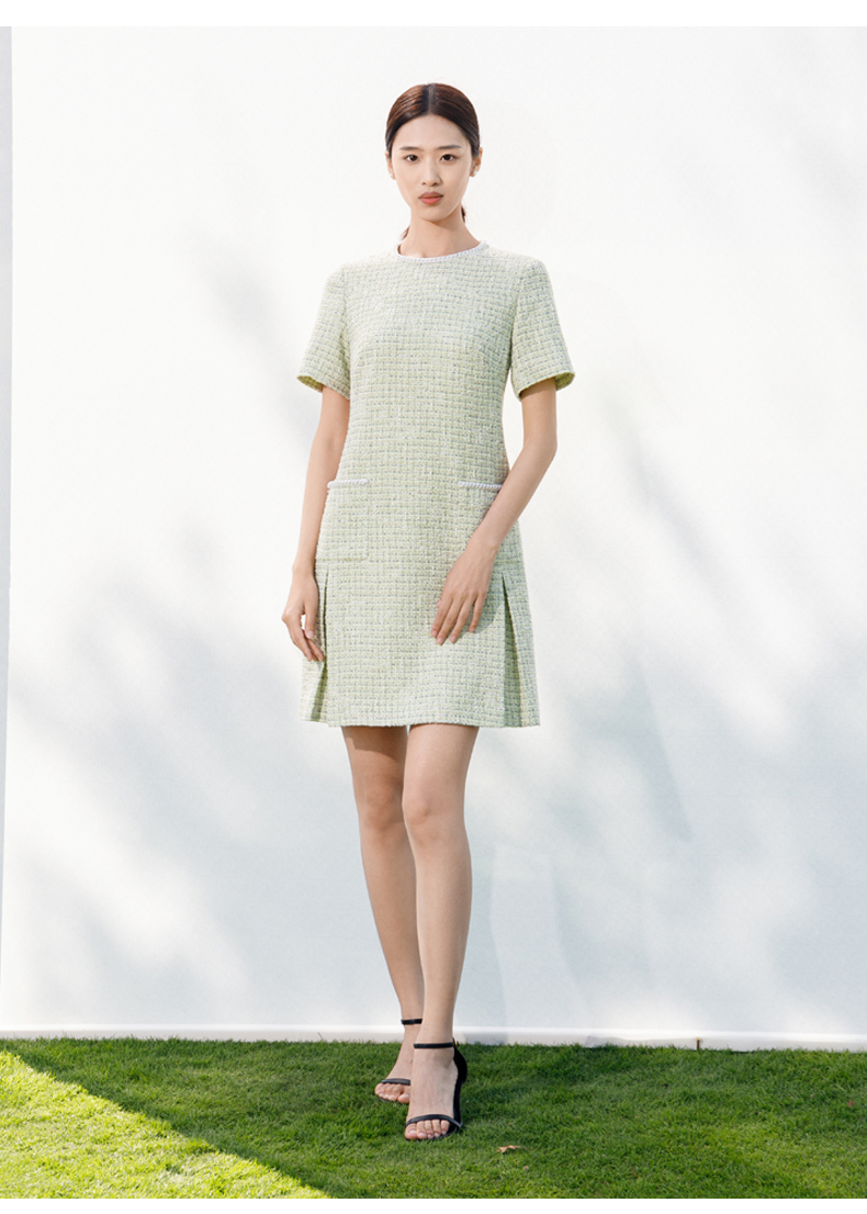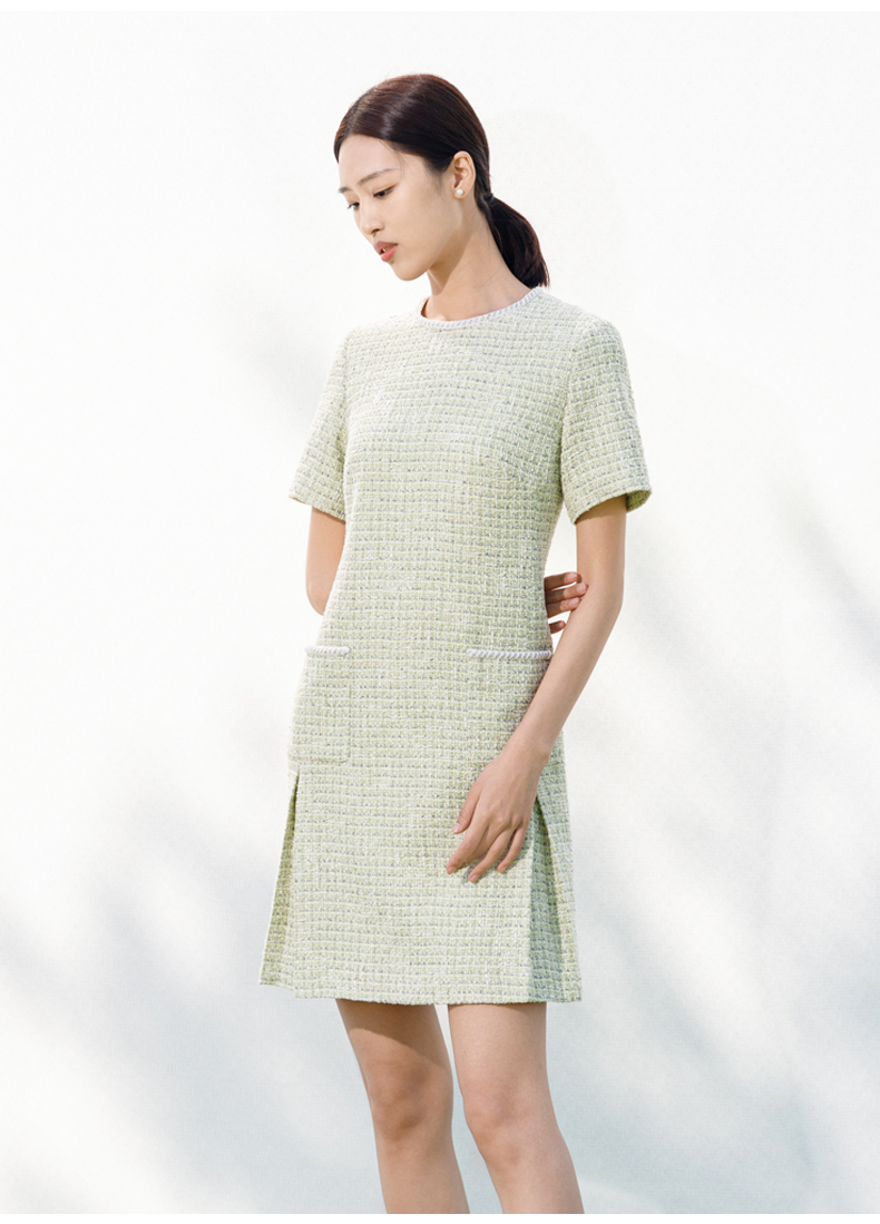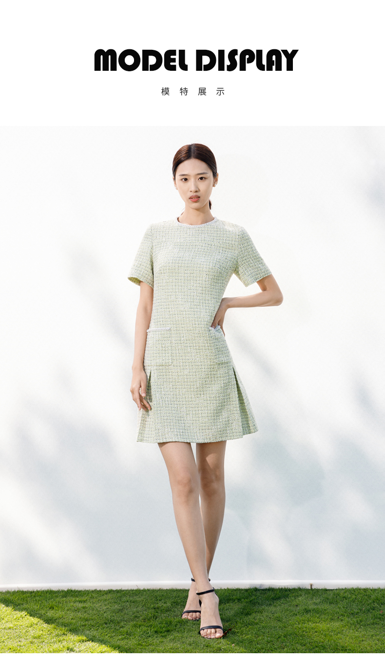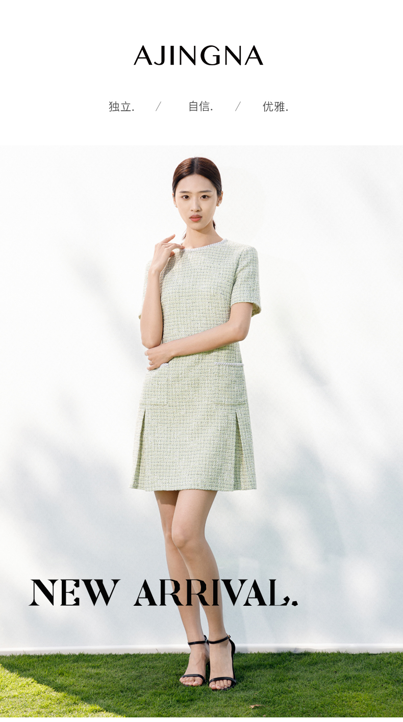 【商场同款】阿菁娜2024春夏新款圆领直筒宽松显瘦小香风连衣裙A29C112016