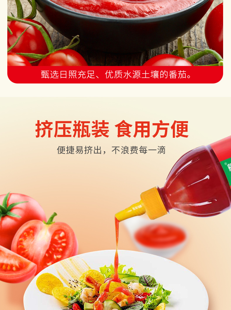 【酸甜可口❗️番茄沙司】精选优质红番茄,质地细腻酸甜可口,挤压瓶装食用方便,710g拌沙拉蘸薯条汉堡轻食吐司挤压瓶QQ