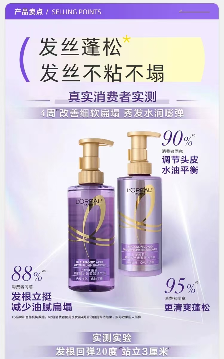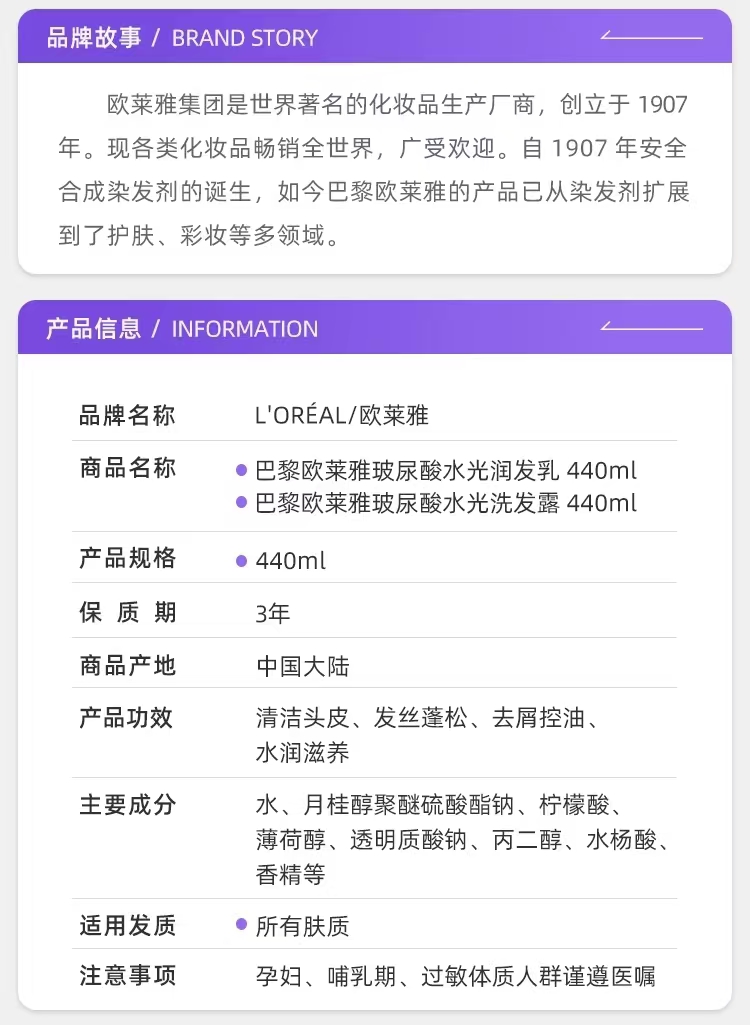 巴黎欧莱雅玻尿酸水光盈润系列 洗发露 润发乳