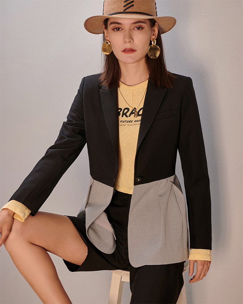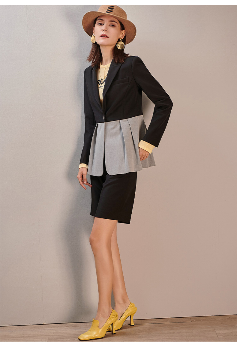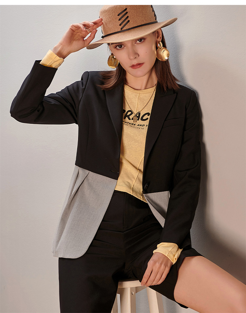 剩S/M/L/XL 芳外新款拼接西服套装职场潮品时尚两件套装8T21AG0333