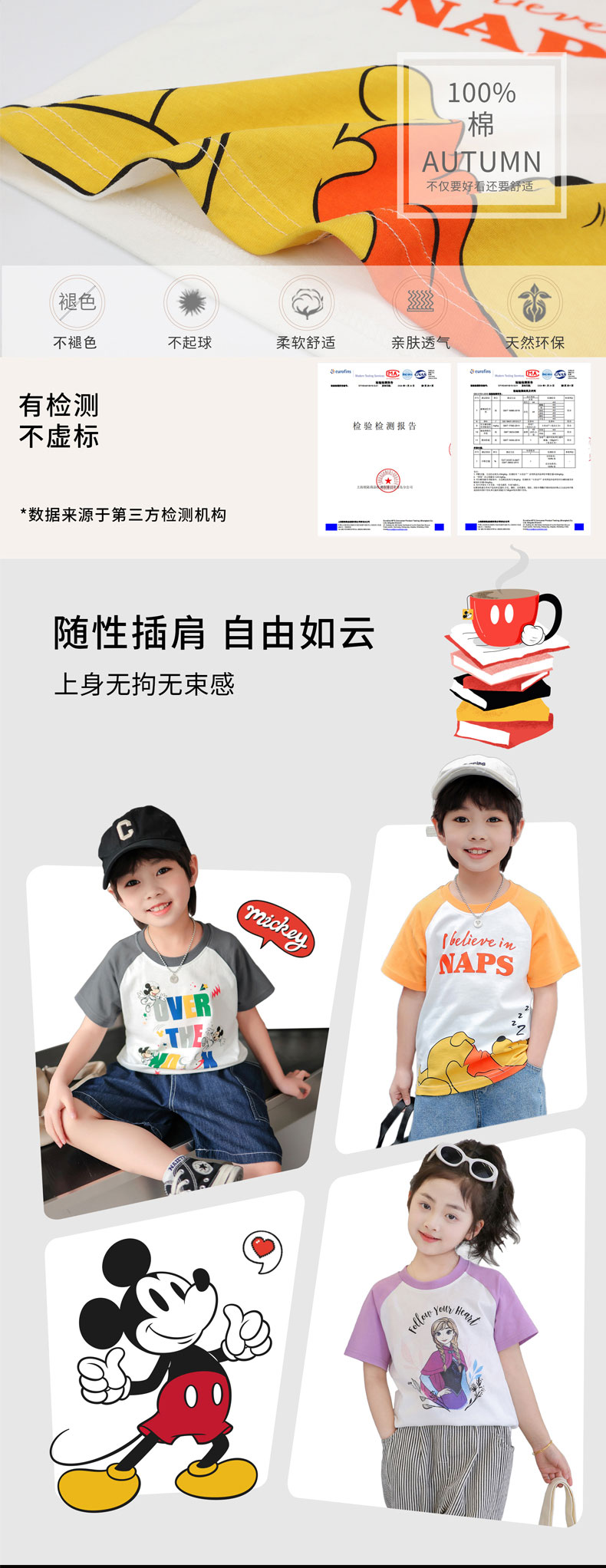 【59.9元/2件】三枪迪士尼儿童纯棉落肩短袖男童T恤女童短袖