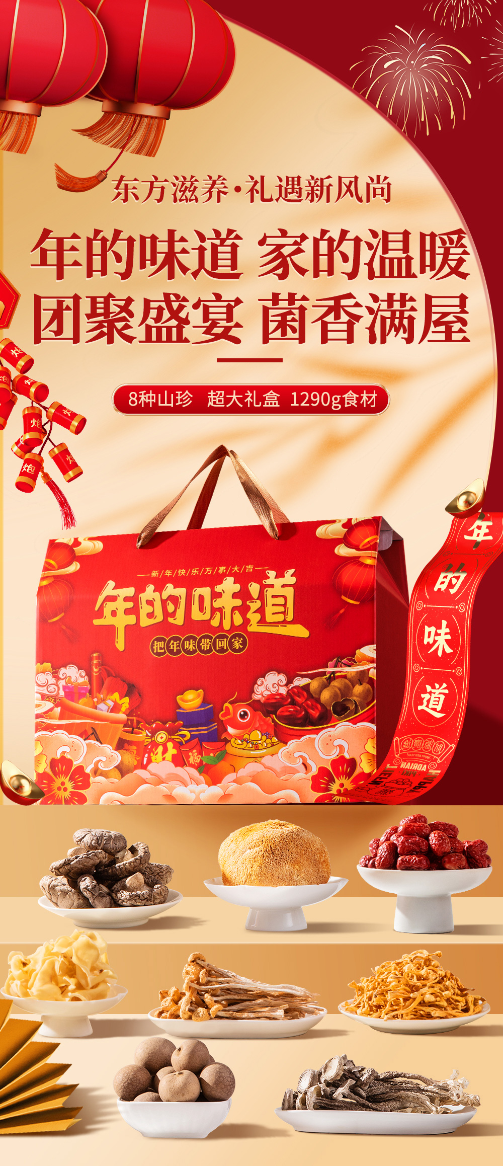 【中秋礼盒】神农金康 年的味道 菌菇干货八拼礼盒1290克 年货节礼品礼盒送长辈父母