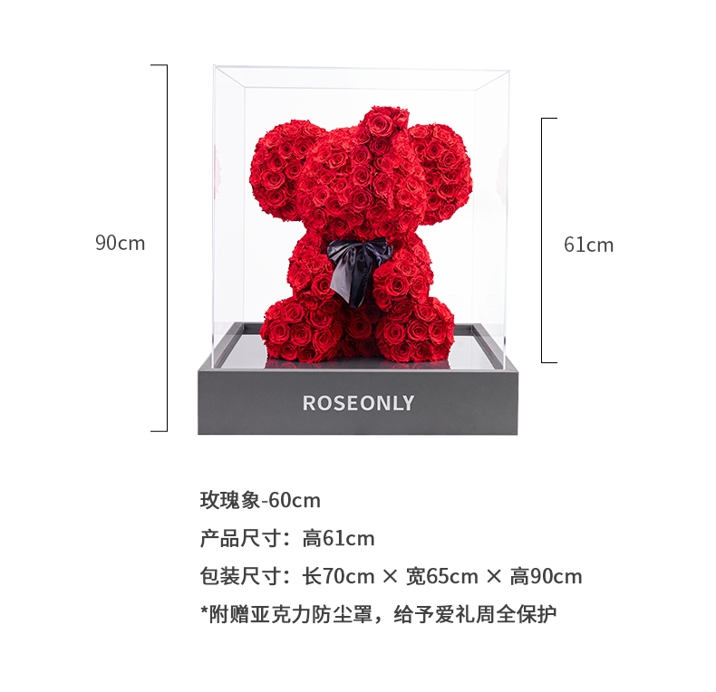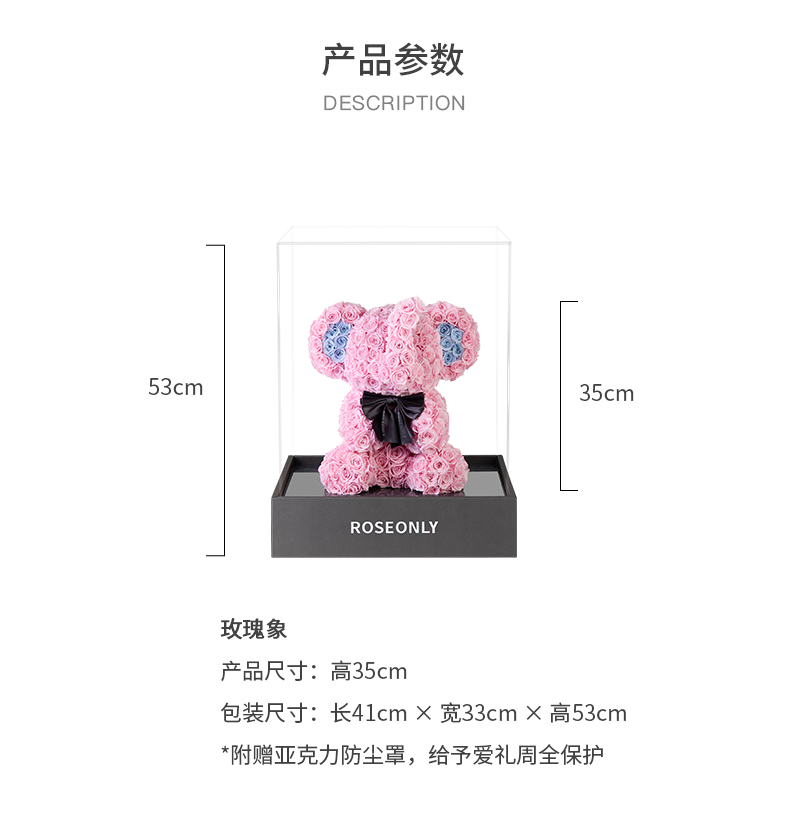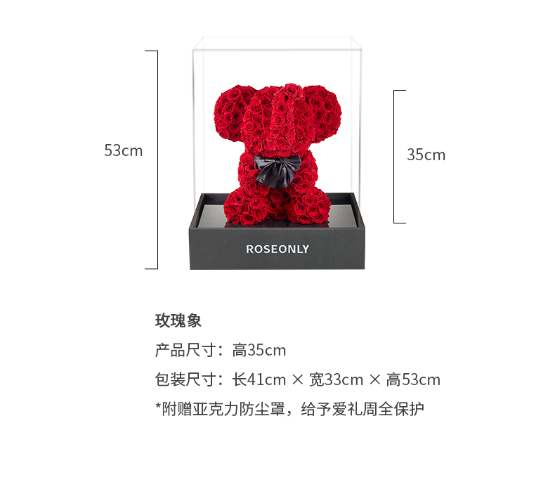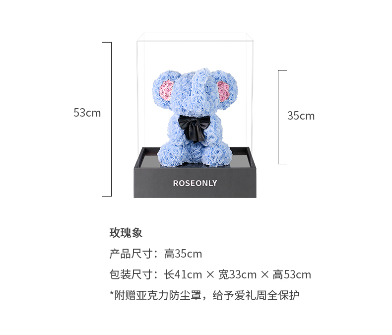 【告白神器】ROSEONLY诺誓 高端定制 永生玫瑰 玫瑰象 粉色 蓝色 红色 送朋友 送闺蜜