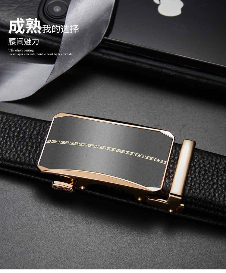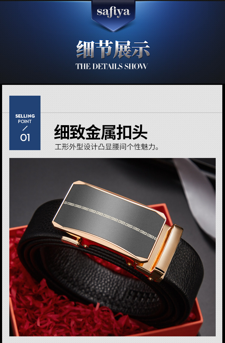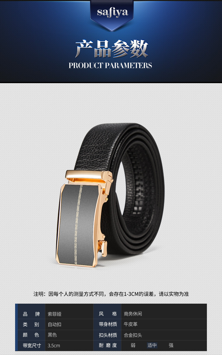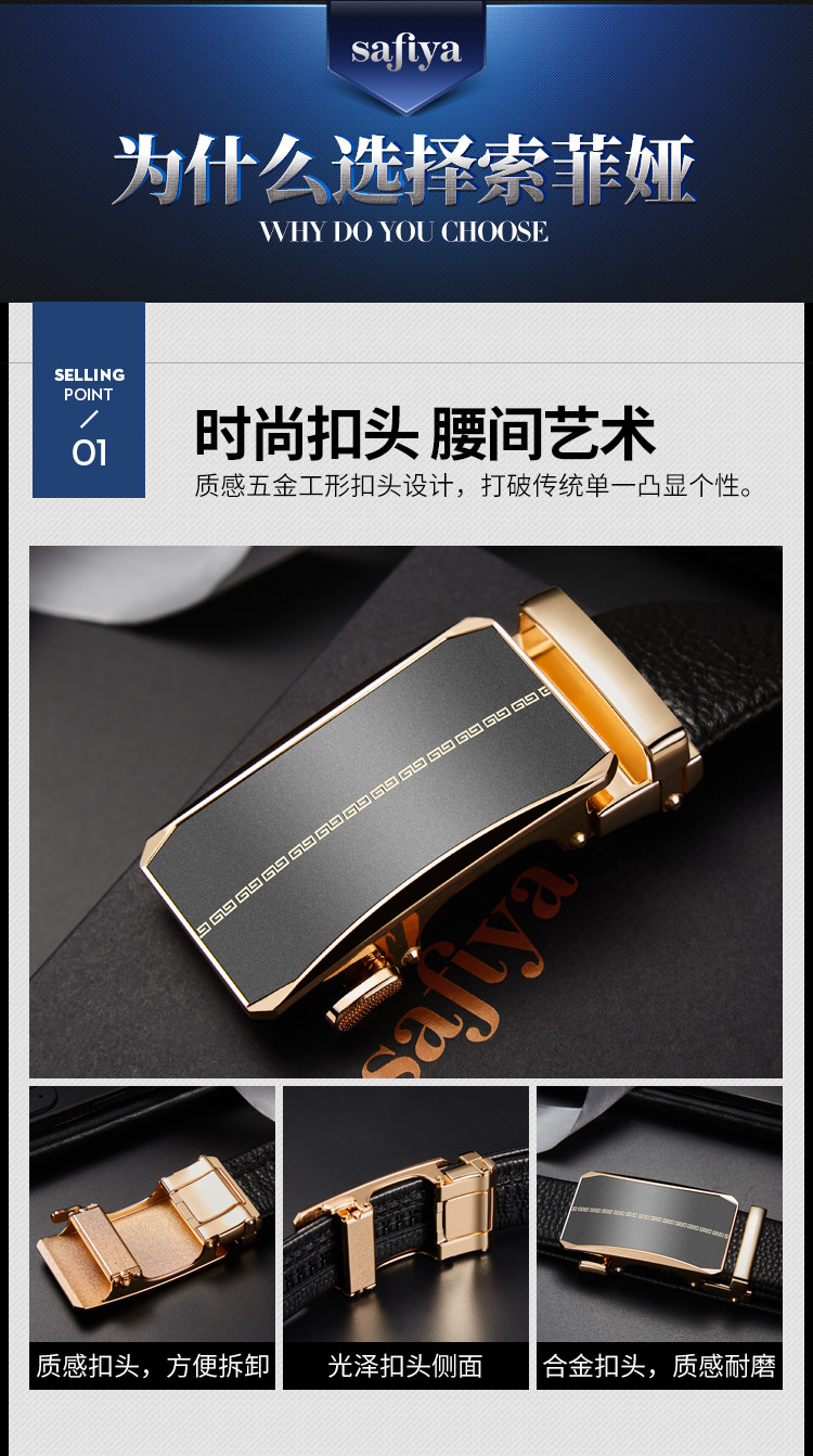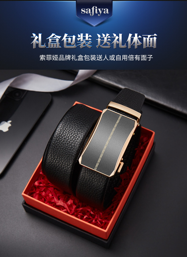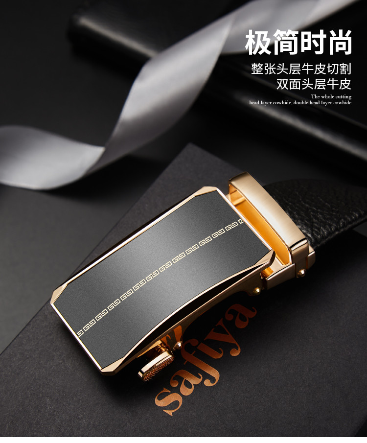 Safiya/索菲娅 头层牛皮2023新款男士皮带自动扣腰带简约百搭腰带SF500021Y