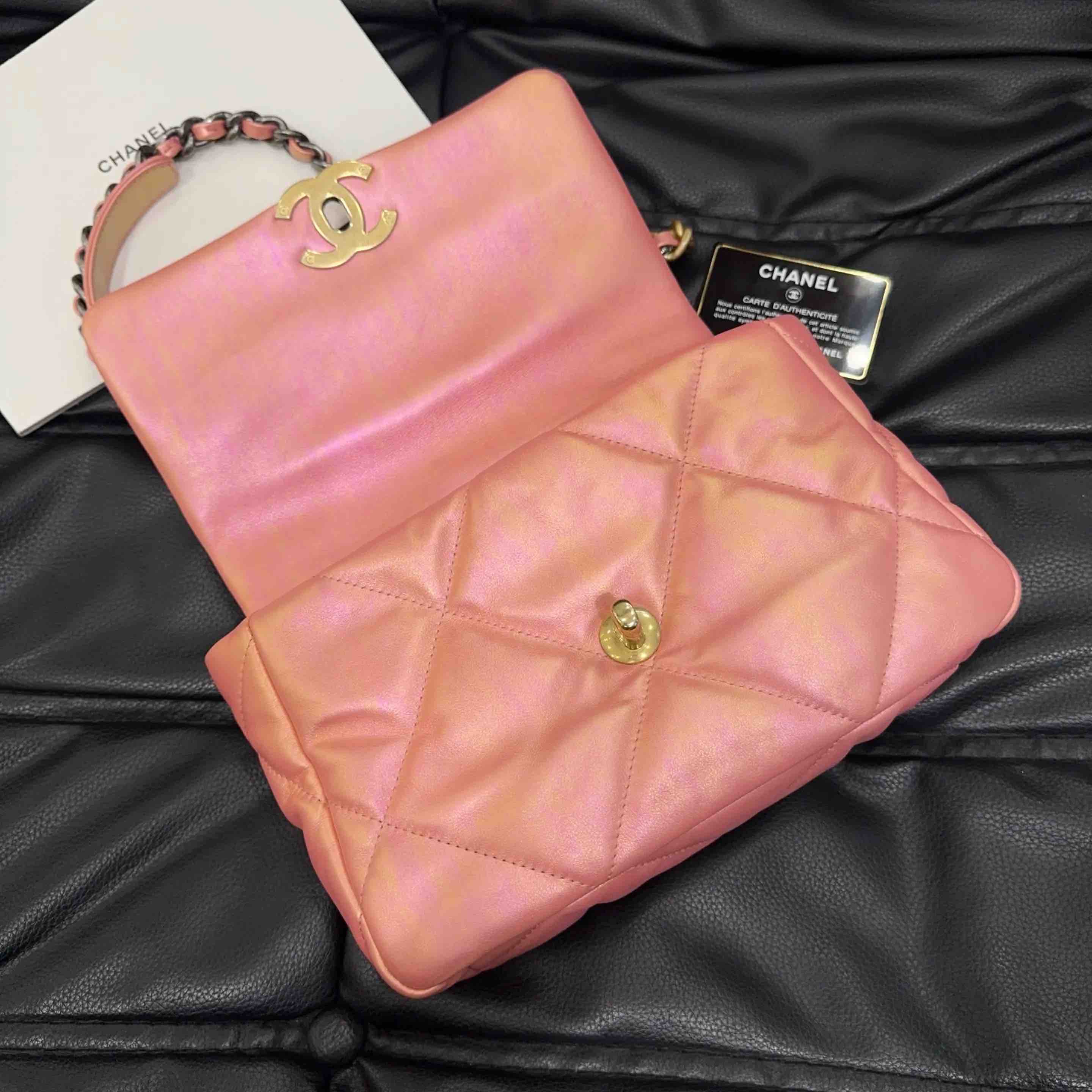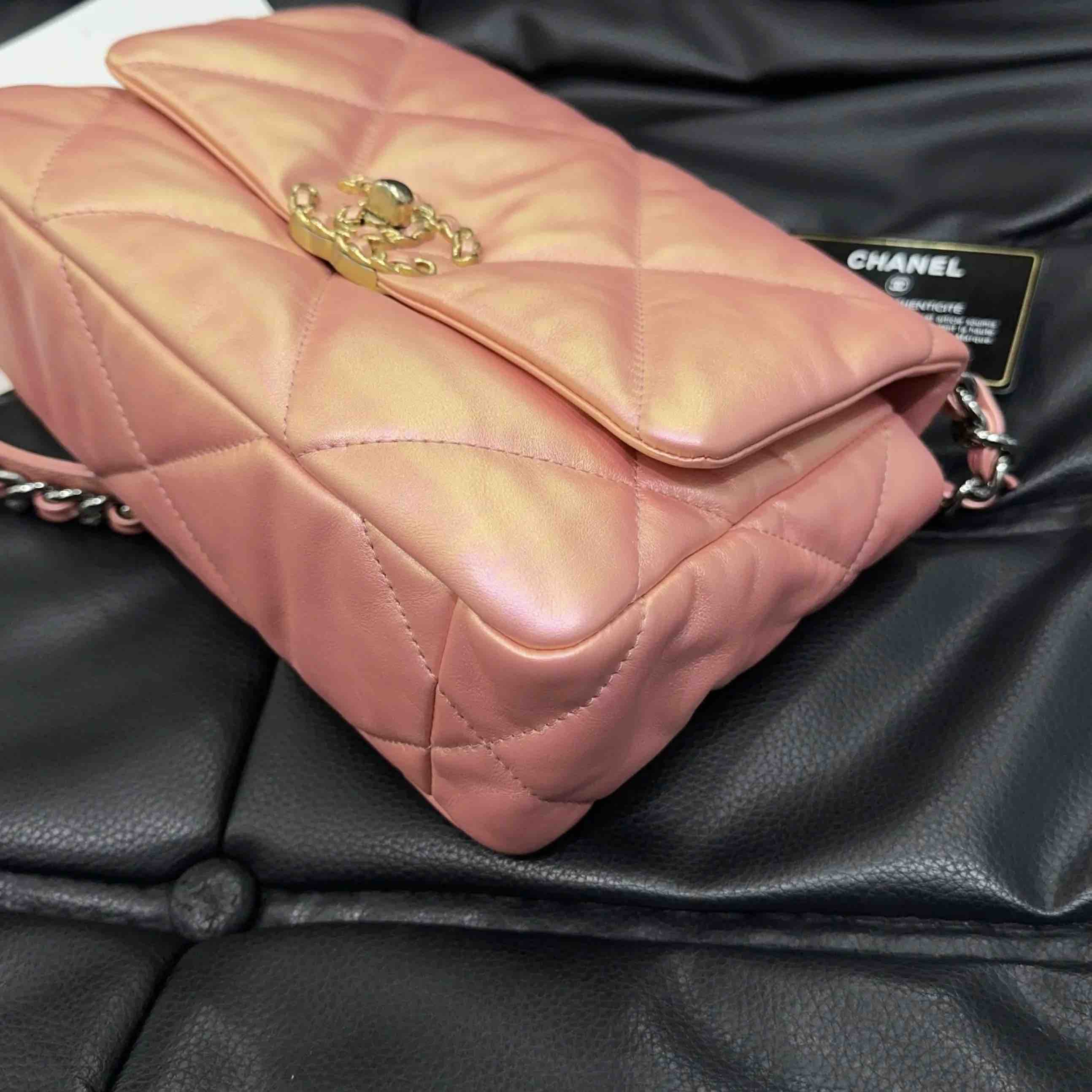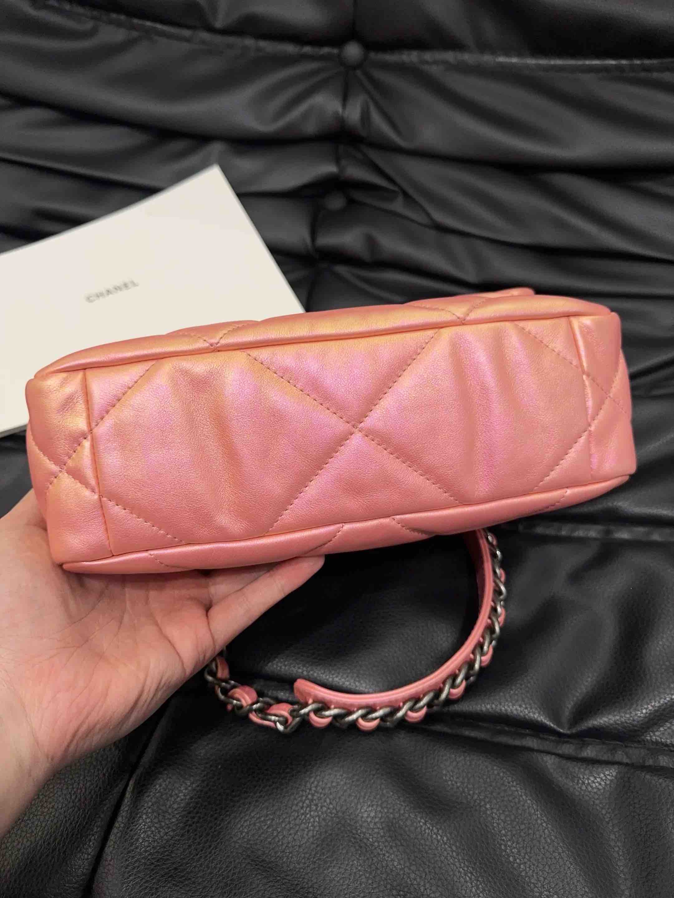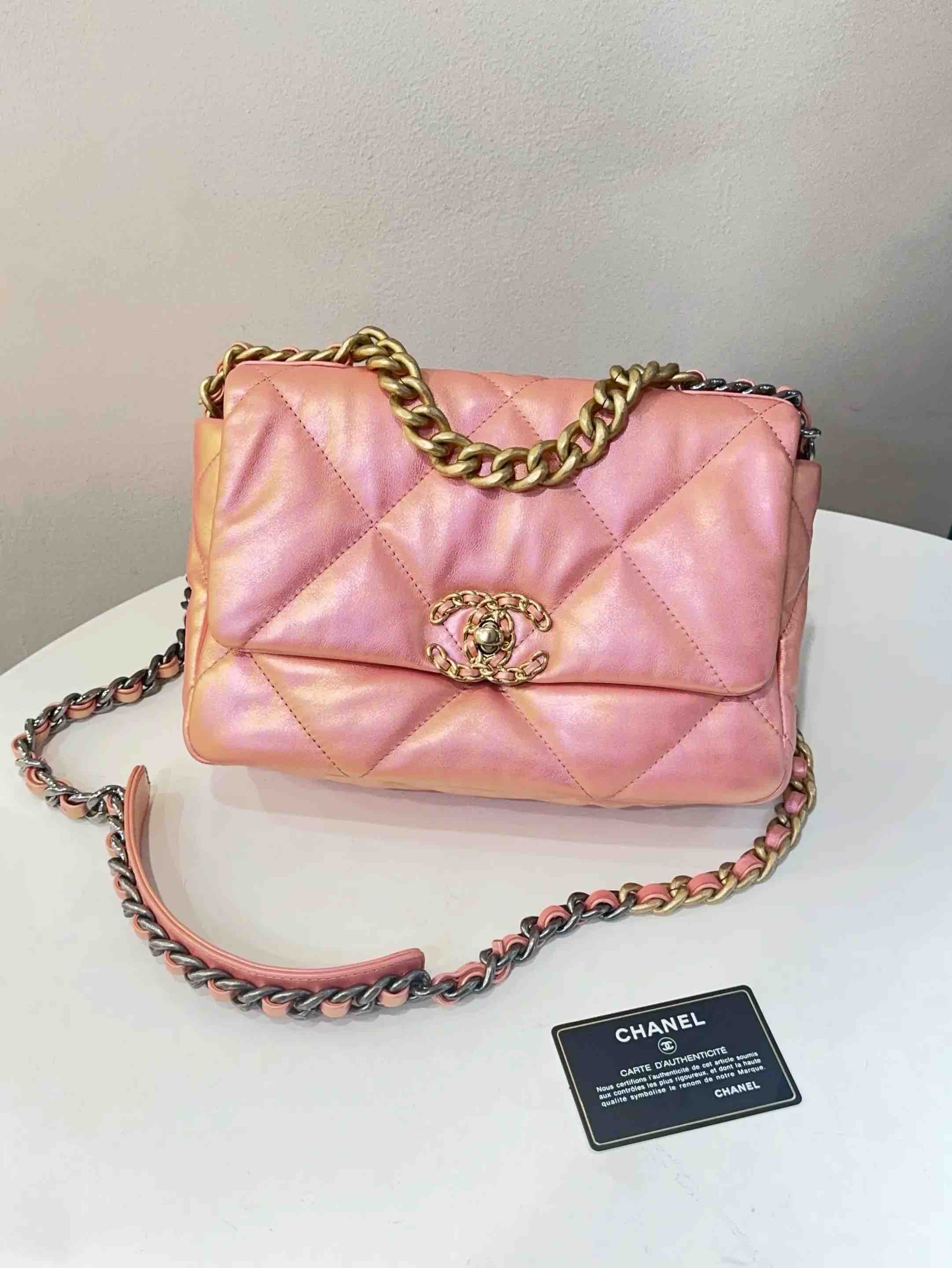 【商品详情】正品二手 CHANEL 19bag 山羊皮 人鱼姬粉 小号 斜挎包🧜 98新 镭射31开 26x17 配件:卡。21春夏新色 幻彩人鱼珠光粉