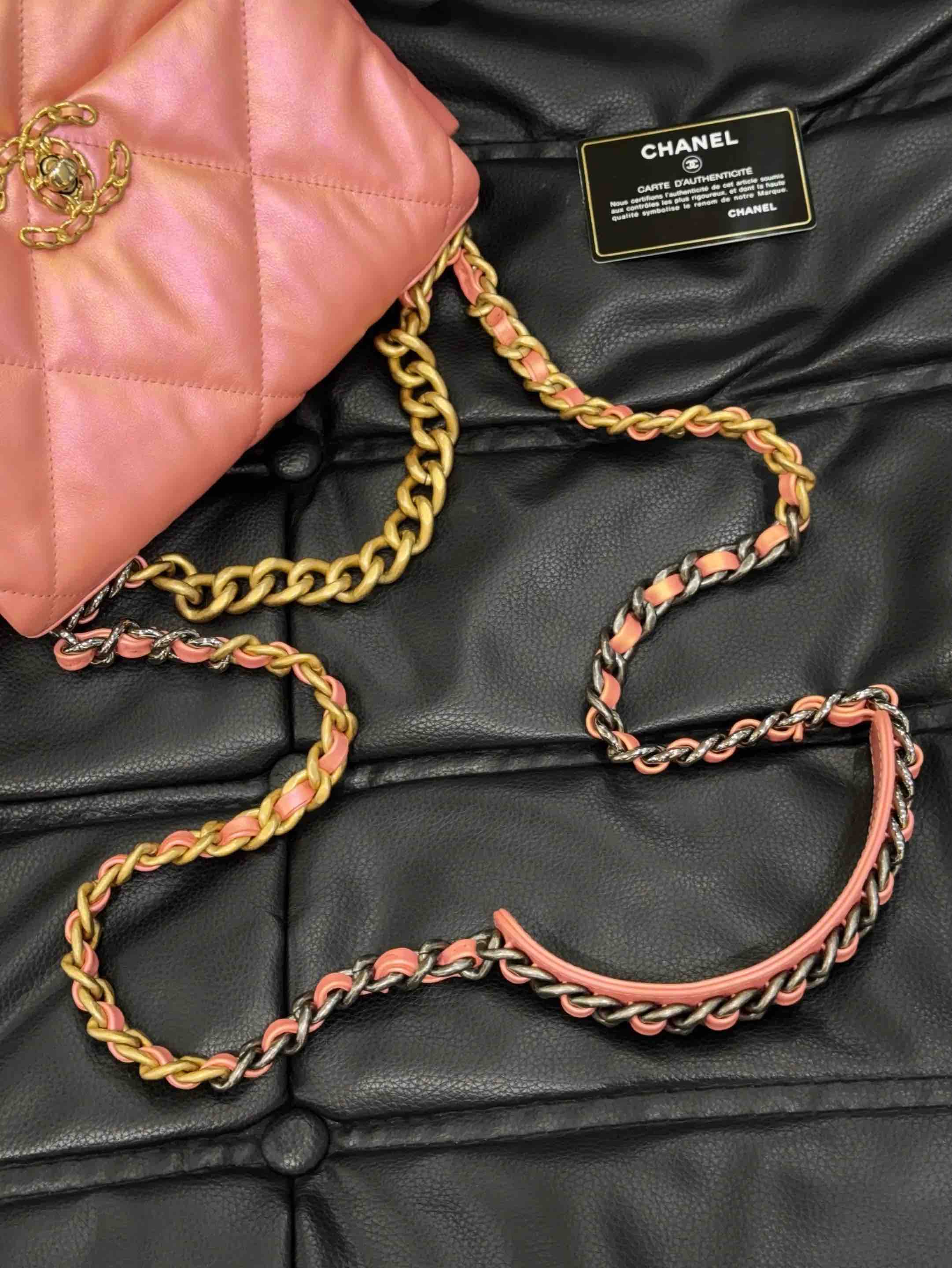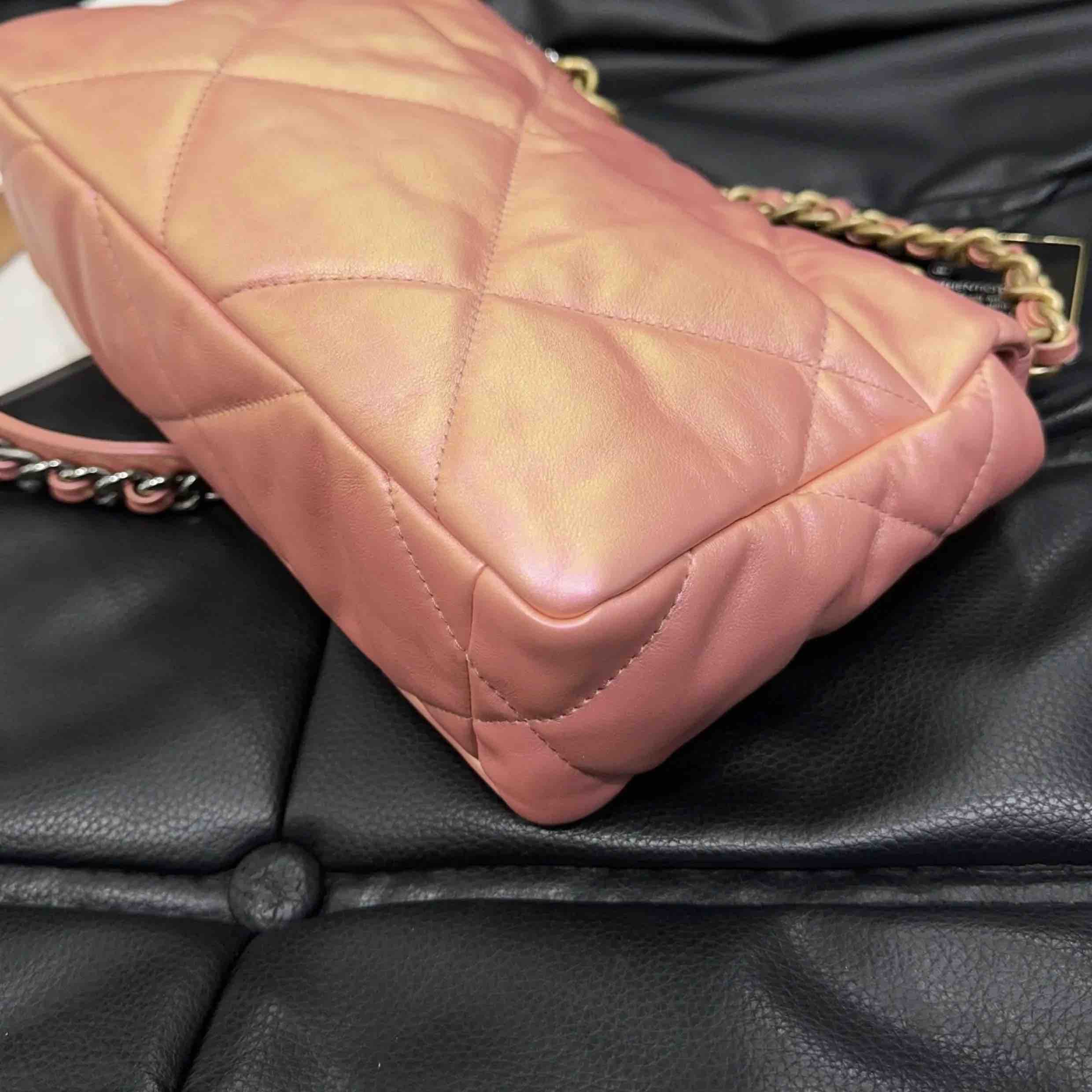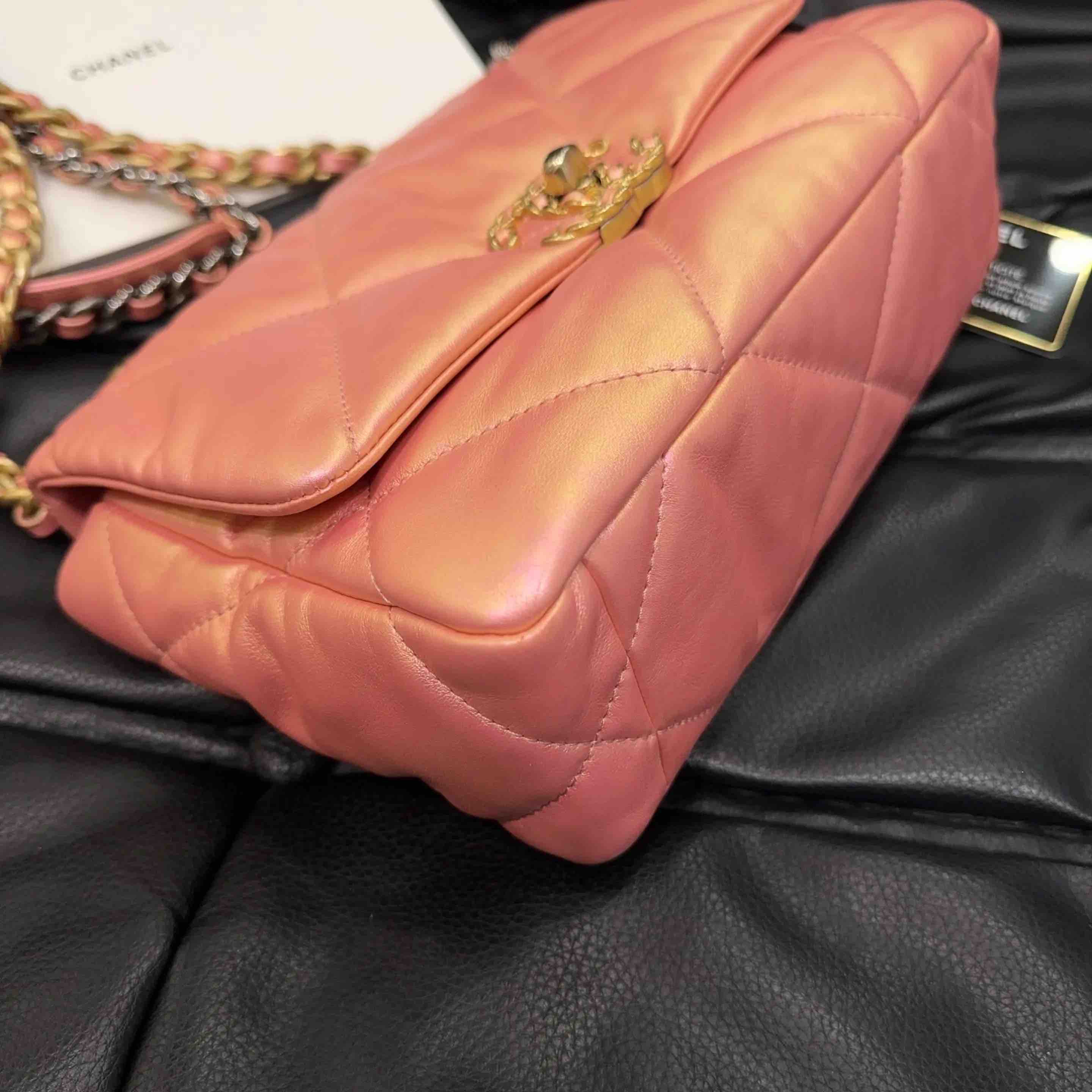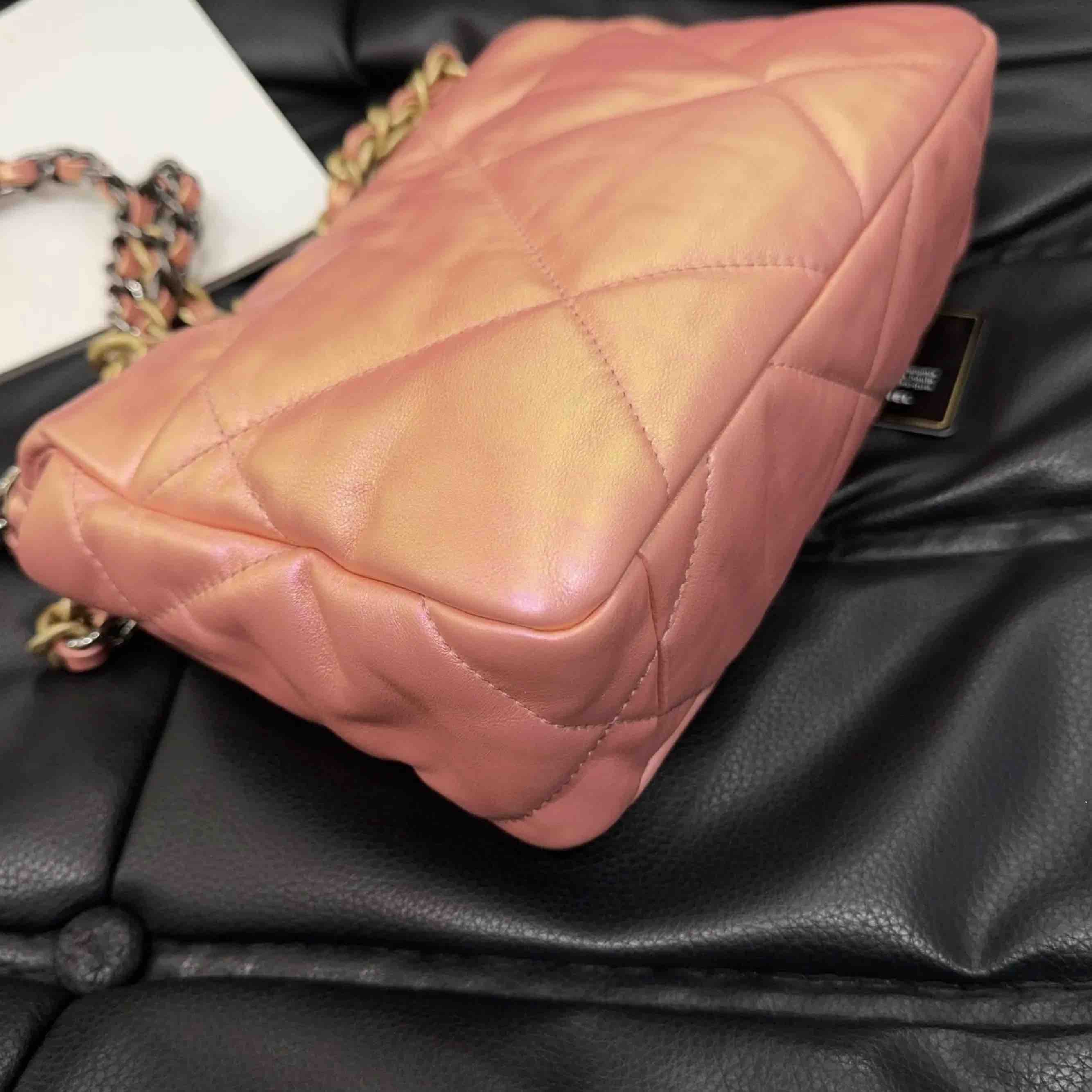 【商品详情】正品二手 CHANEL 19bag 山羊皮 人鱼姬粉 小号 斜挎包🧜 98新 镭射31开 26x17 配件:卡。21春夏新色 幻彩人鱼珠光粉