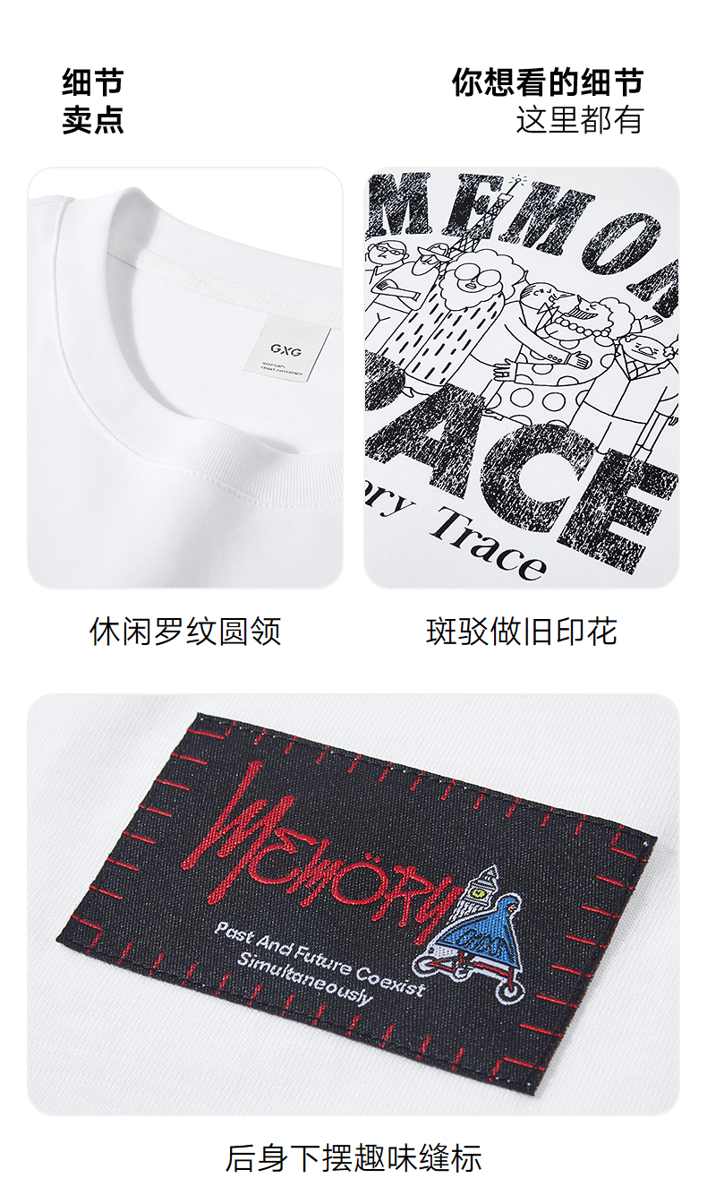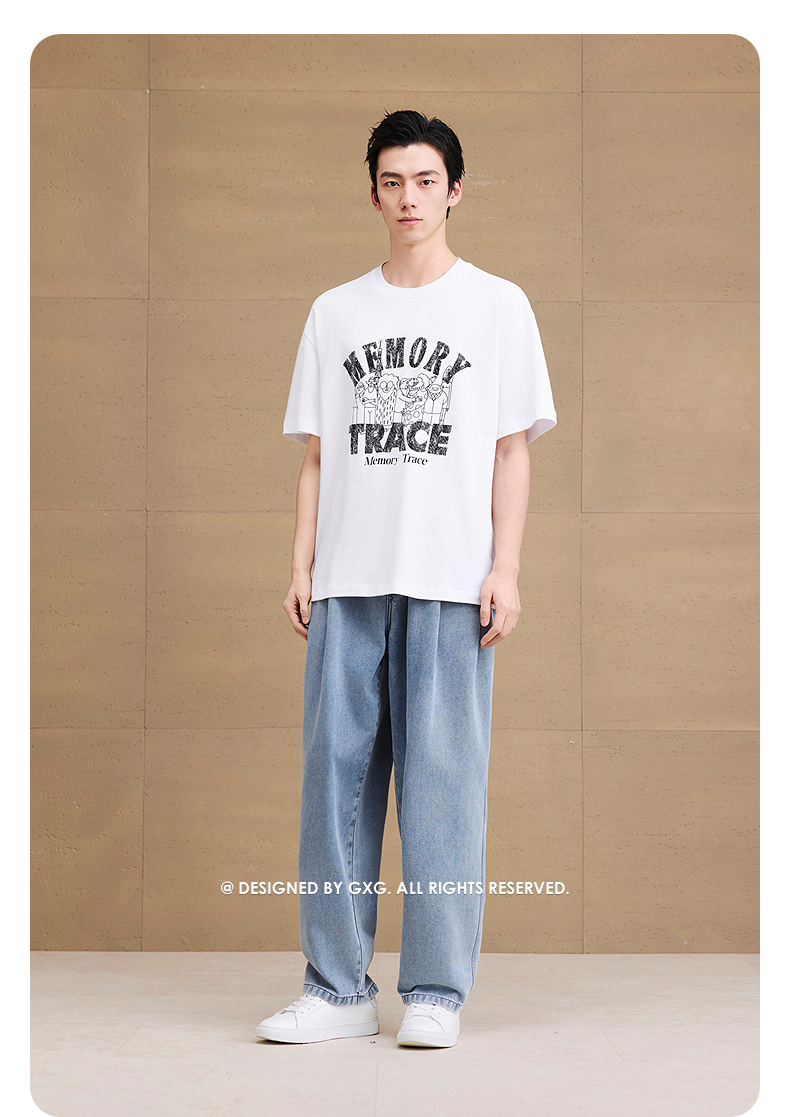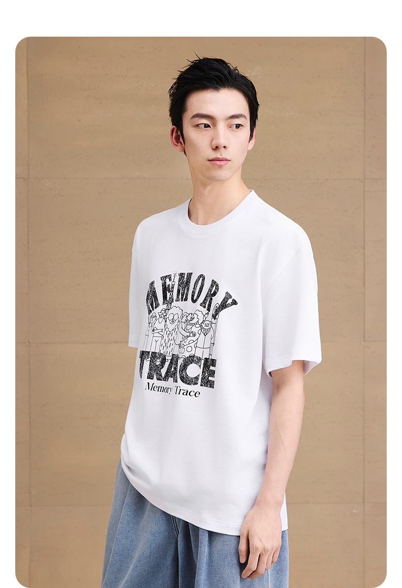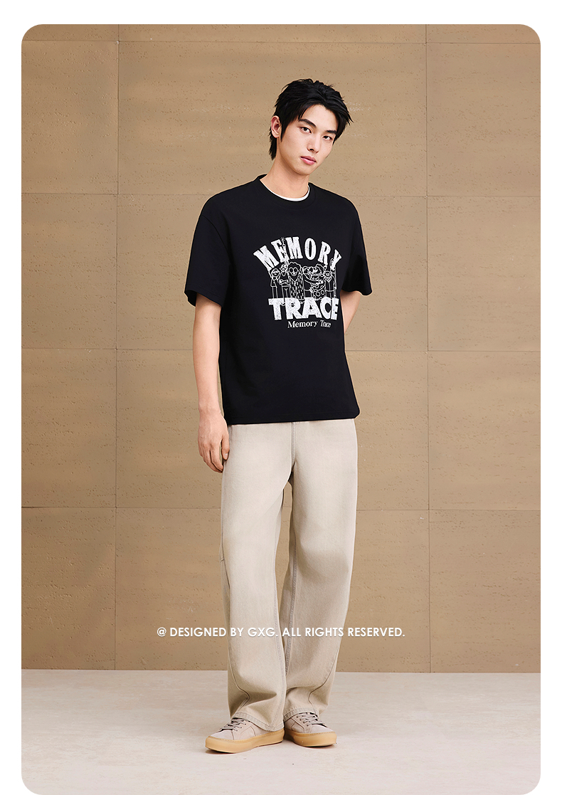 GXG男装 圆领T恤卡通图案印花上衣凉感短袖针织 2025夏季新品