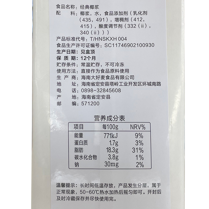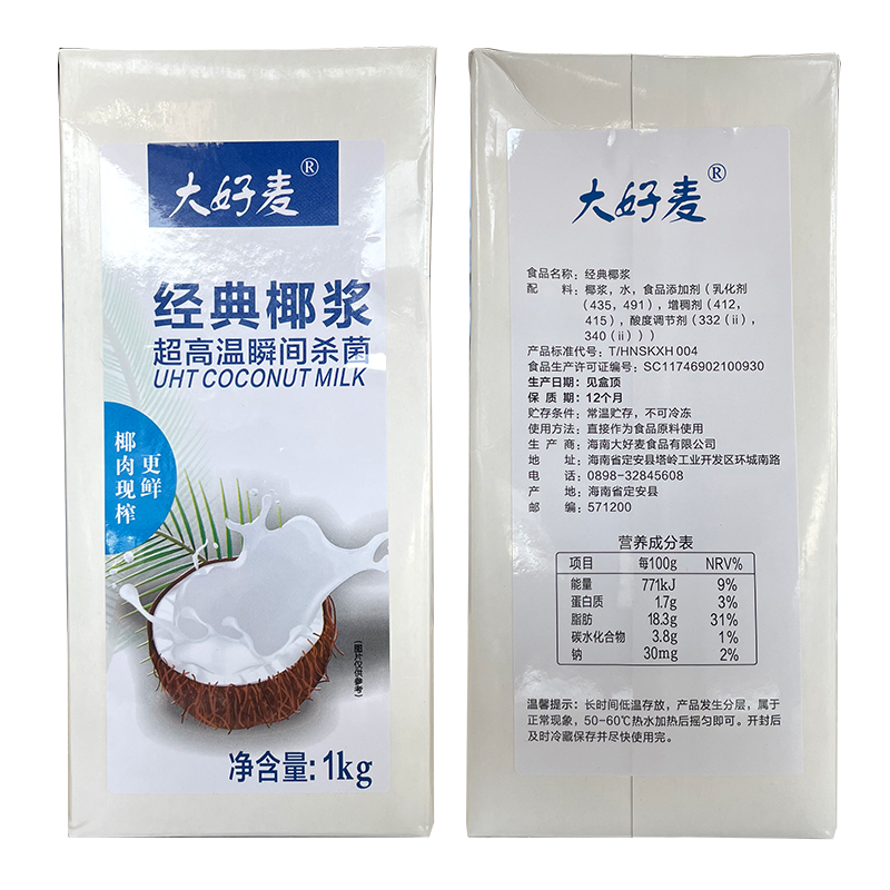 大好麦经典椰浆1kg西米露甜品商用烘焙奶茶店原料整箱