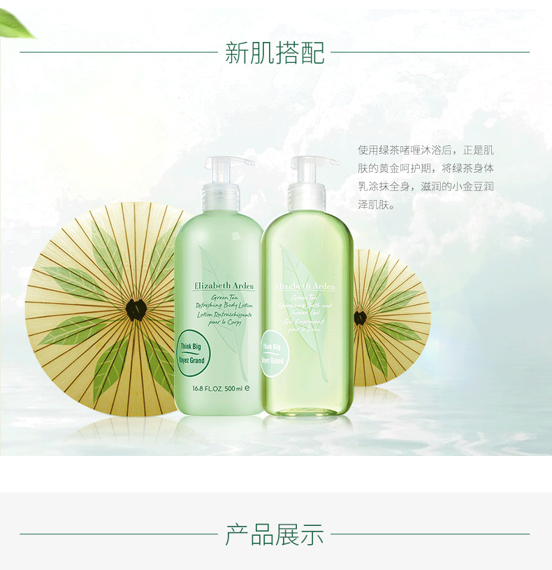伊丽莎白雅顿 绿茶沐浴露500ml/身体乳液500ml 单瓶礼盒套装 清透滋润紧致提亮香味清新
