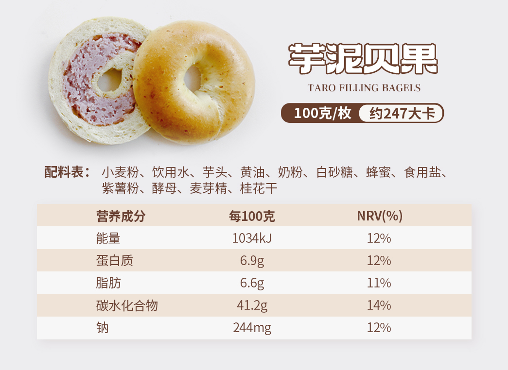 1.贝果规格:100g/个,多种口味