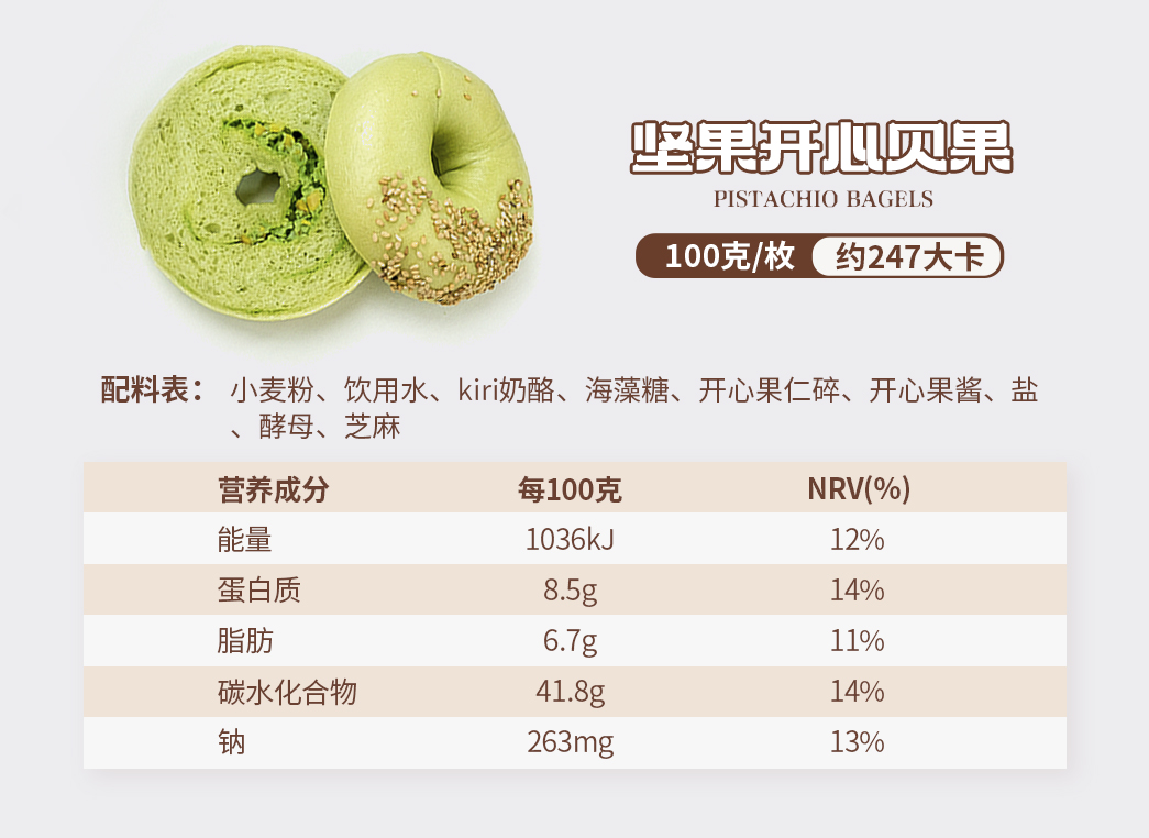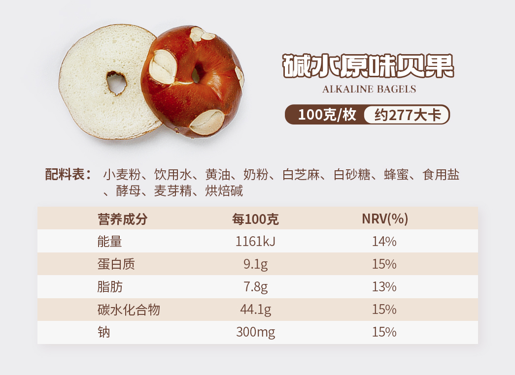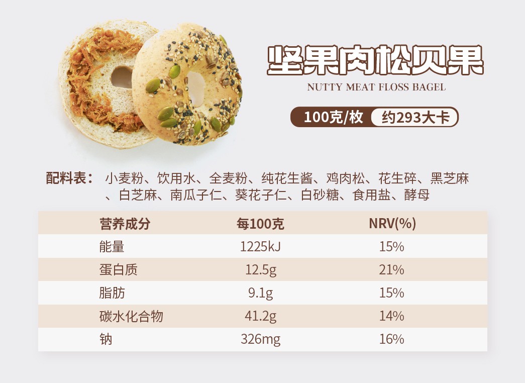 全麦原味贝果配料:小麦粉、全麦粉、食用盐、干酵母、饮用水