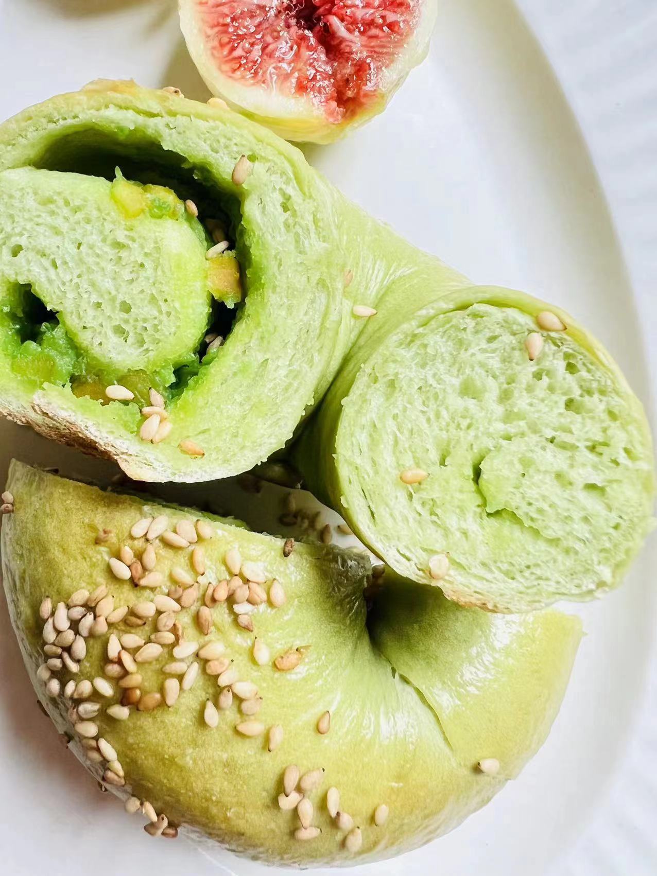配料总结:面包体没加额外加糖,抹茶馅儿加了一点糖,香肠款没有加糖。