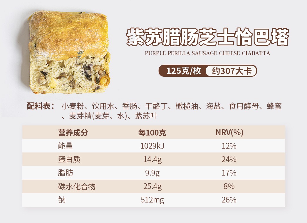 腊肠榨菜香辣贝果配料:小麦粉、全麦粉、乌江榨菜、宜宾腊肠、干酵母、食用盐、饮用水、六婆婆辣椒粉。