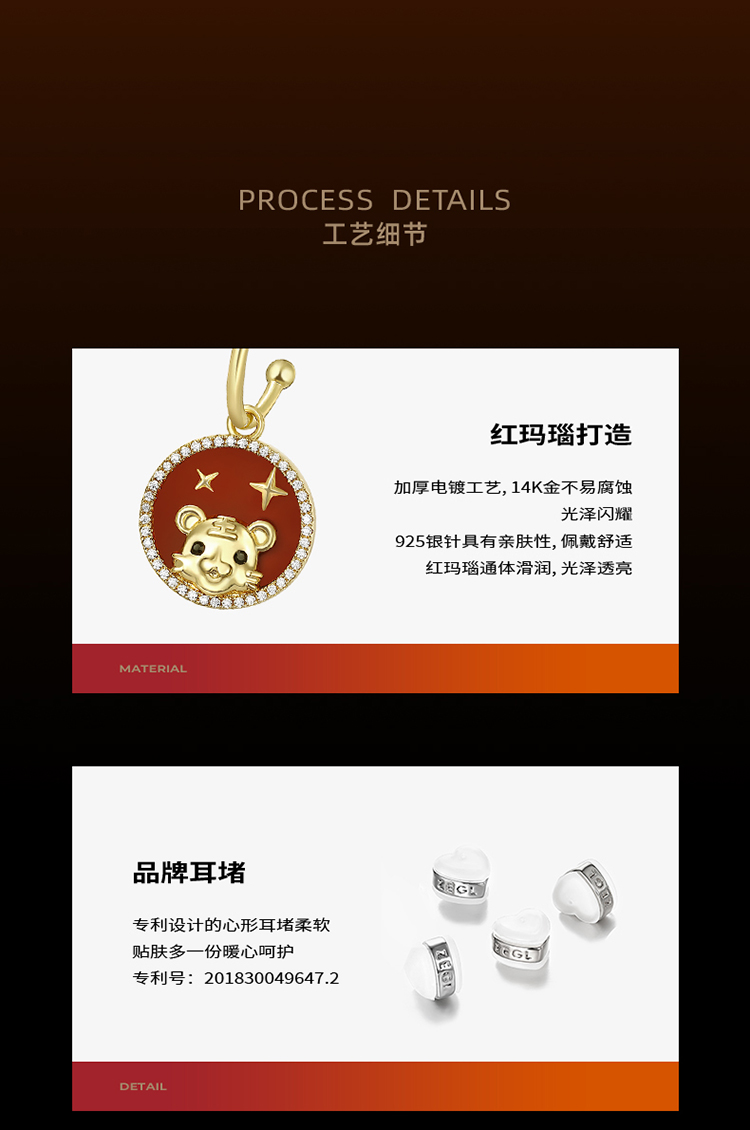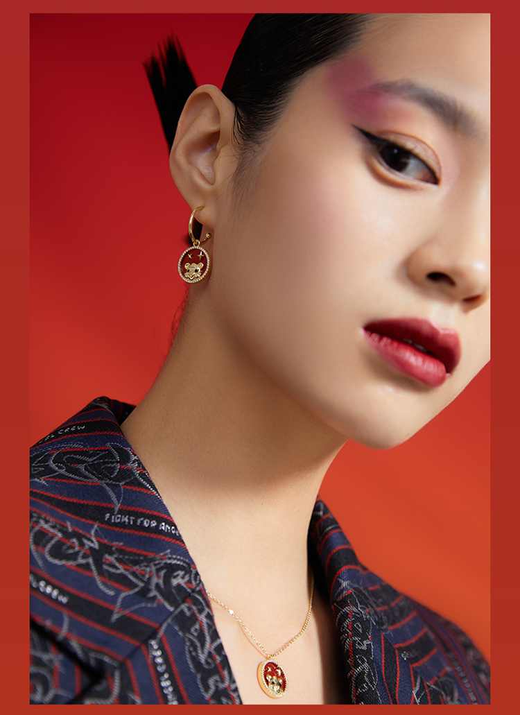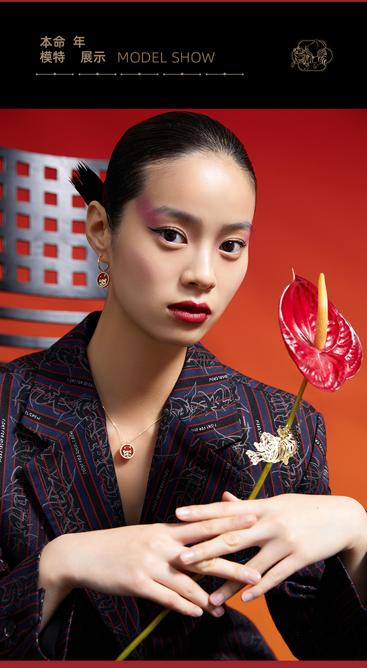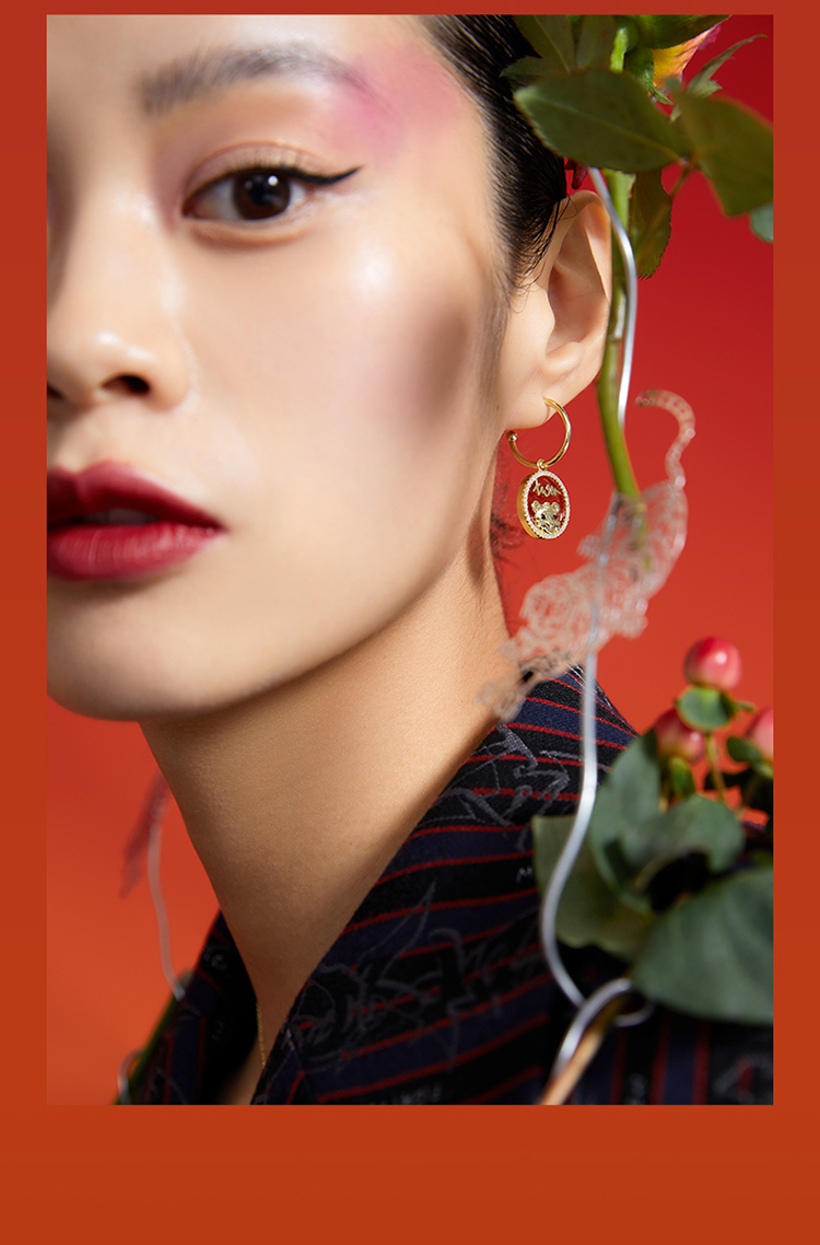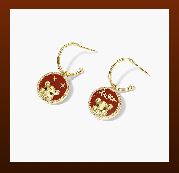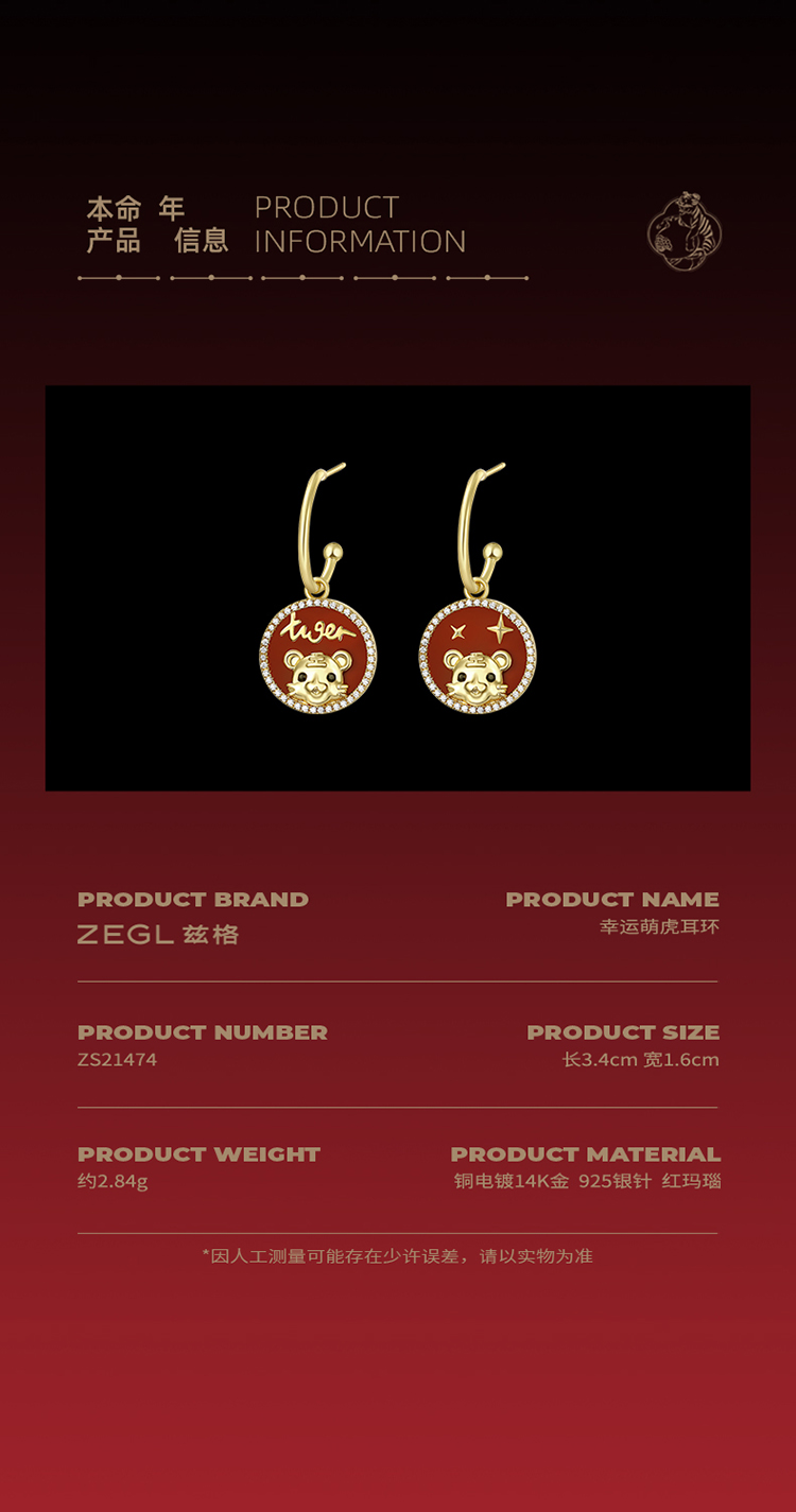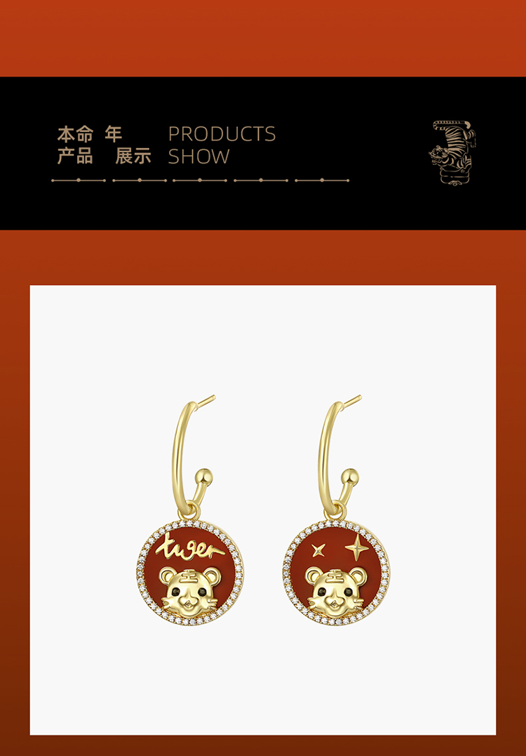 ZEGL设计师虎年本命年礼物幸运虎耳环女设计感红色耳钉银针耳饰品