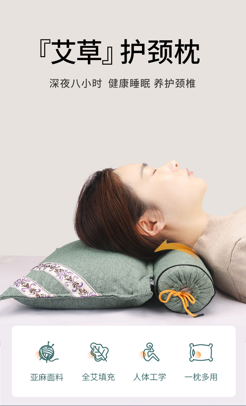 【骨科医师推荐】艾草热疗护颈枕 十二味草本填充 修复颈椎 牵引热敷拉伸按摩 助睡安眠 释放肩颈压力 保护颈椎 多功能保健枕 颈椎枕头