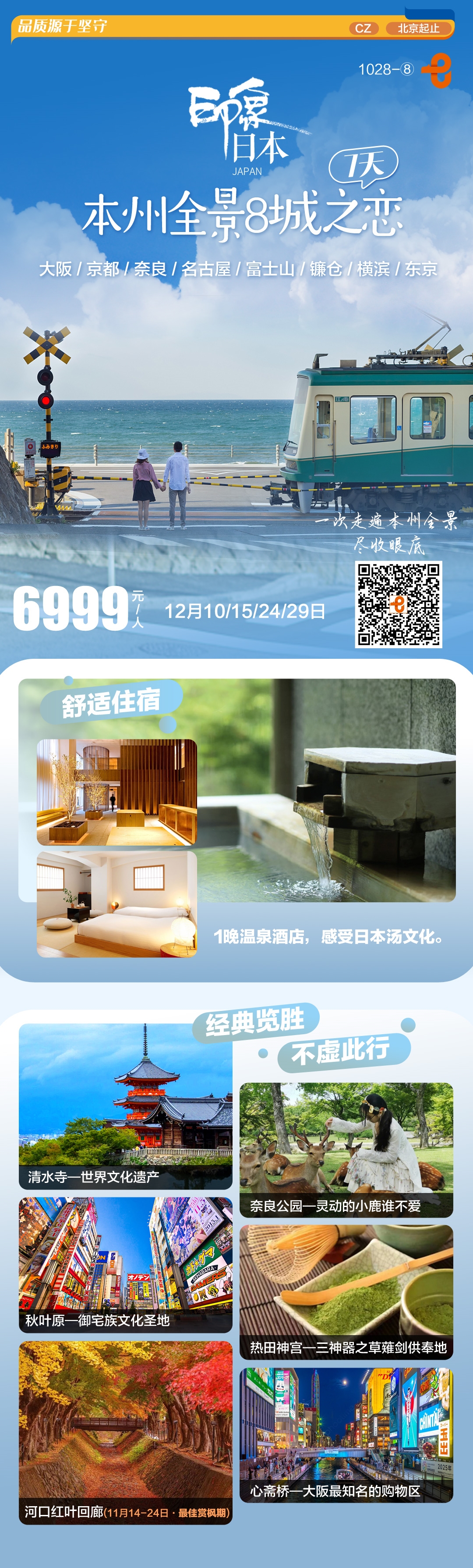【北京出发】本州全景8城之恋7日 北京直飞 双点进出不走回头路