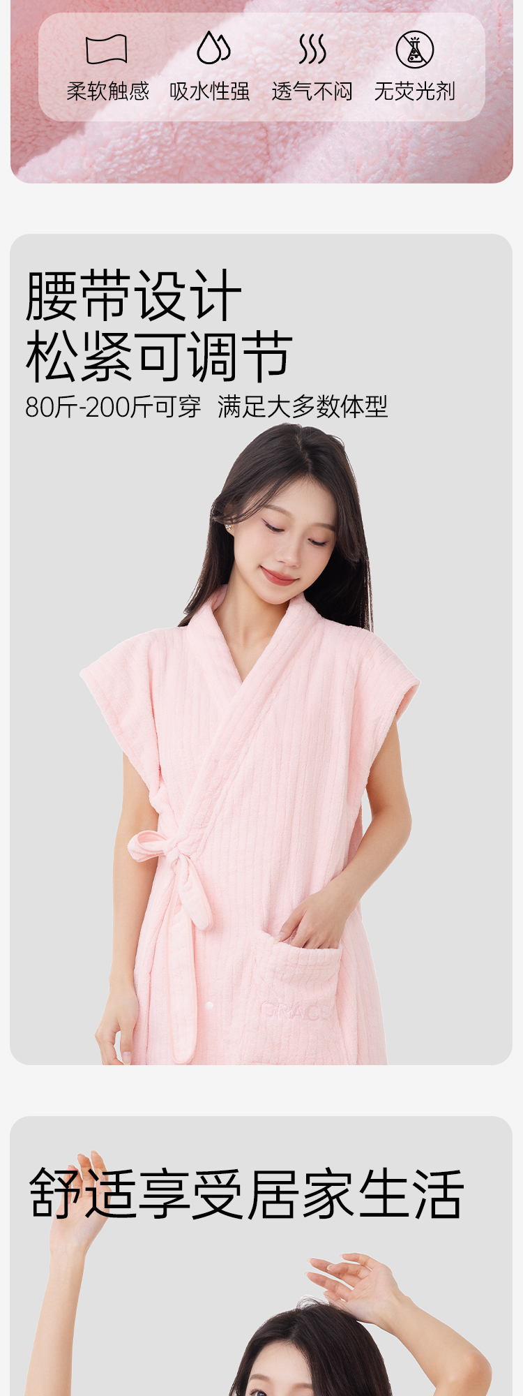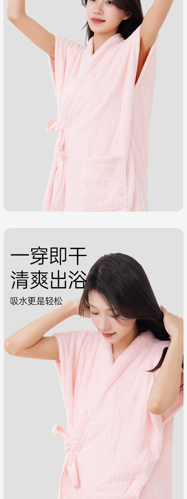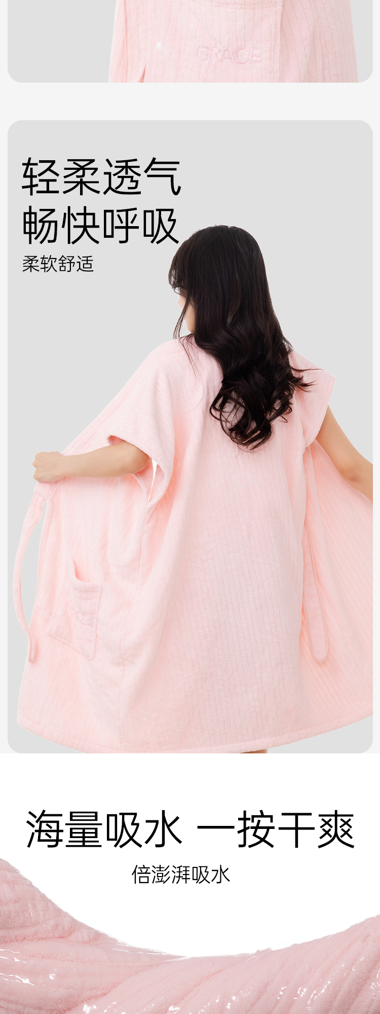 洁丽雅可穿式浴袍洗澡速干吸水加大柔软浴裙长款成人透气家用亲肤