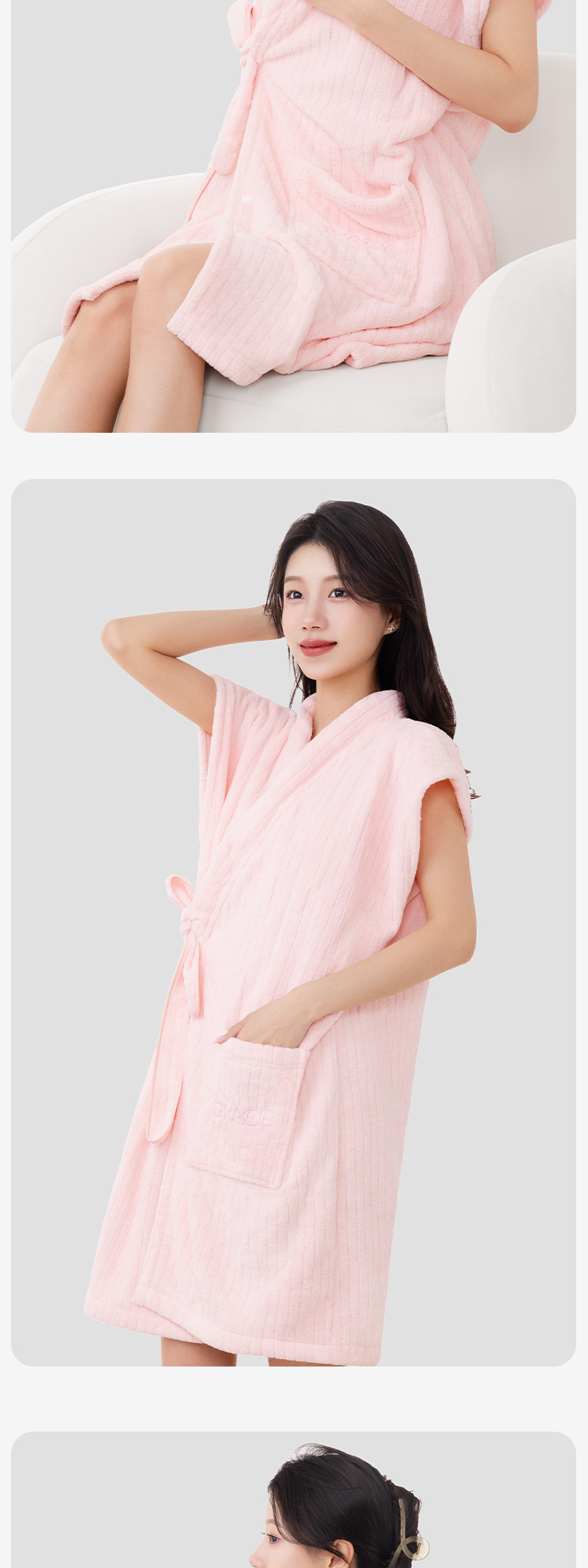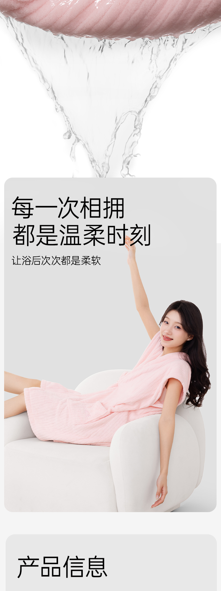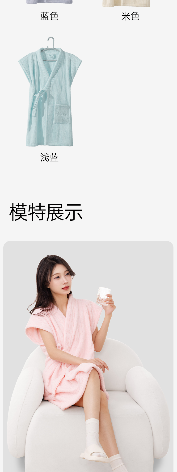 洁丽雅可穿式浴袍洗澡速干吸水加大柔软浴裙长款成人透气家用亲肤
