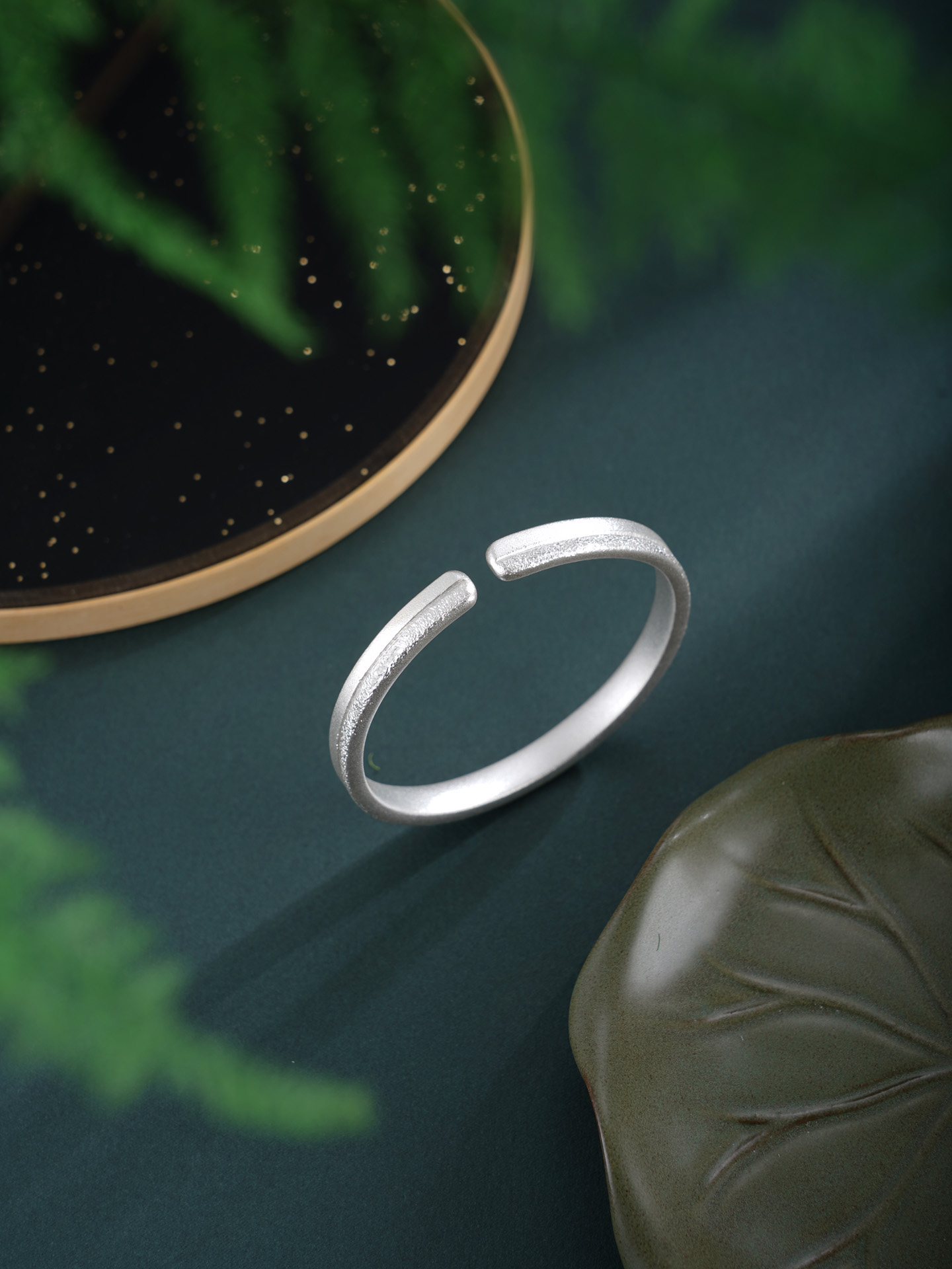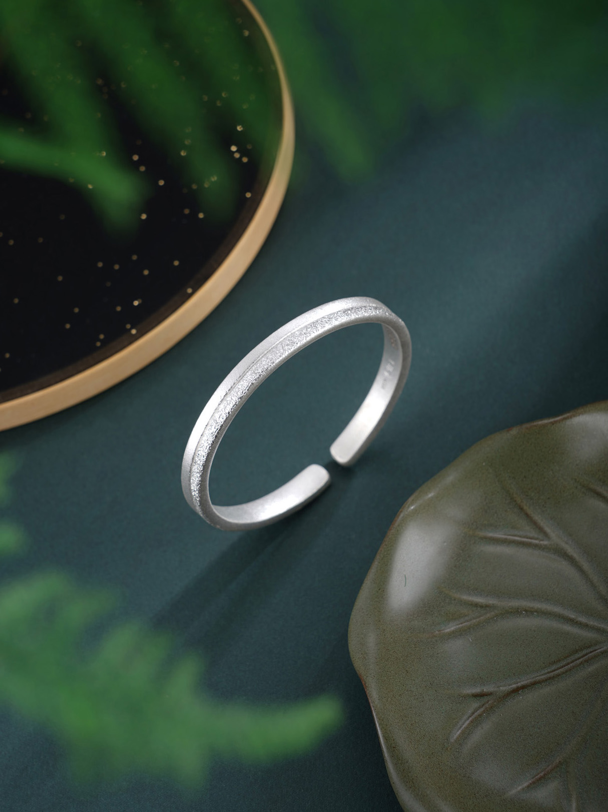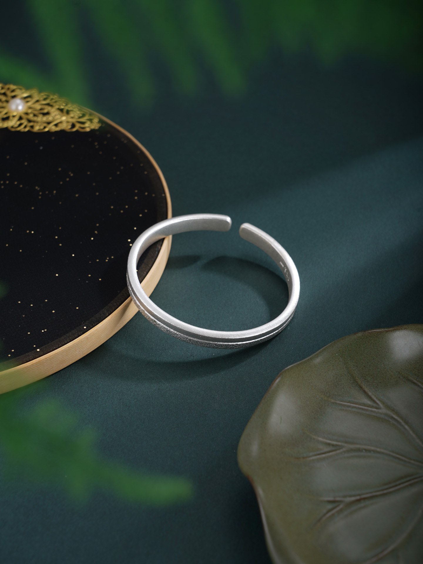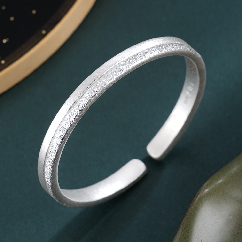 【寓意】:纯银手工手镯,半作哑光温润,半为喷砂莹闪,两种工艺自然相融,如锦缎交织,凝为岁月里温柔不变的守望。