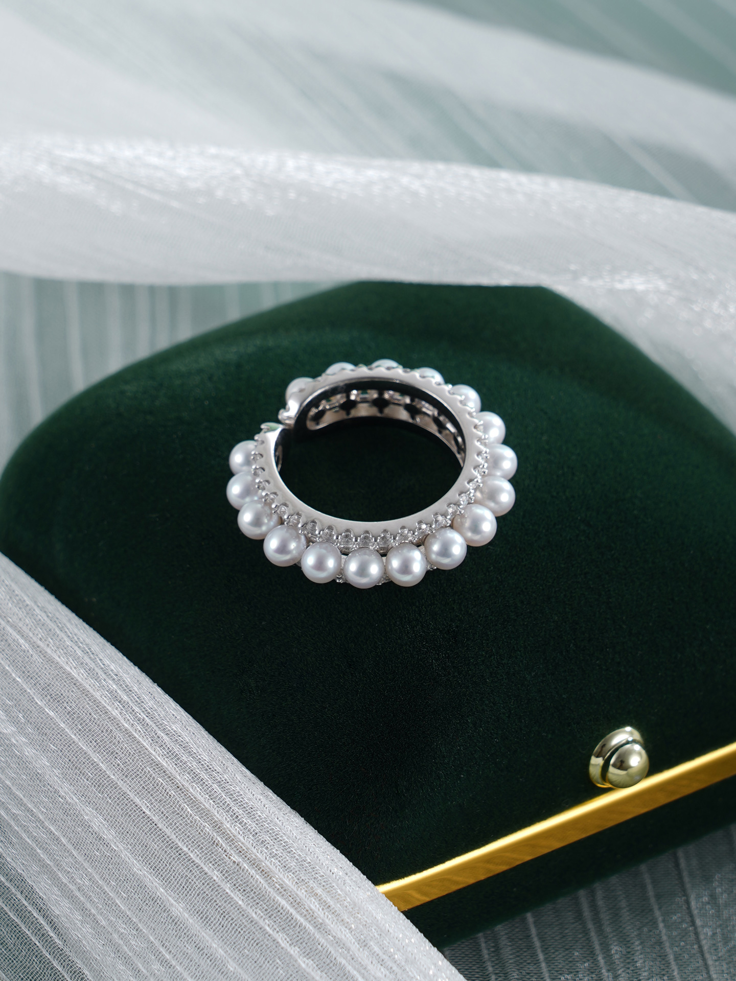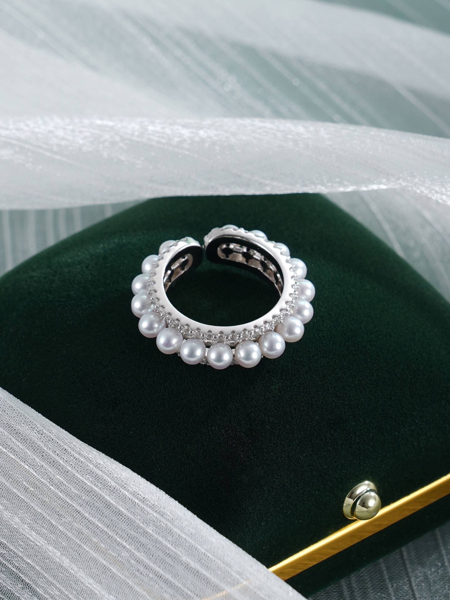 子佩集【银河缪斯】银S925珍珠AOYA奥雅戒指【MLJZ027】3.5mm珠单圈满珠2512
