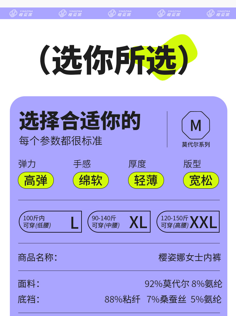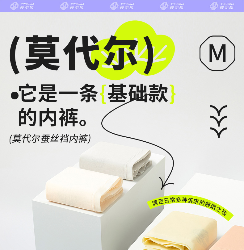 老虎书店-【60支莫代尔 4条装】樱姿娜高弹莫代尔女内裤4条装透气速干舒适多色 80-150斤可穿