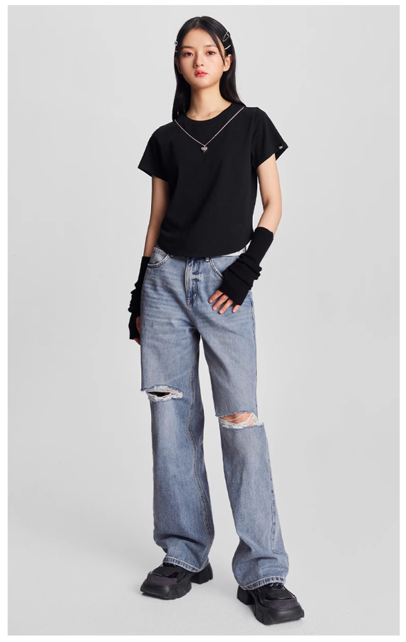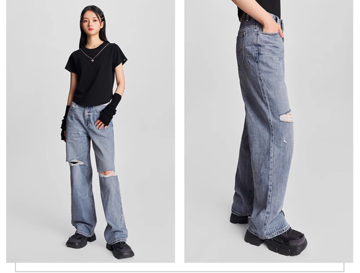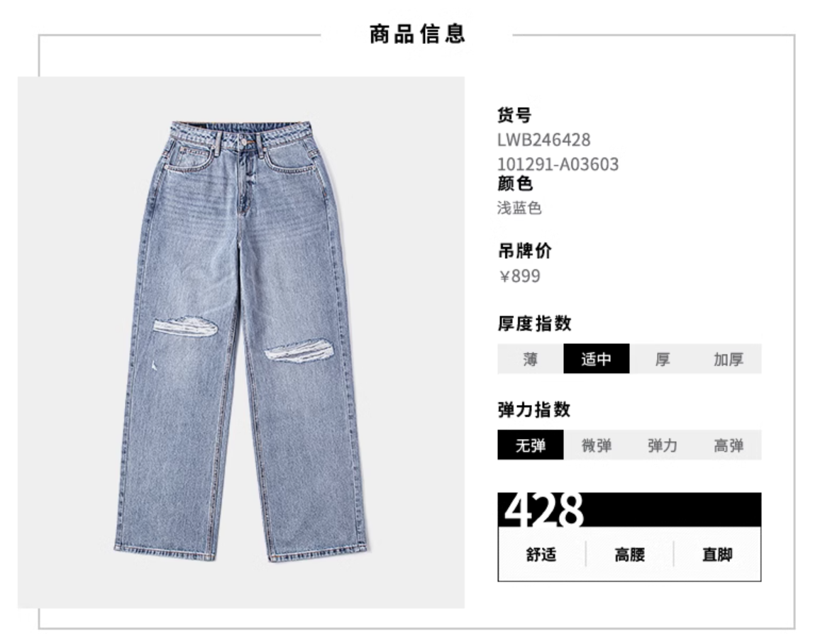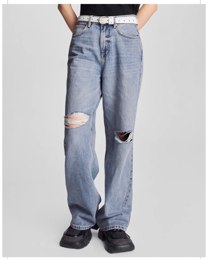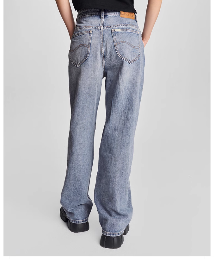 LEE新品428舒适高腰直脚破洞浅蓝色女牛仔裤潮流LWB246428101291