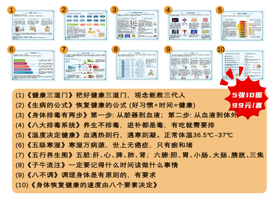 健康海报工具:5张,10面KT海报(尺寸21*42cm)