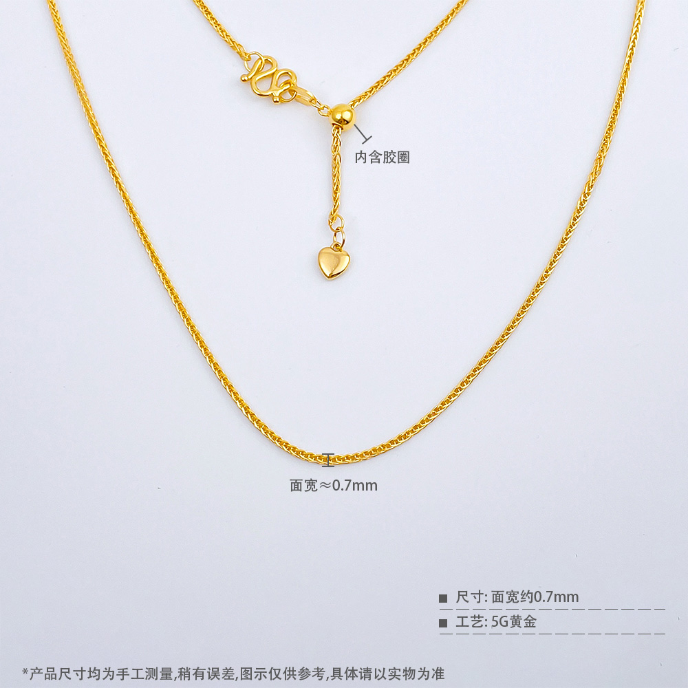 【限时克减150元】足金999 (足金999字印)5G黄金心尾款抽拉调节方肖邦链项链(5GXL00072-03)补差价)预售产品下单后不退款不退货不换货不补差价