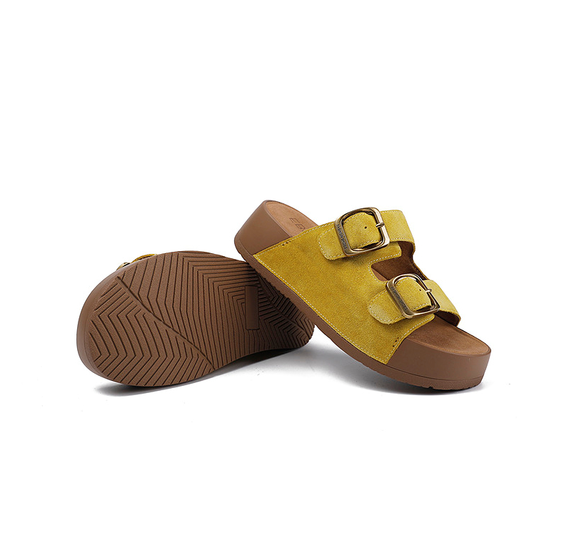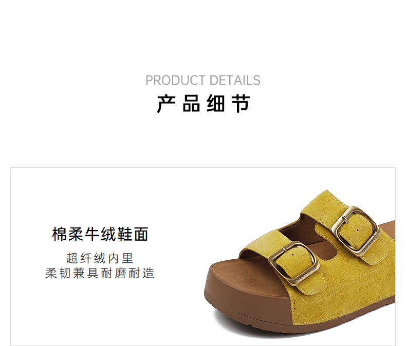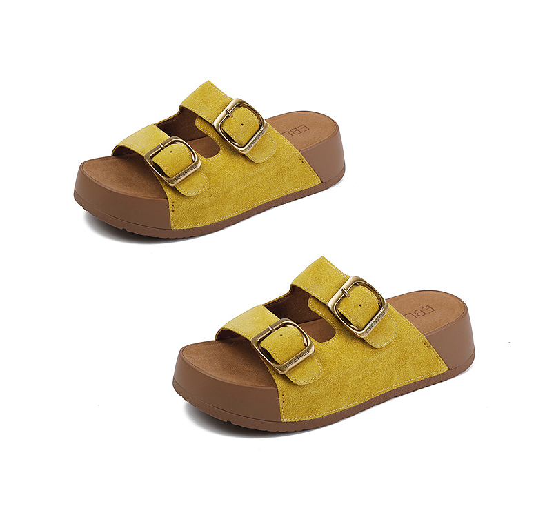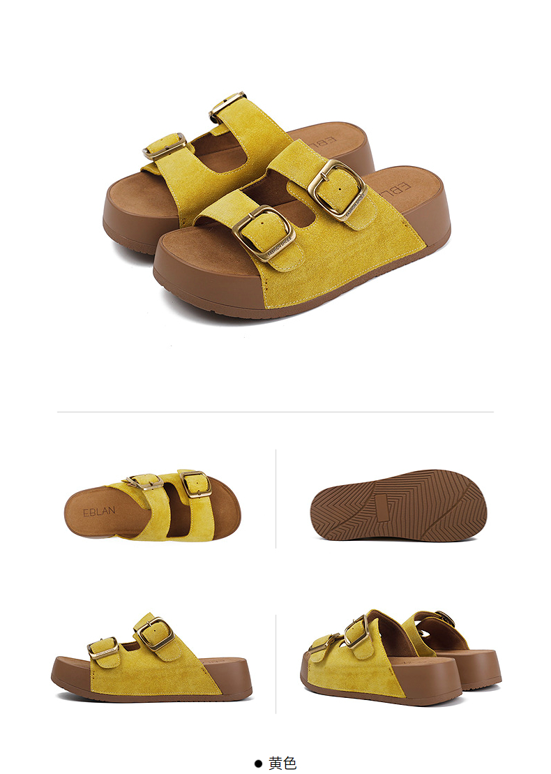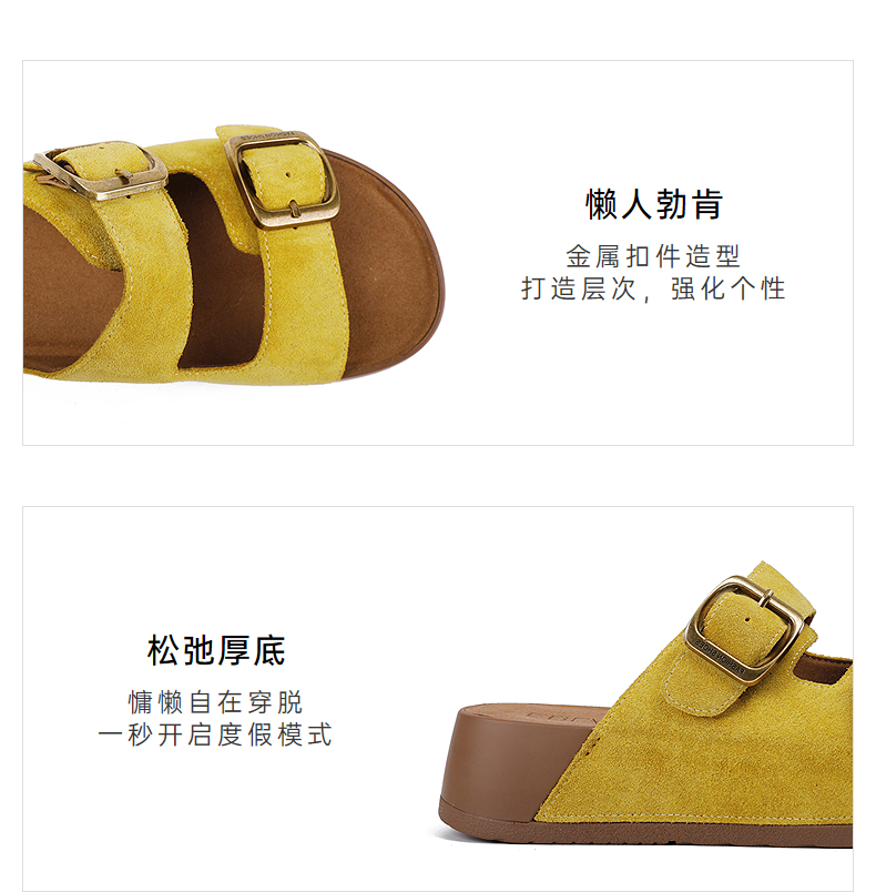 伊伴夏季懒人勃肯牛绒鞋面松弛厚底慵懒感凉鞋B25383309