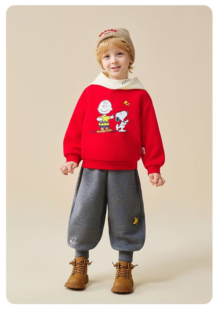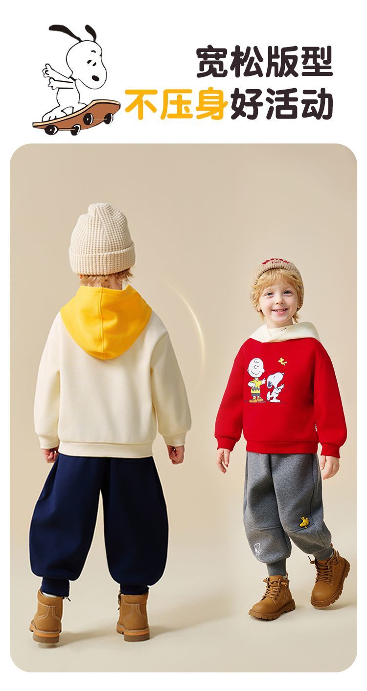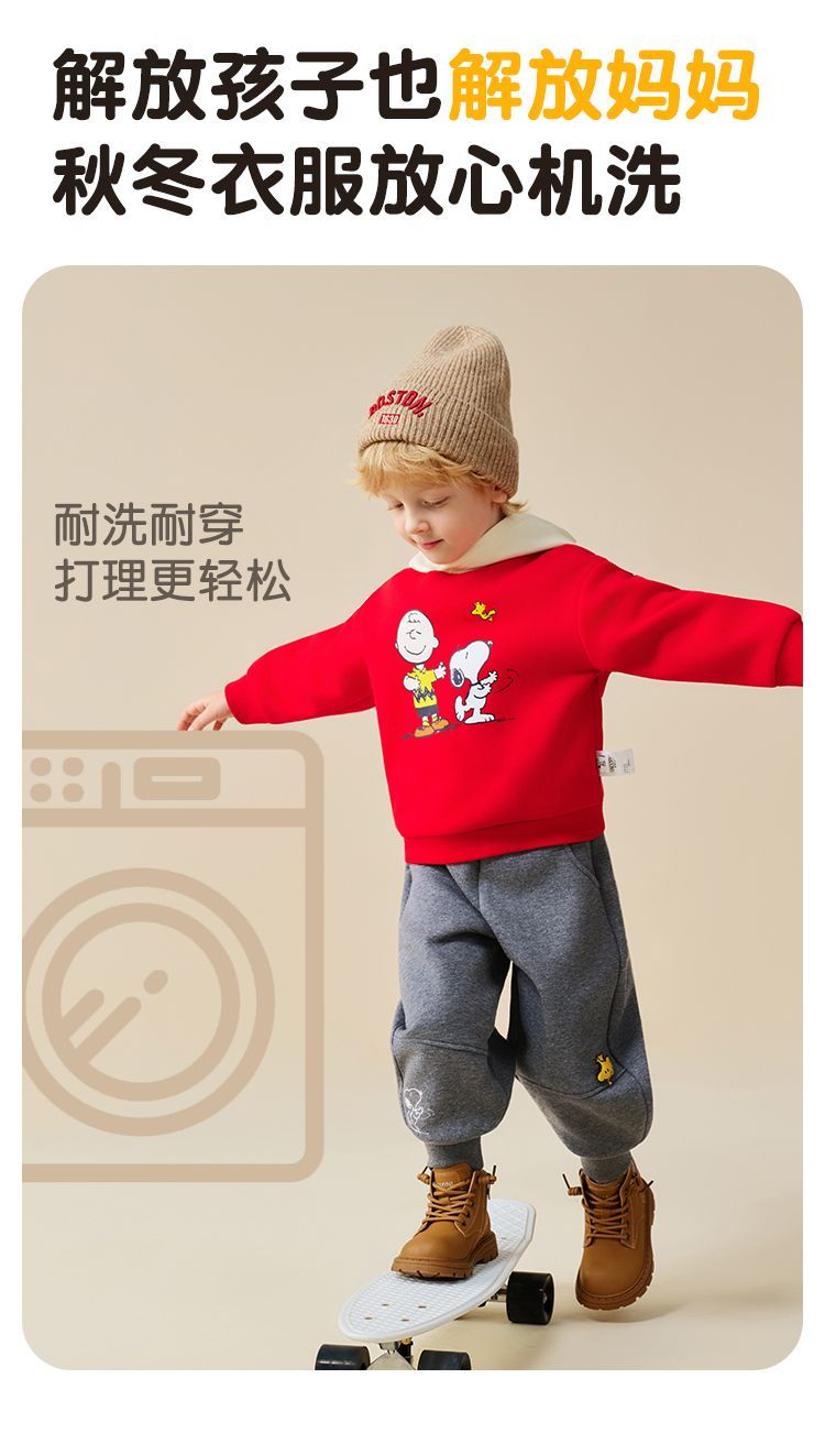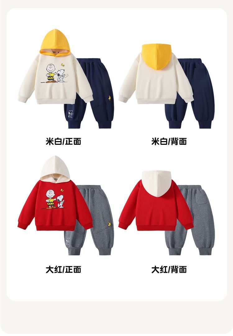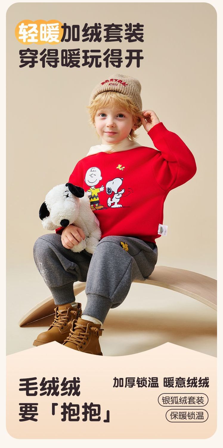 【加绒两件套】【90-130】【史努比】男童冬款加绒卫衣卫裤套装