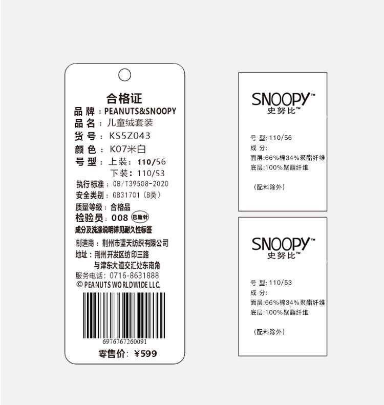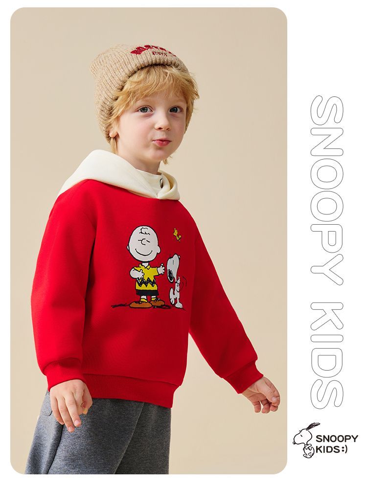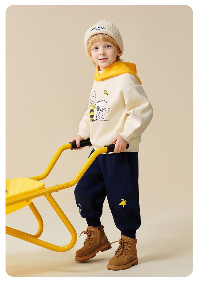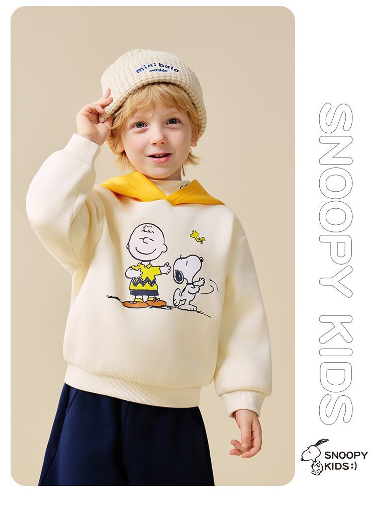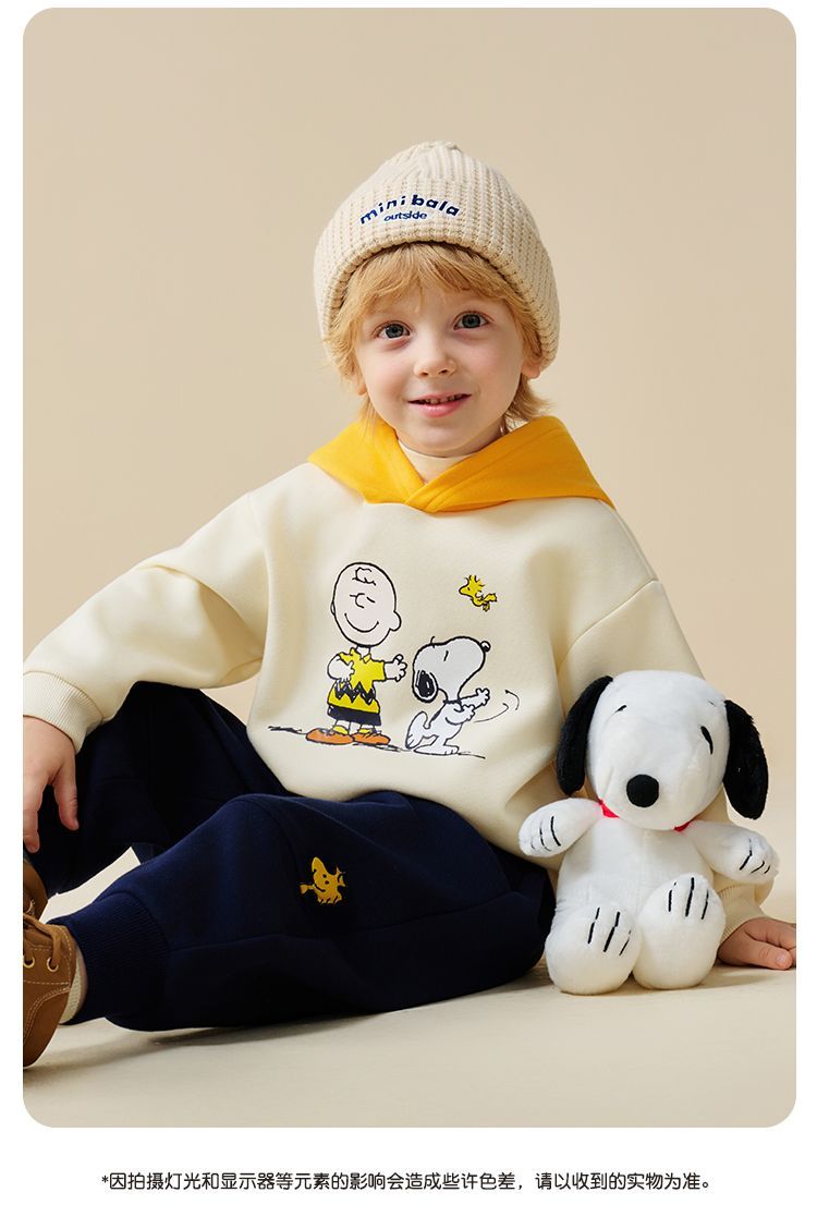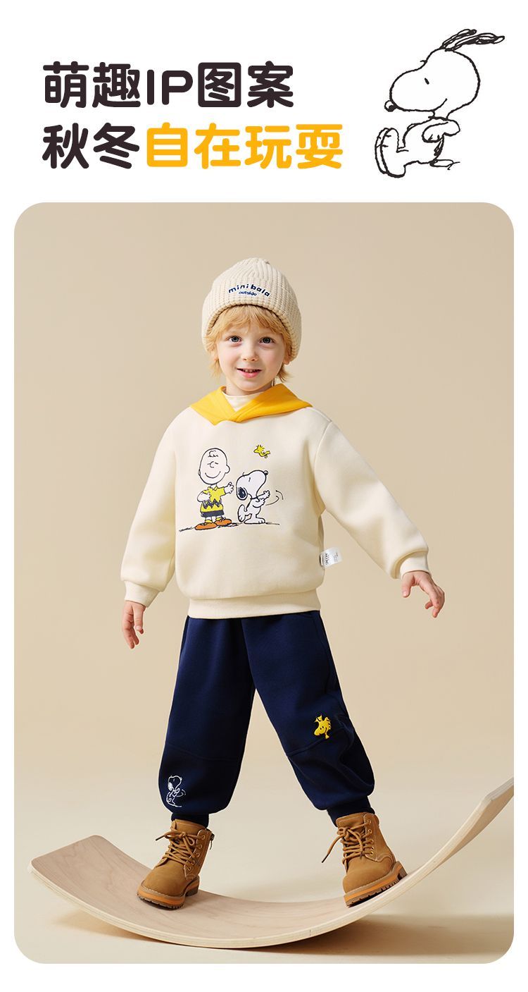 【加绒两件套】【90-130】【史努比】男童冬款加绒卫衣卫裤套装