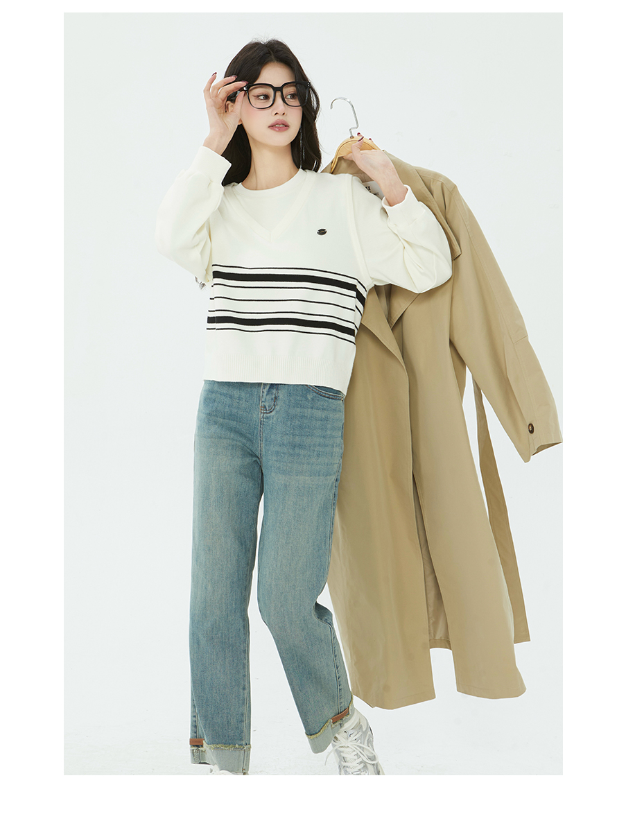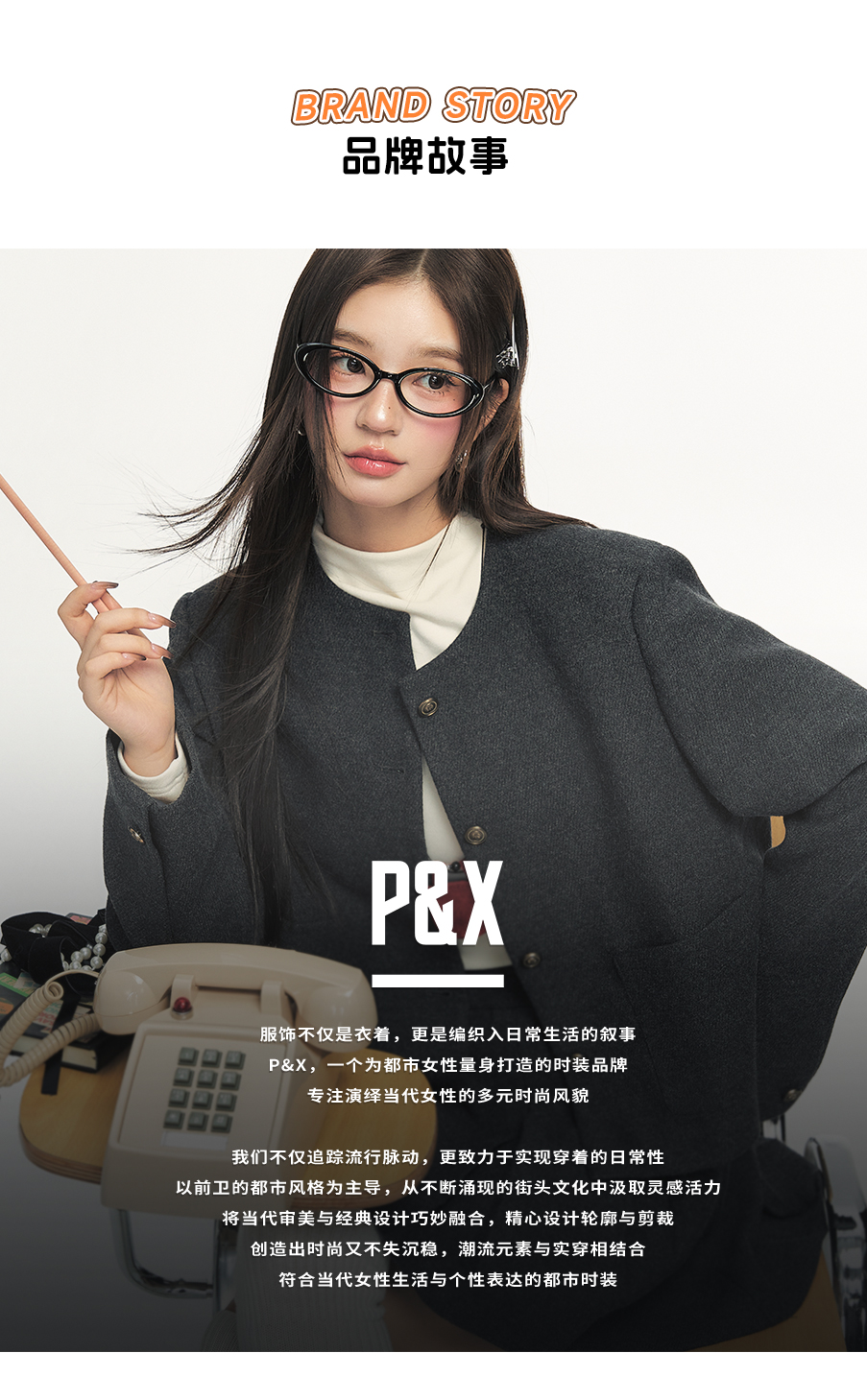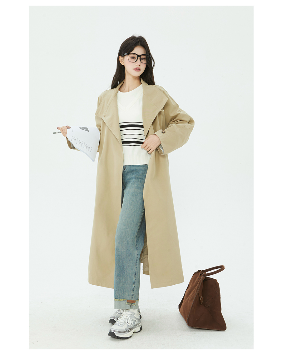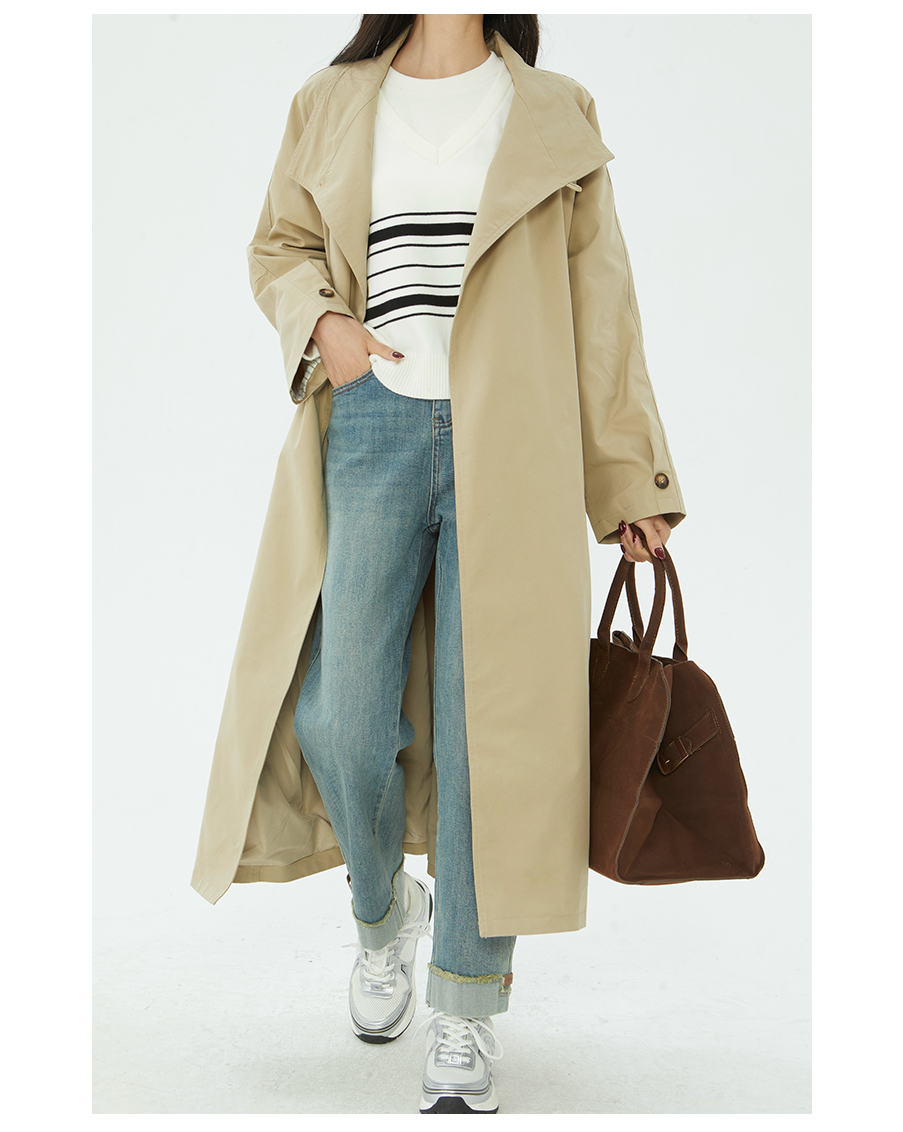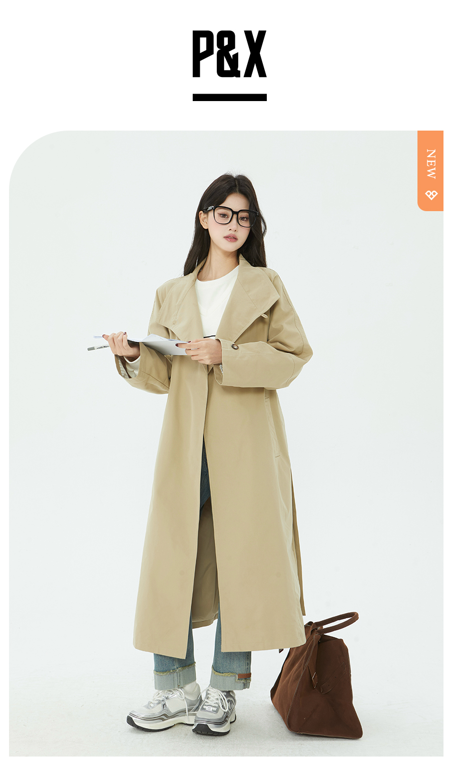 P&X设计师女装通勤简约休闲长翻风衣宽松外套 825119084 卡其