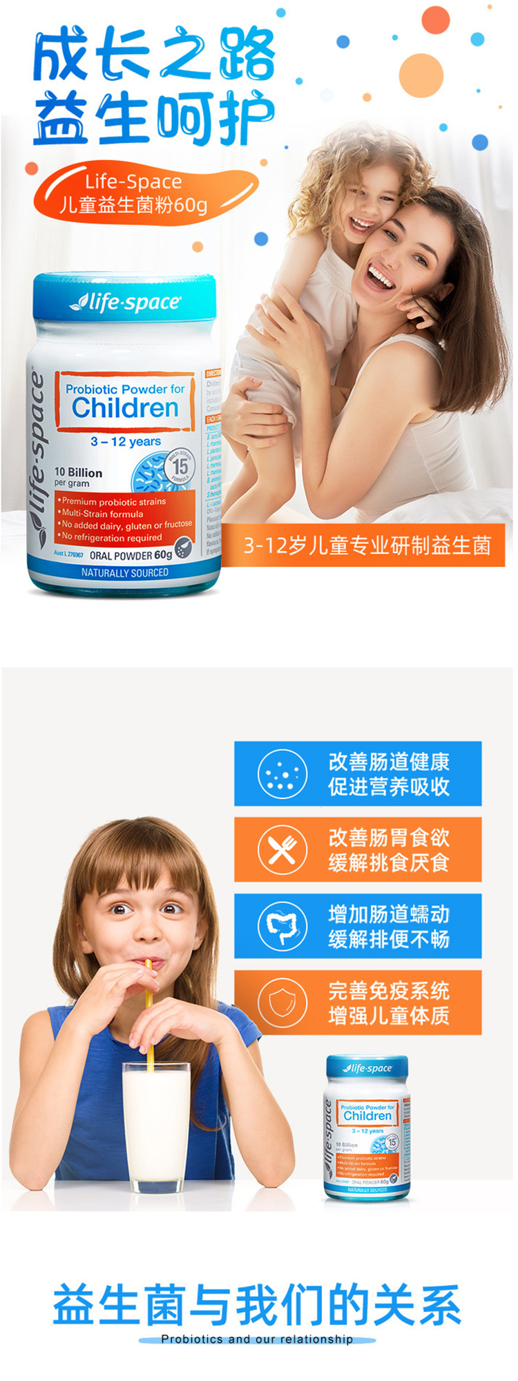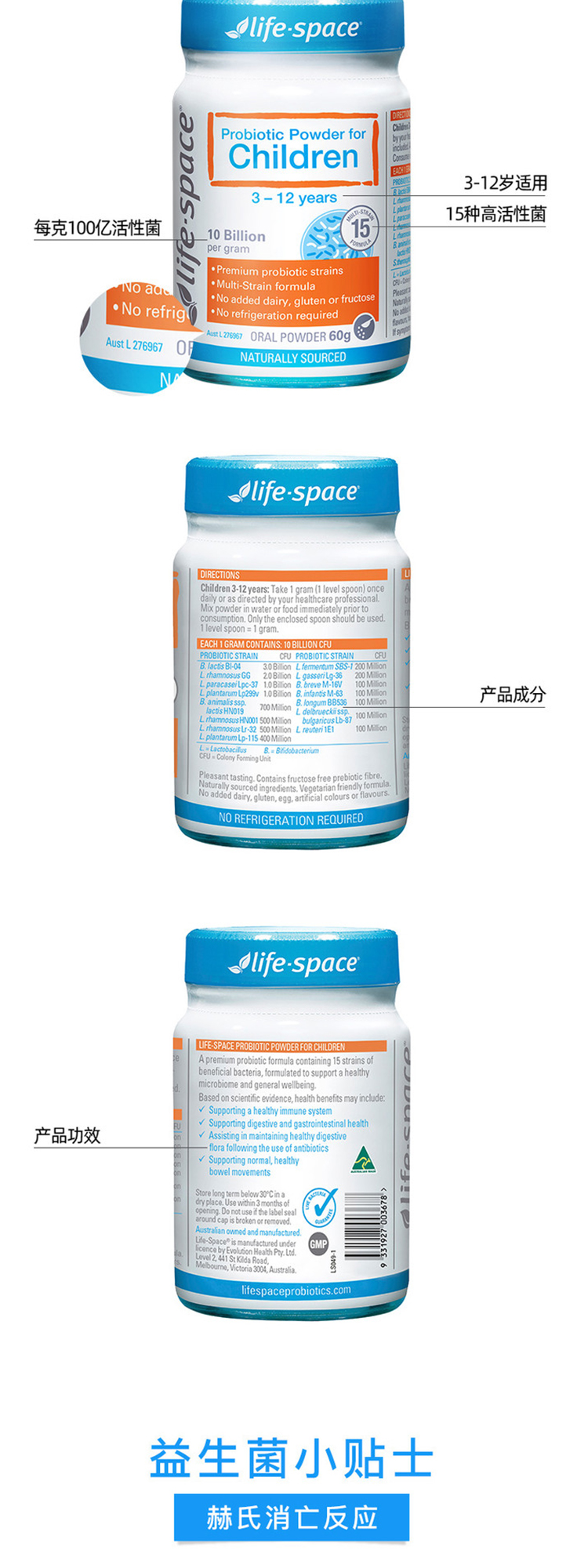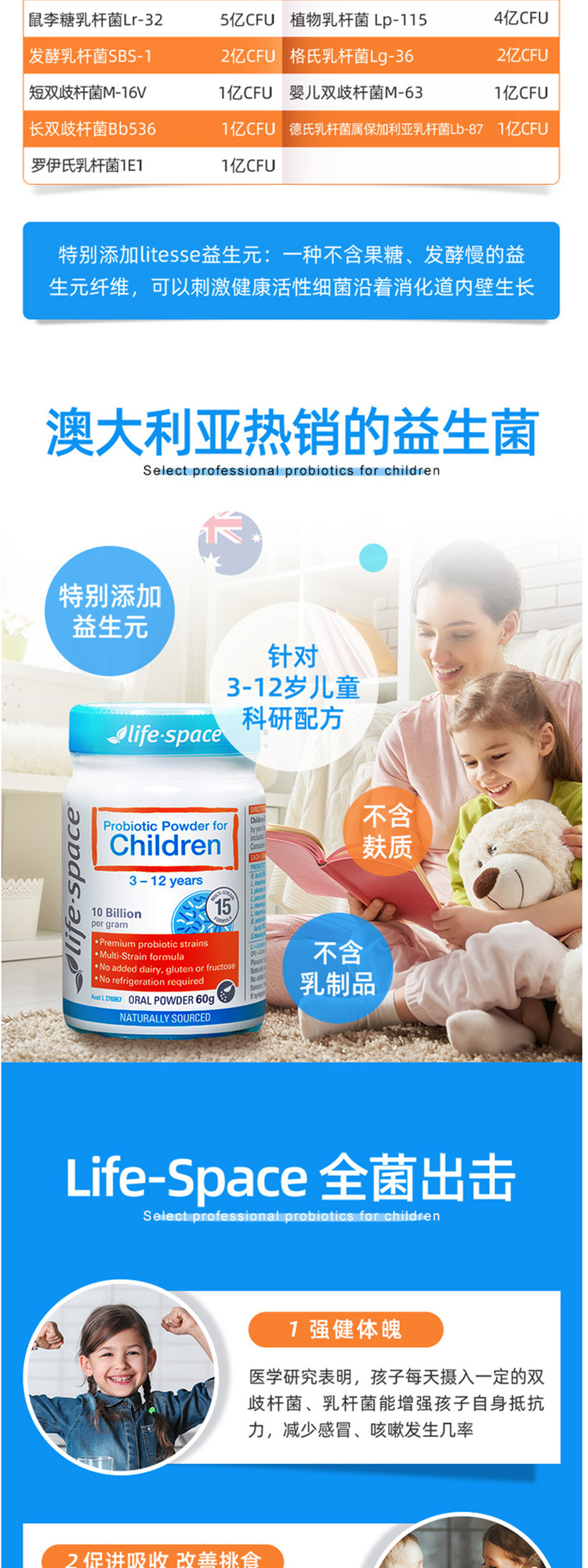 2. LifeSpace儿童益生菌不含乳糖、麸质,过敏体质的宝宝也适合。