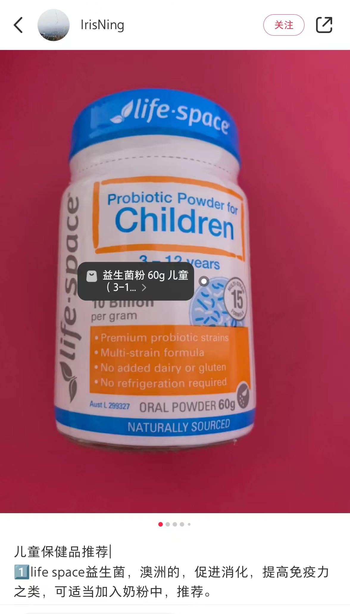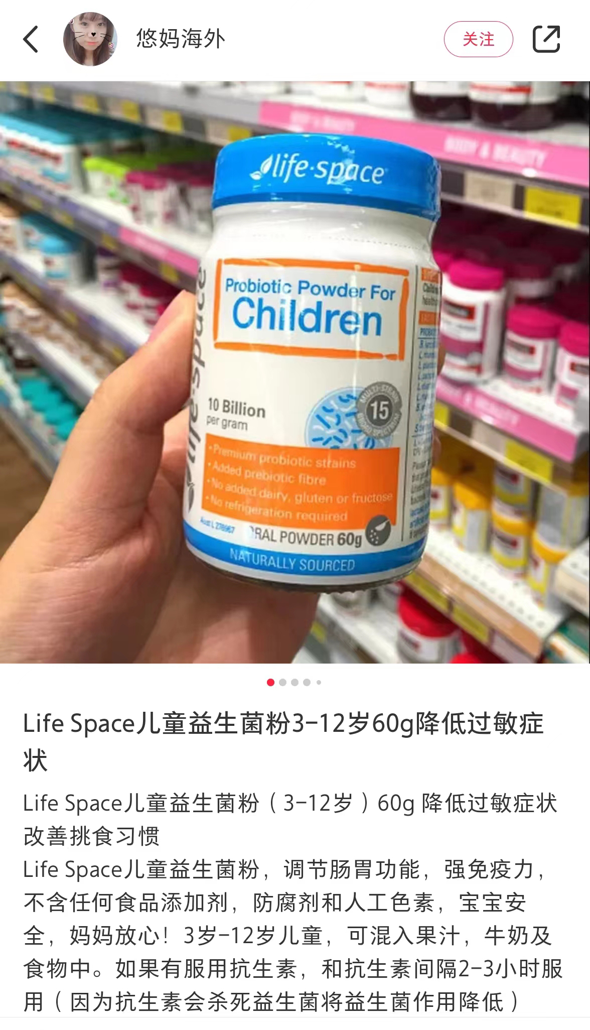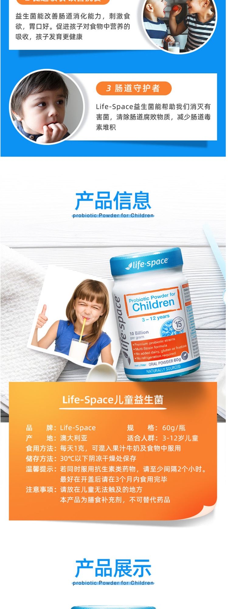 2. LifeSpace儿童益生菌不含乳糖、麸质,过敏体质的宝宝也适合。