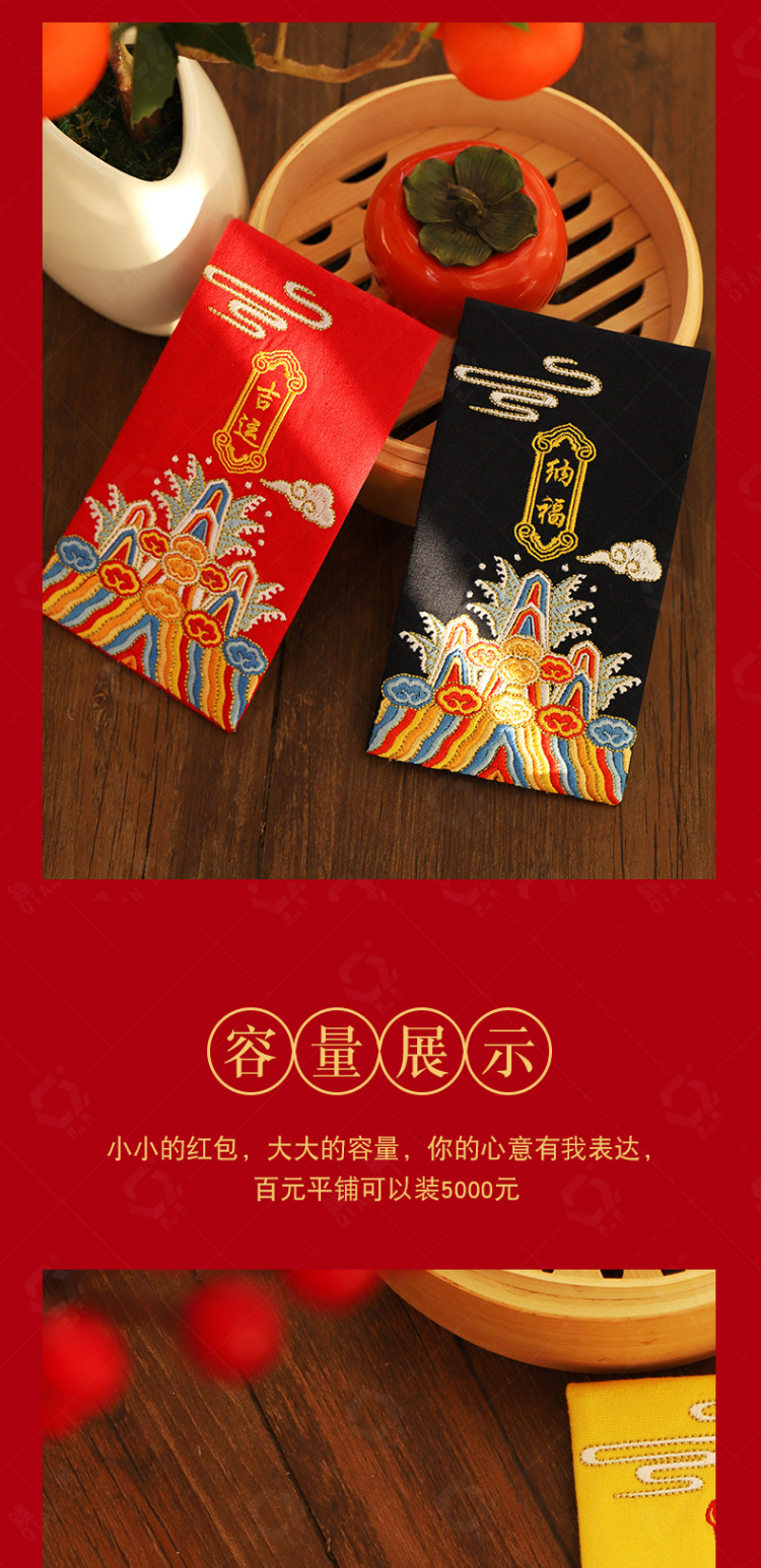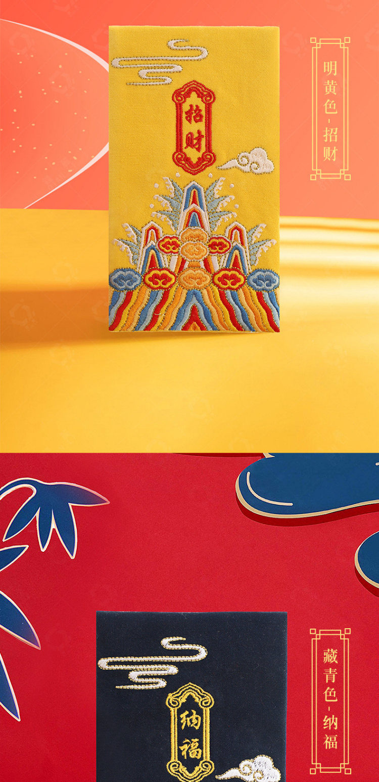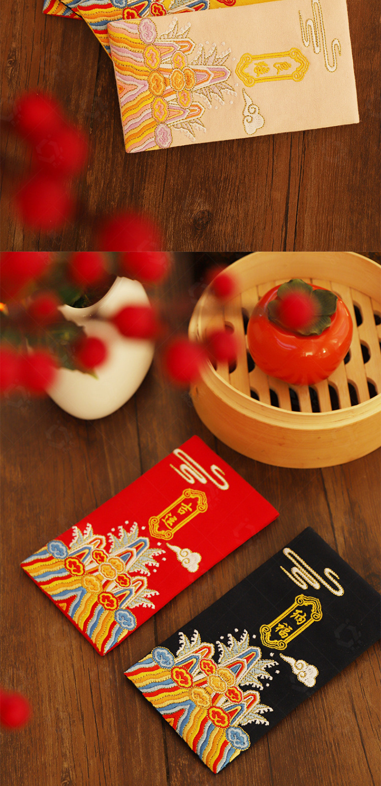 【红包】-刺绣国潮红包2022布艺收纳千元红包