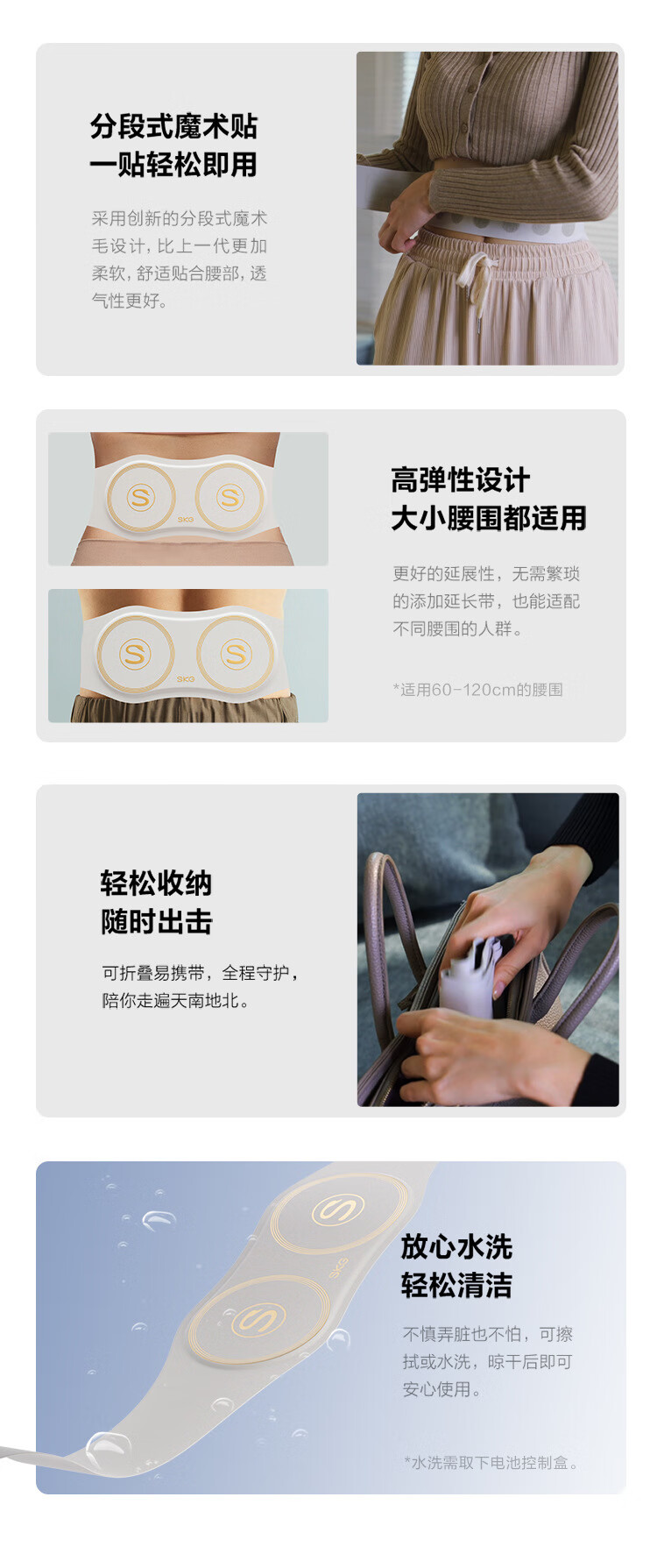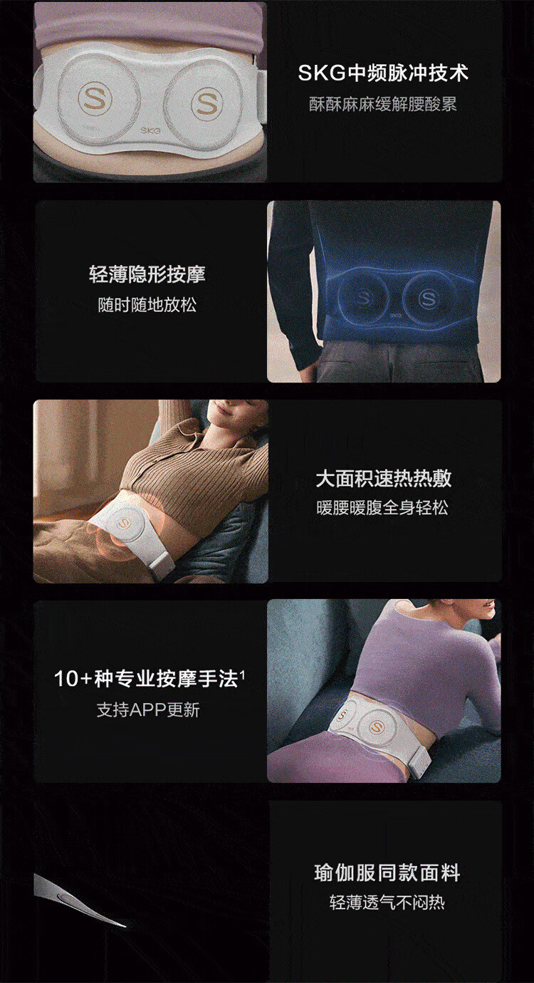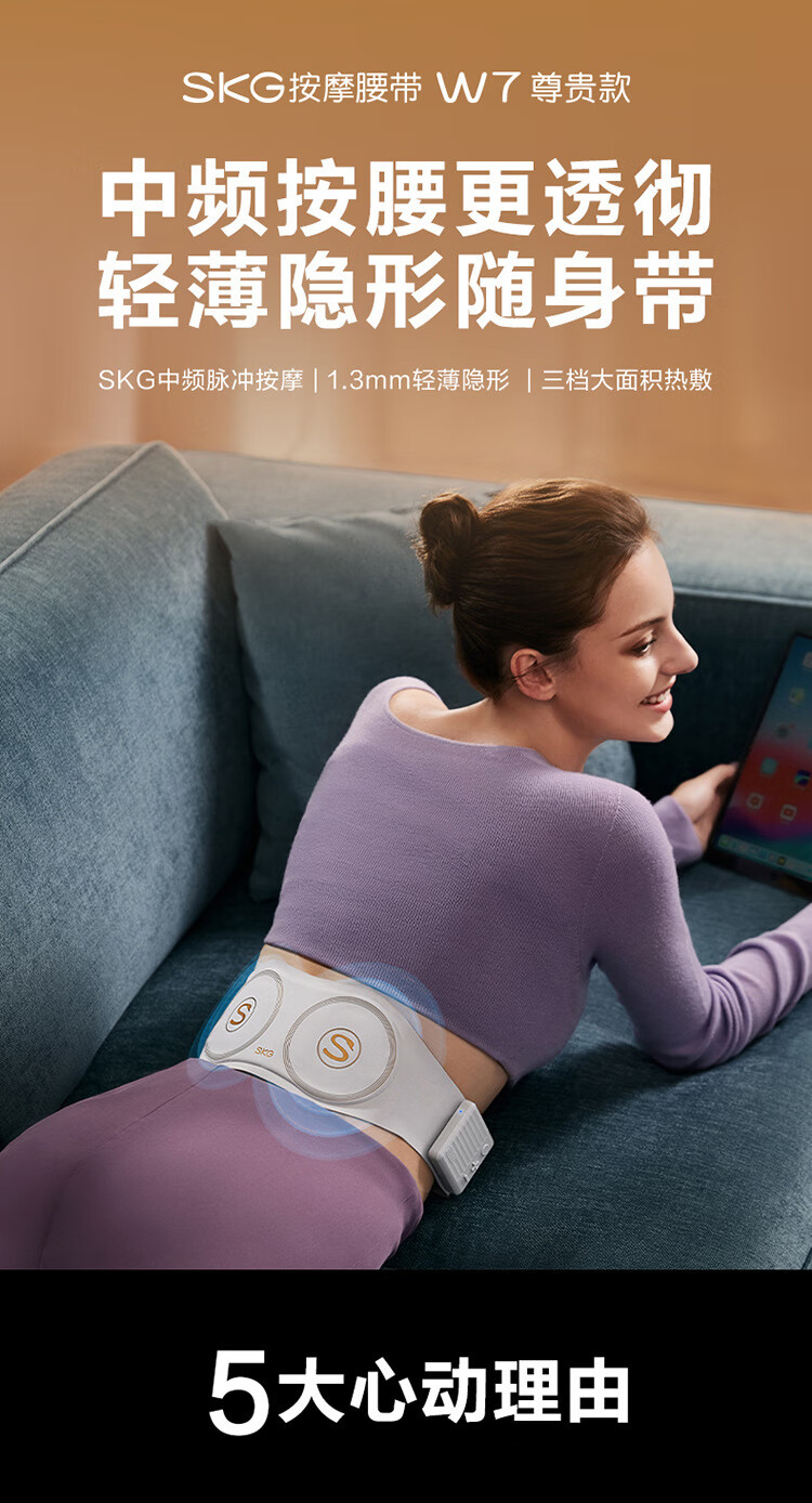 SKG腰部按摩仪W7尊贵款智能暖宫腰带揉捏热敷按摩器办公生日礼物 W7尊贵-珍珠灰(TZ)