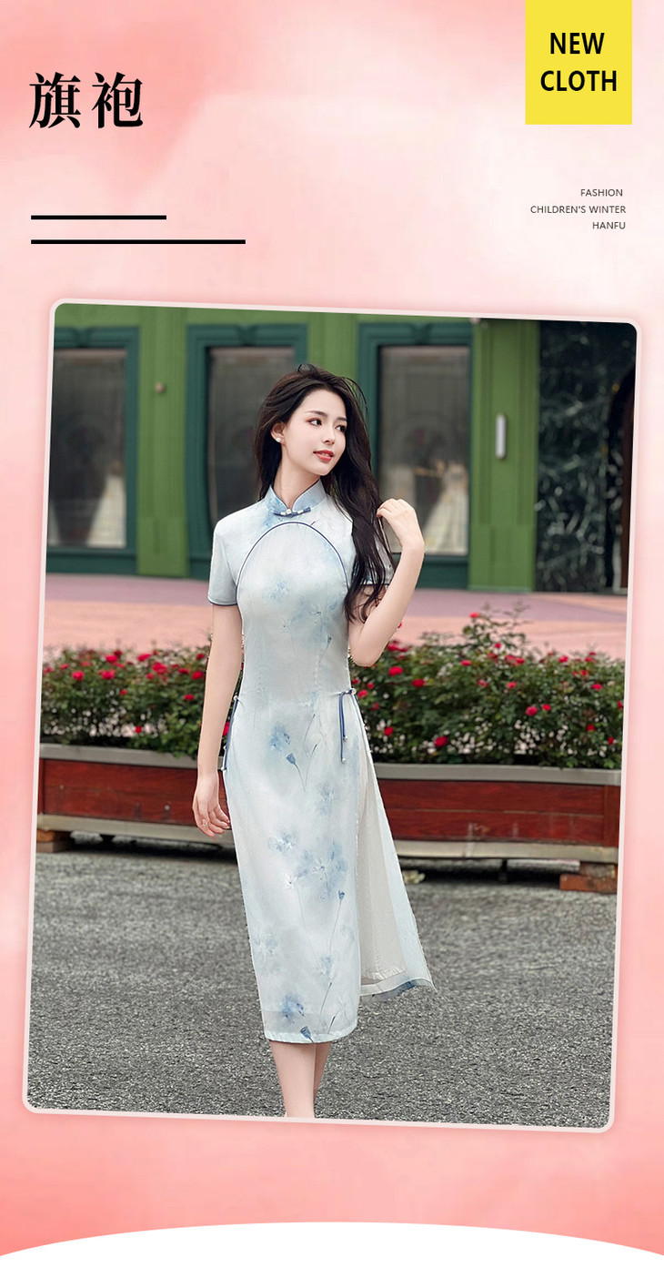 夏季复古新中式年轻款改良奥黛旗袍GR1091