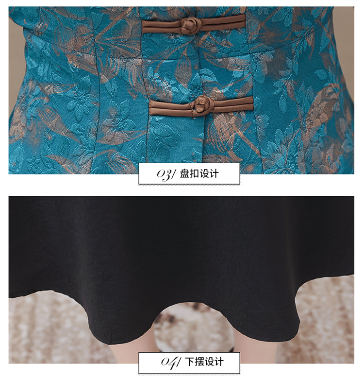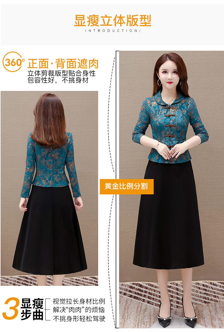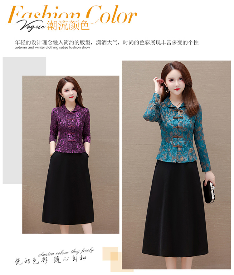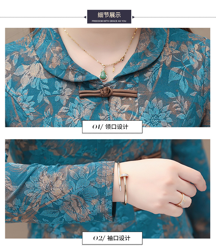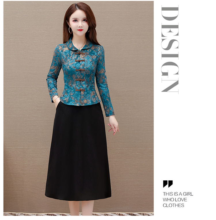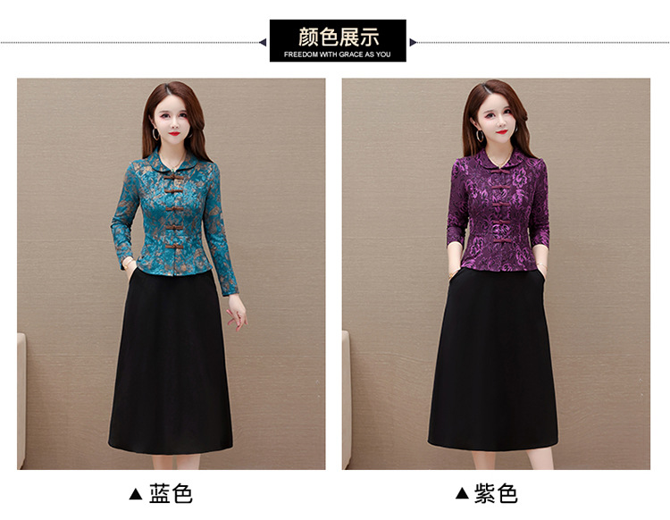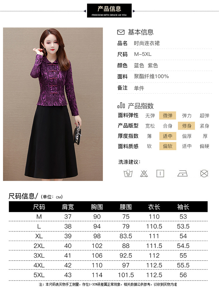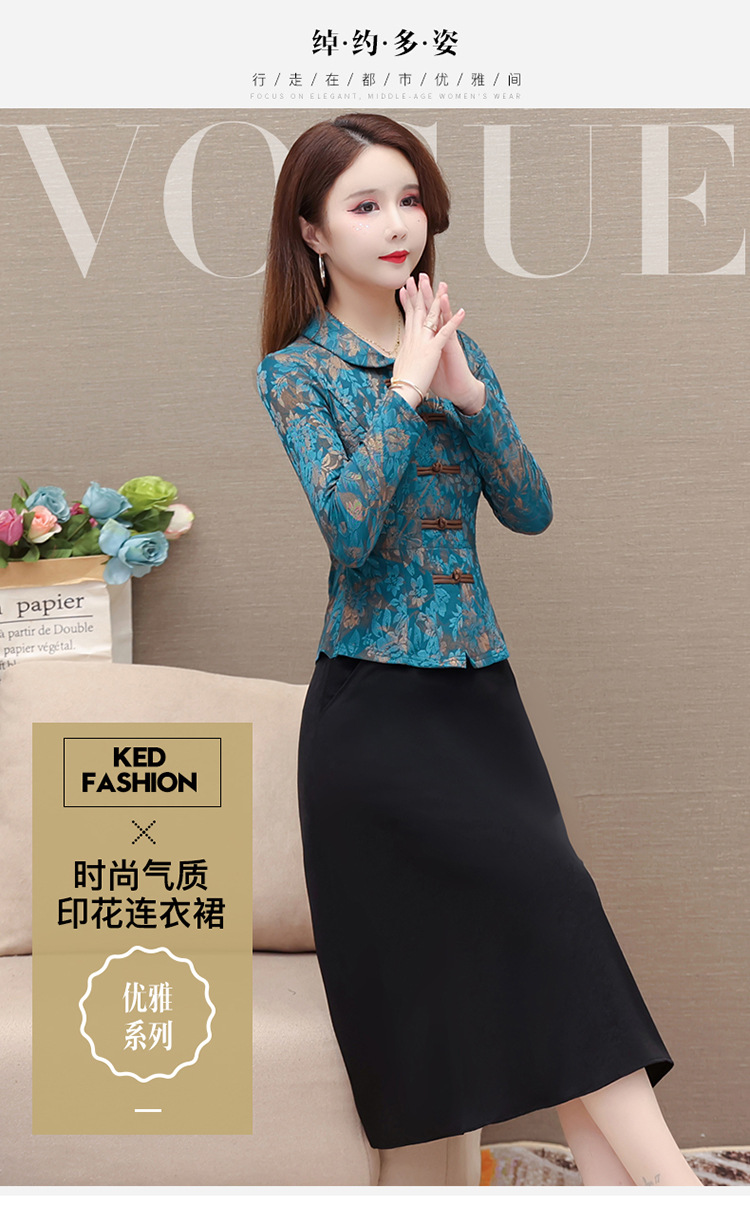 秋季新款,拼结假两件复古改良中长款A字裙妈妈装印花连衣裙QYM-KED-1306 -Y