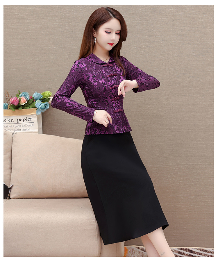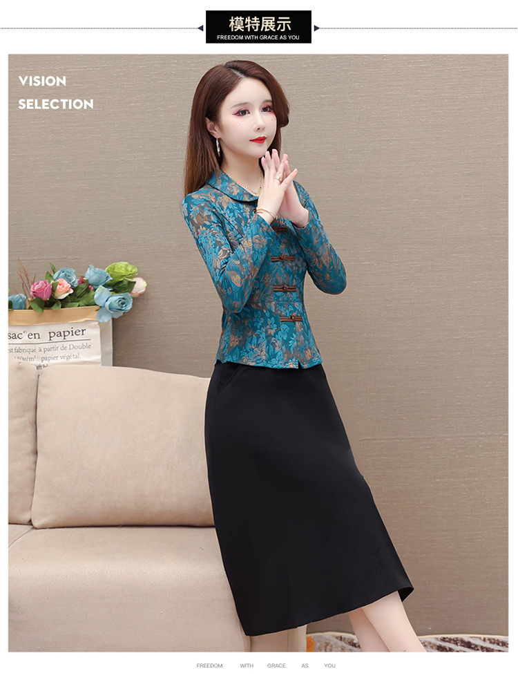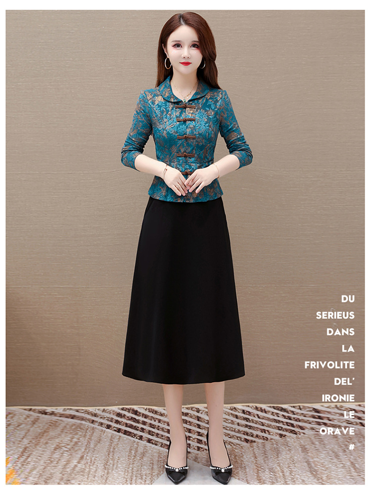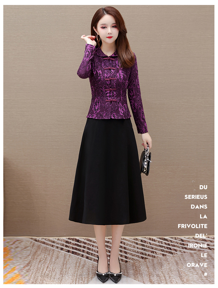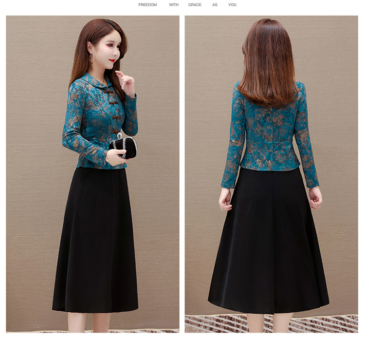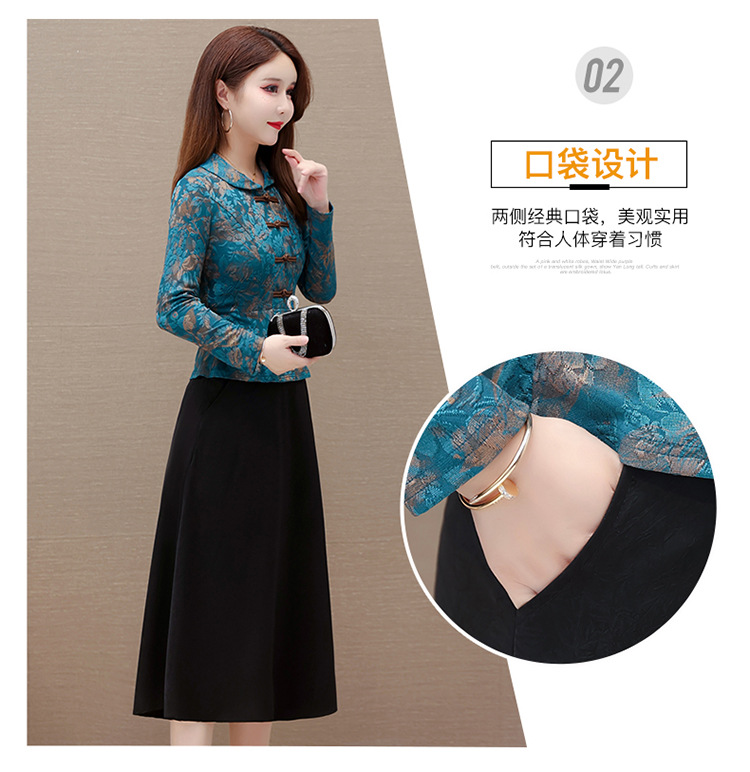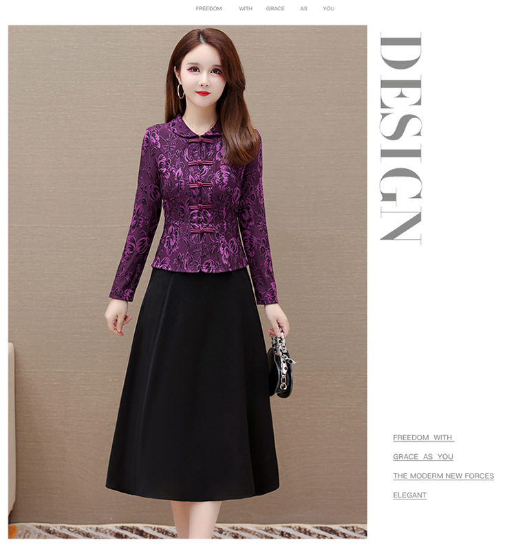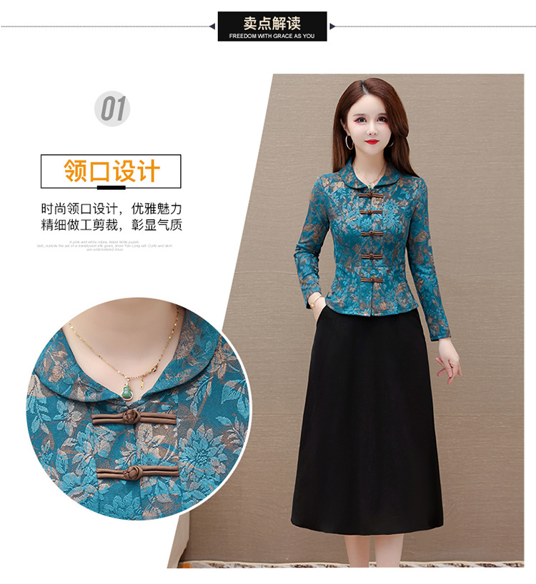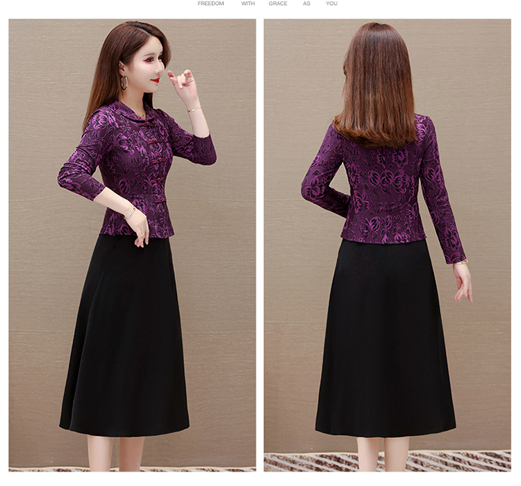 秋季新款,拼结假两件复古改良中长款A字裙妈妈装印花连衣裙QYM-KED-1306 -Y