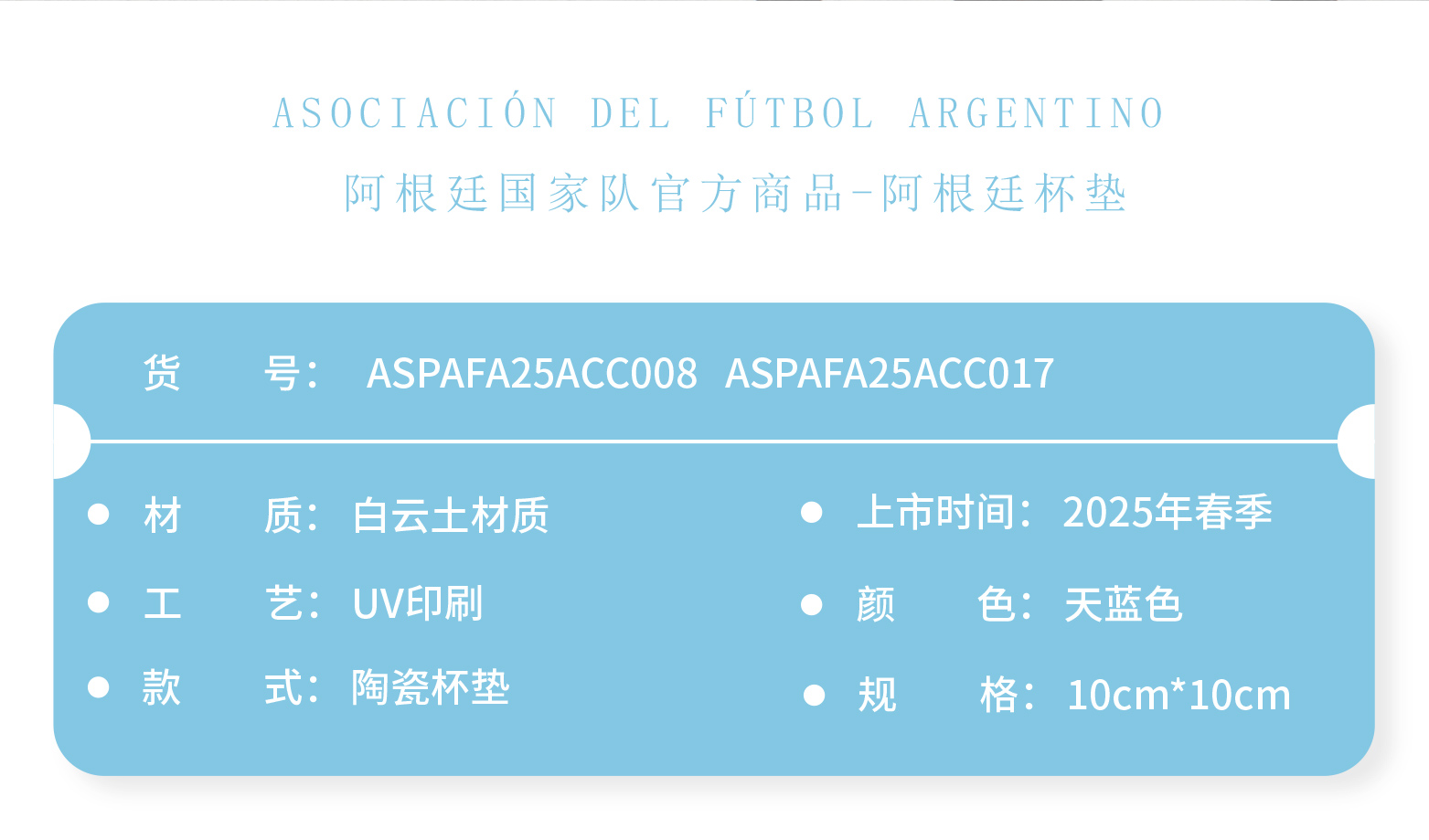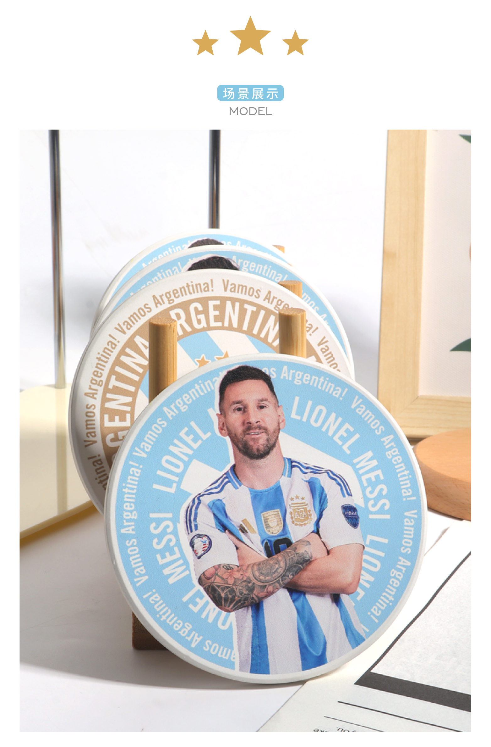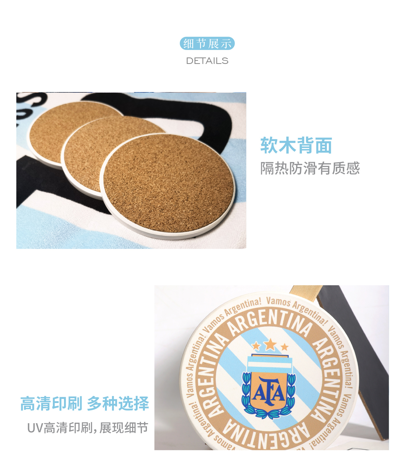 【官方正版】阿根廷国家队 | 陶瓷球员白云土吸水杯垫球迷周边