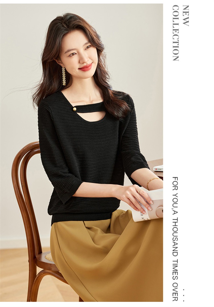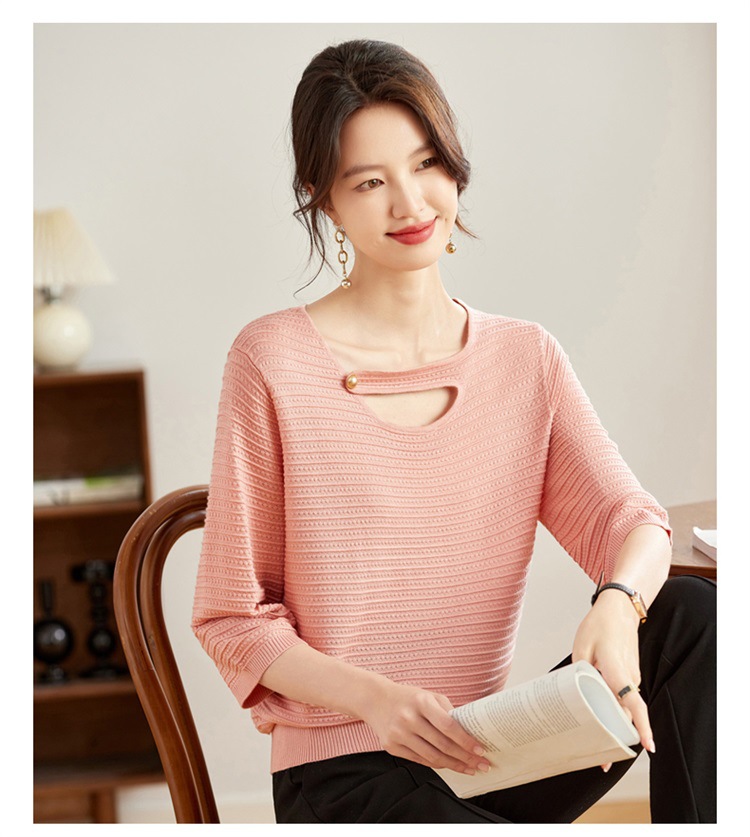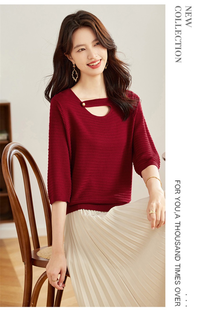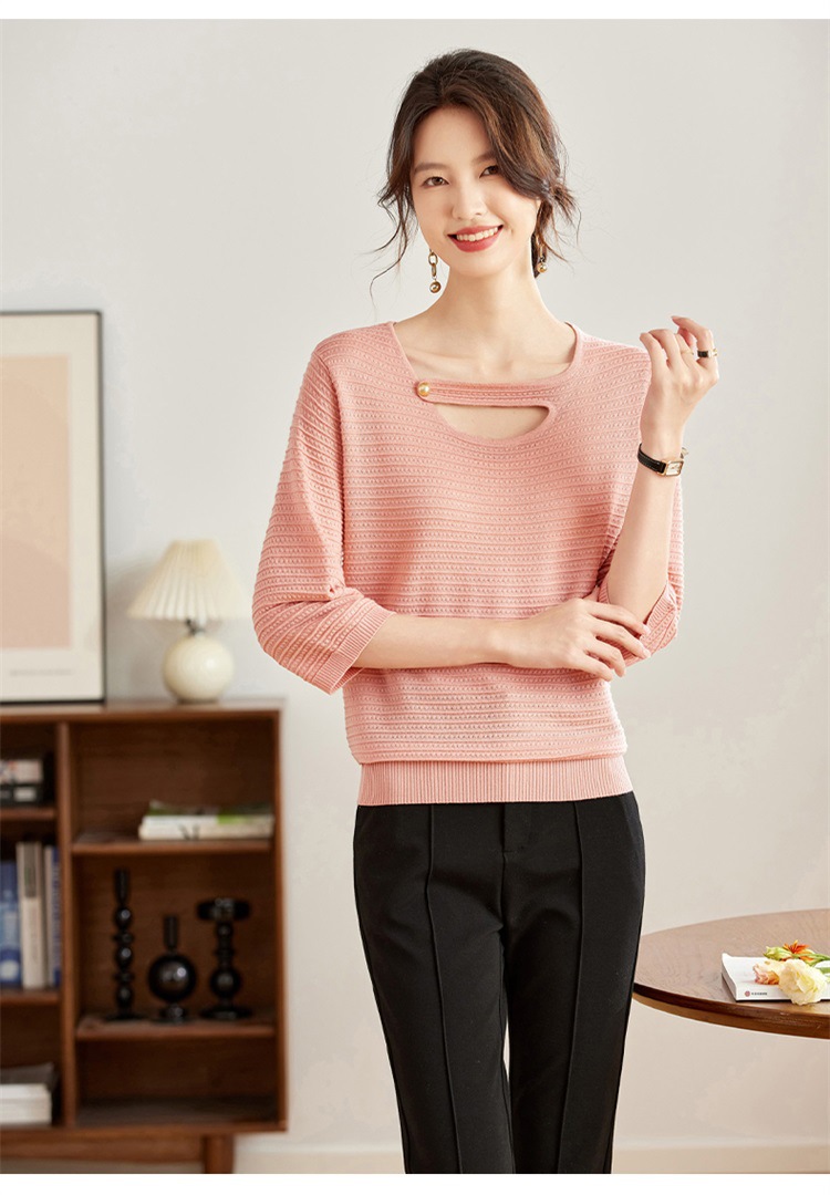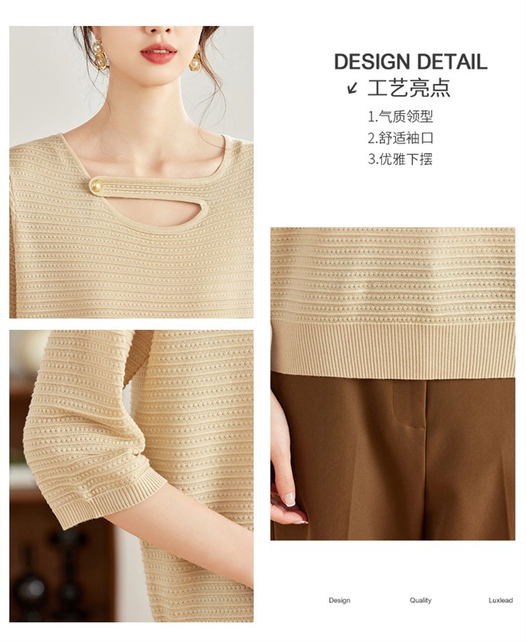 V领中袖上衣,设计感洋气针织衫CC- 16-9003