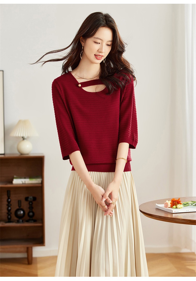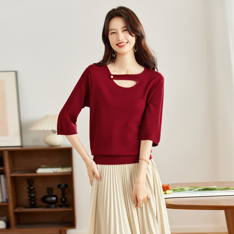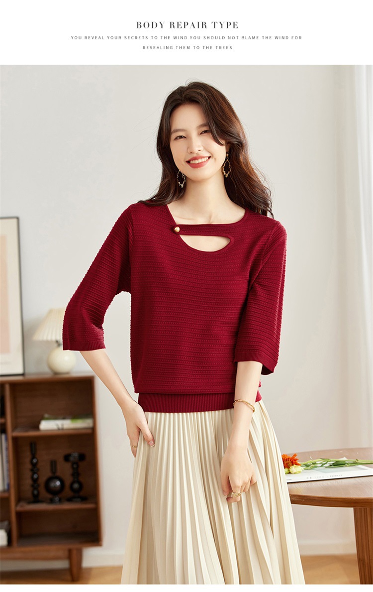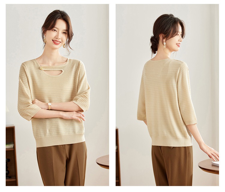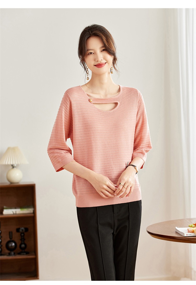 V领中袖上衣,设计感洋气针织衫CC- 16-9003