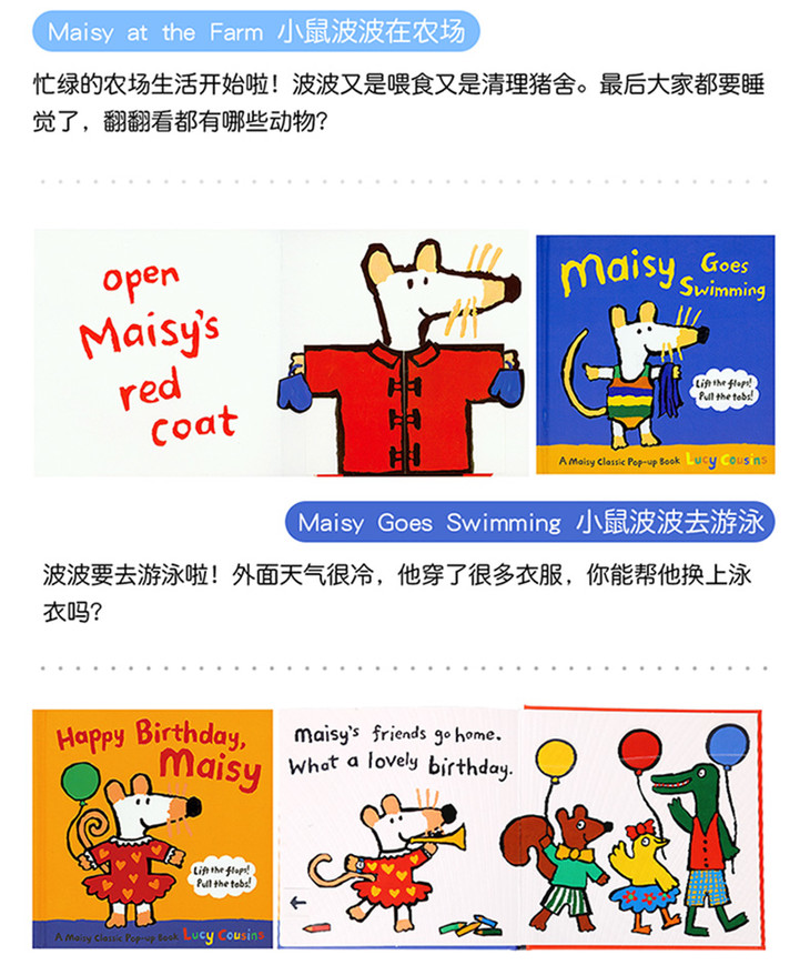 【育学园】小彼恩出品小鼠波波Maisy套装6册蓝盒 盒装 点读版