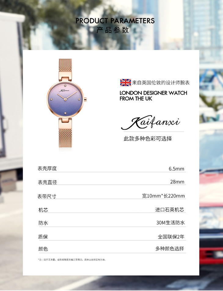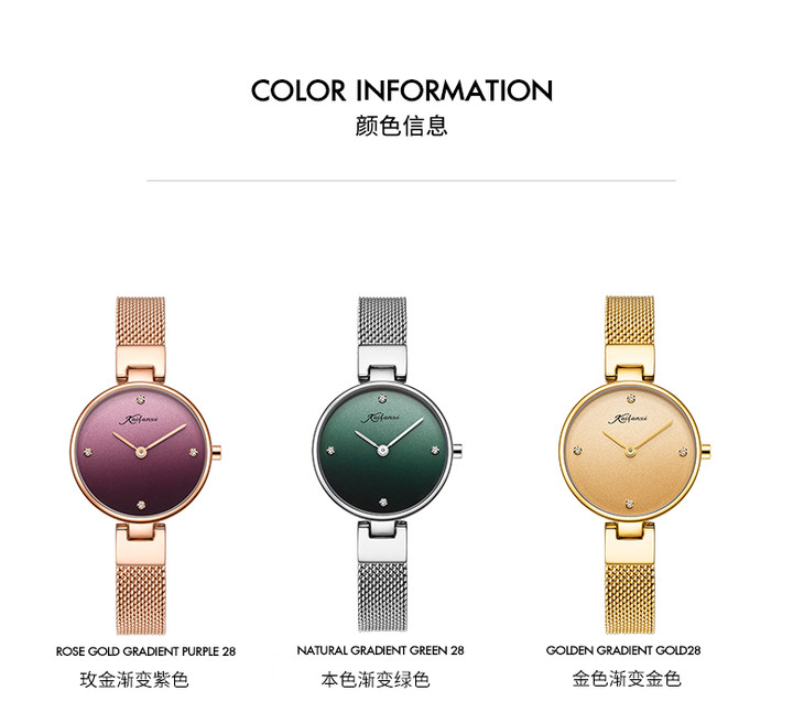 凯梵希 英国小众手表女生新款 潮ins网红chic简约渐变色字面kf601202